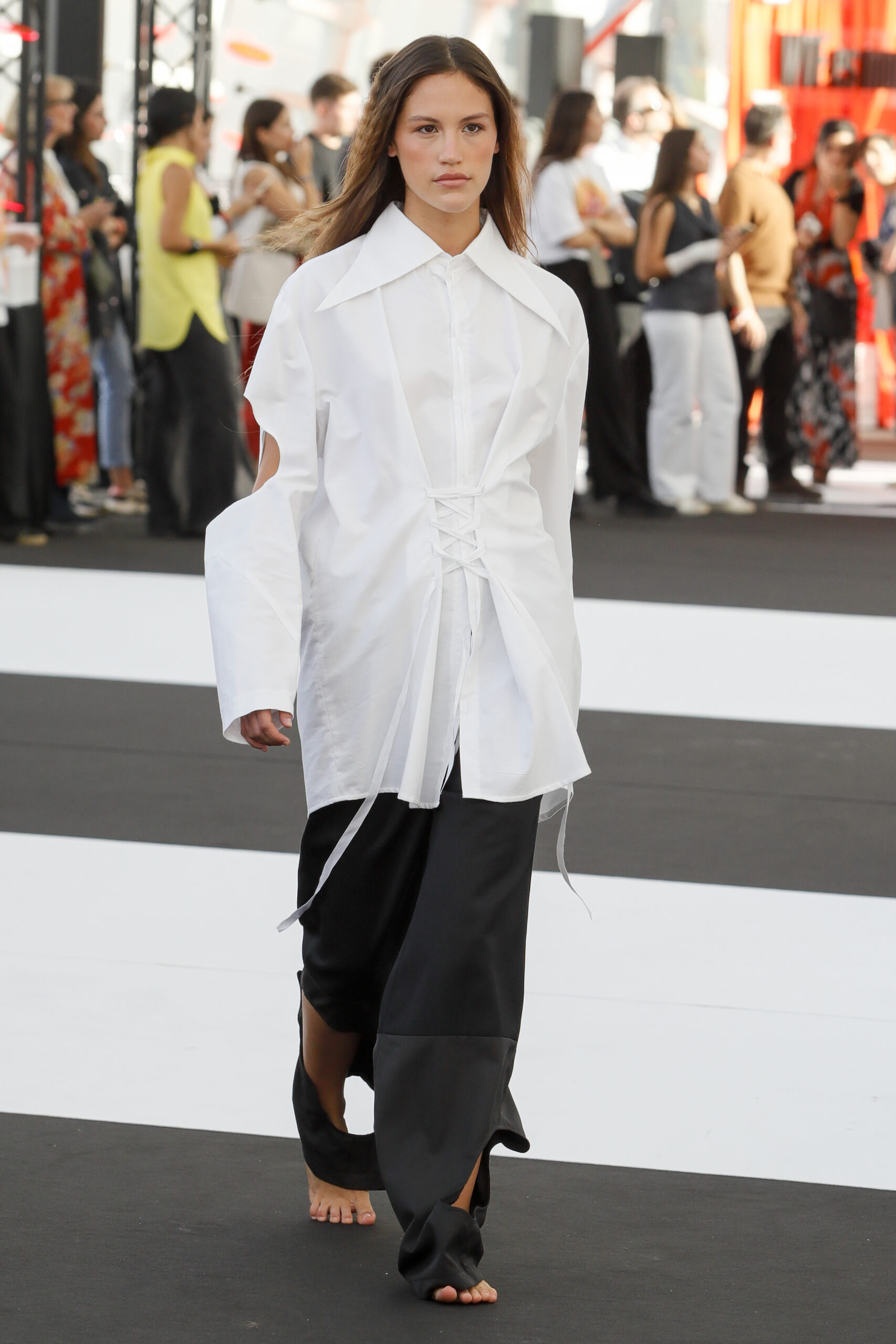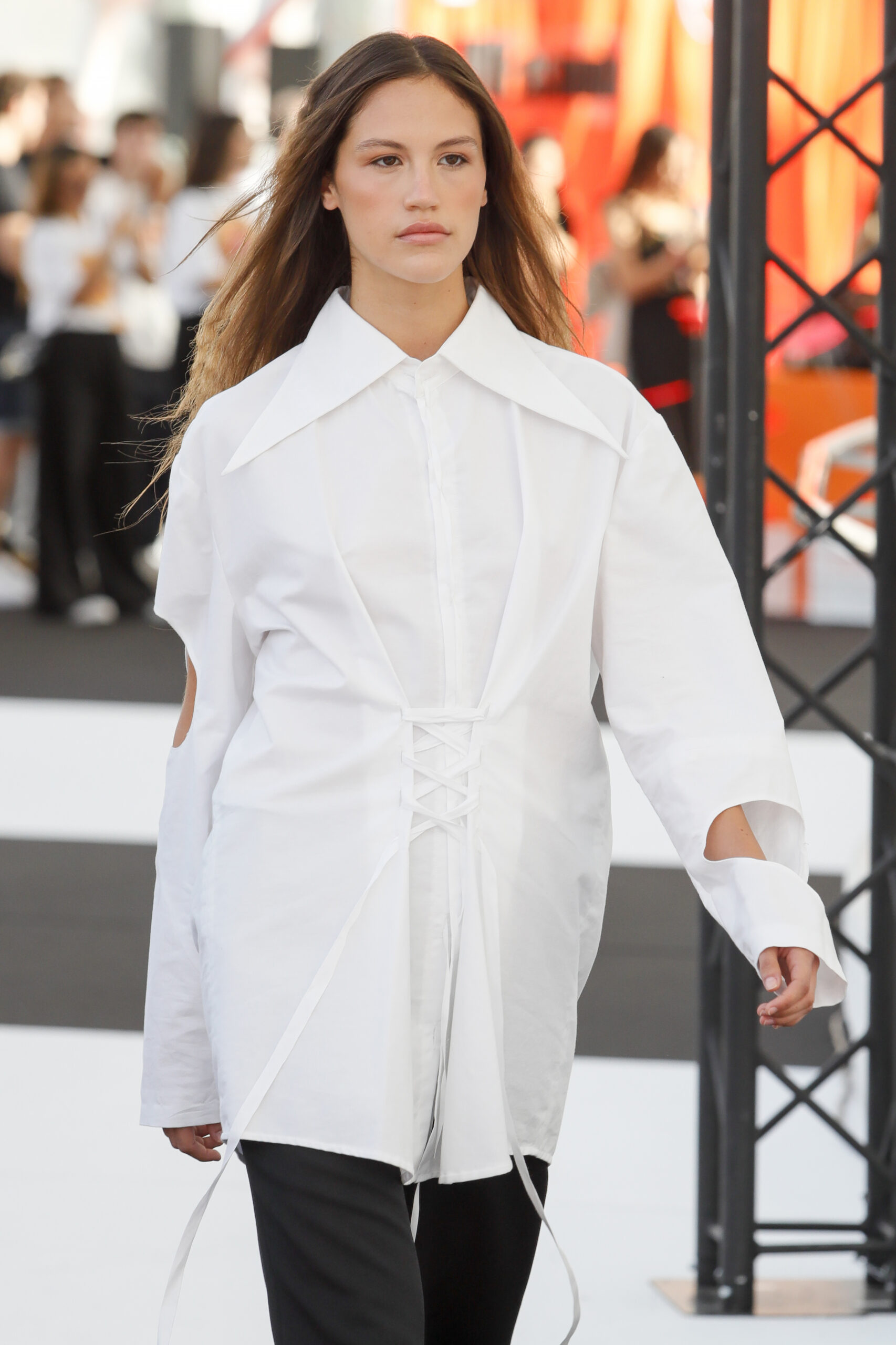 Cuando se le pregunta qué prenda la define, no duda: “Una camisa oversize. Me encanta el movimiento que genera, la actitud que transmite. Es libertad”. Y antes de un desfile, su rutina es sencilla: “Hacer deporte para soltar el estrés, relajarme y escuchar música. Nil Moliner siempre me acompaña; su energía positiva me inspira”.