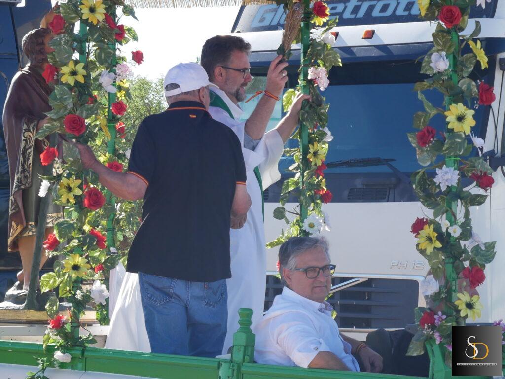 Tras la eucaristía, el sacerdote ha procedido a la bendición de los vehículos y camiones que, como es tradición, se encontraban alineados en la explanada junto a la ermita. Este acto simbólico forma parte de las celebraciones que cada año organiza la Hermandad de San Cristóbal, en reconocimiento a la labor de los transportistas y en recuerdo de quienes ya no están.