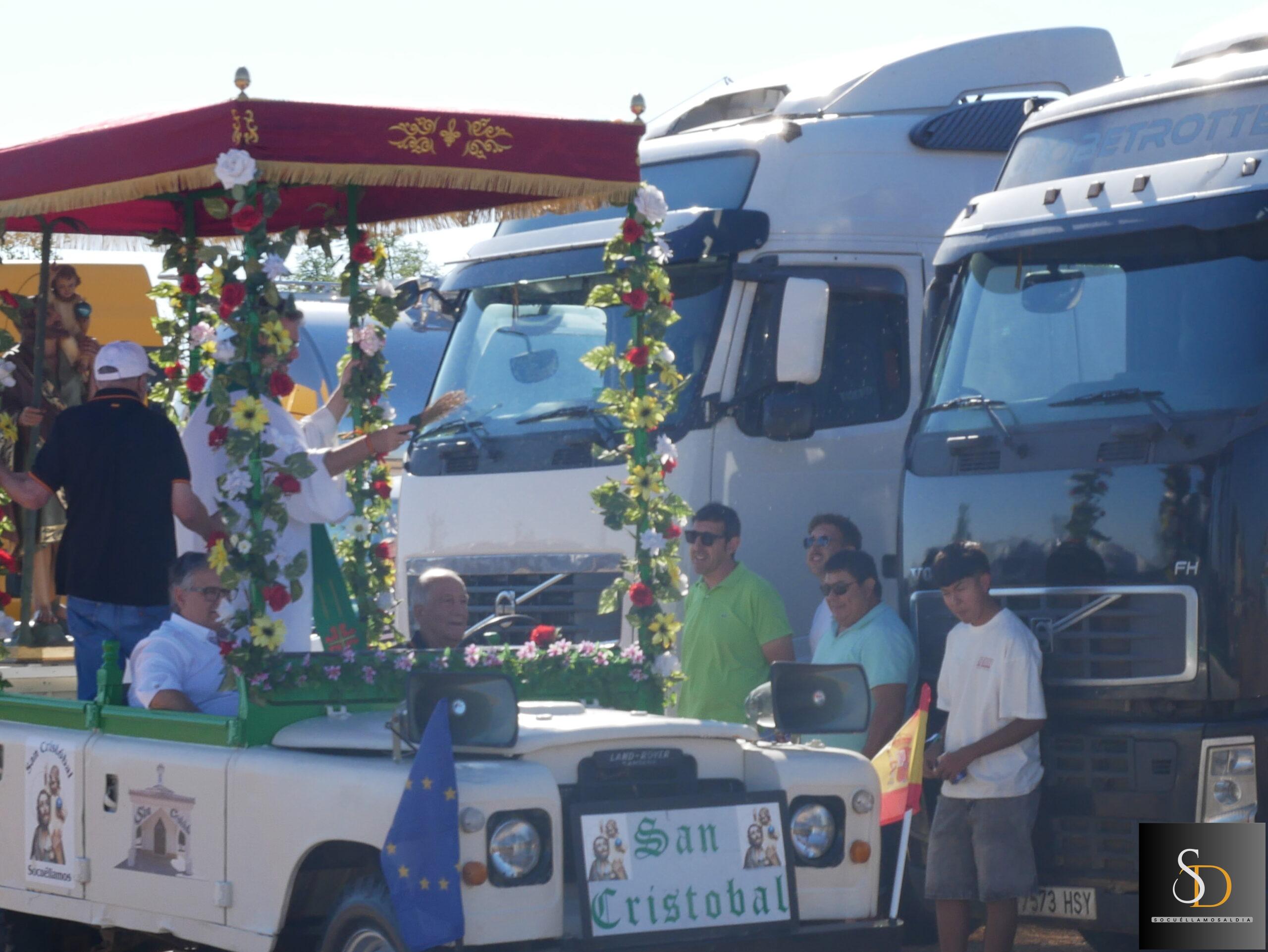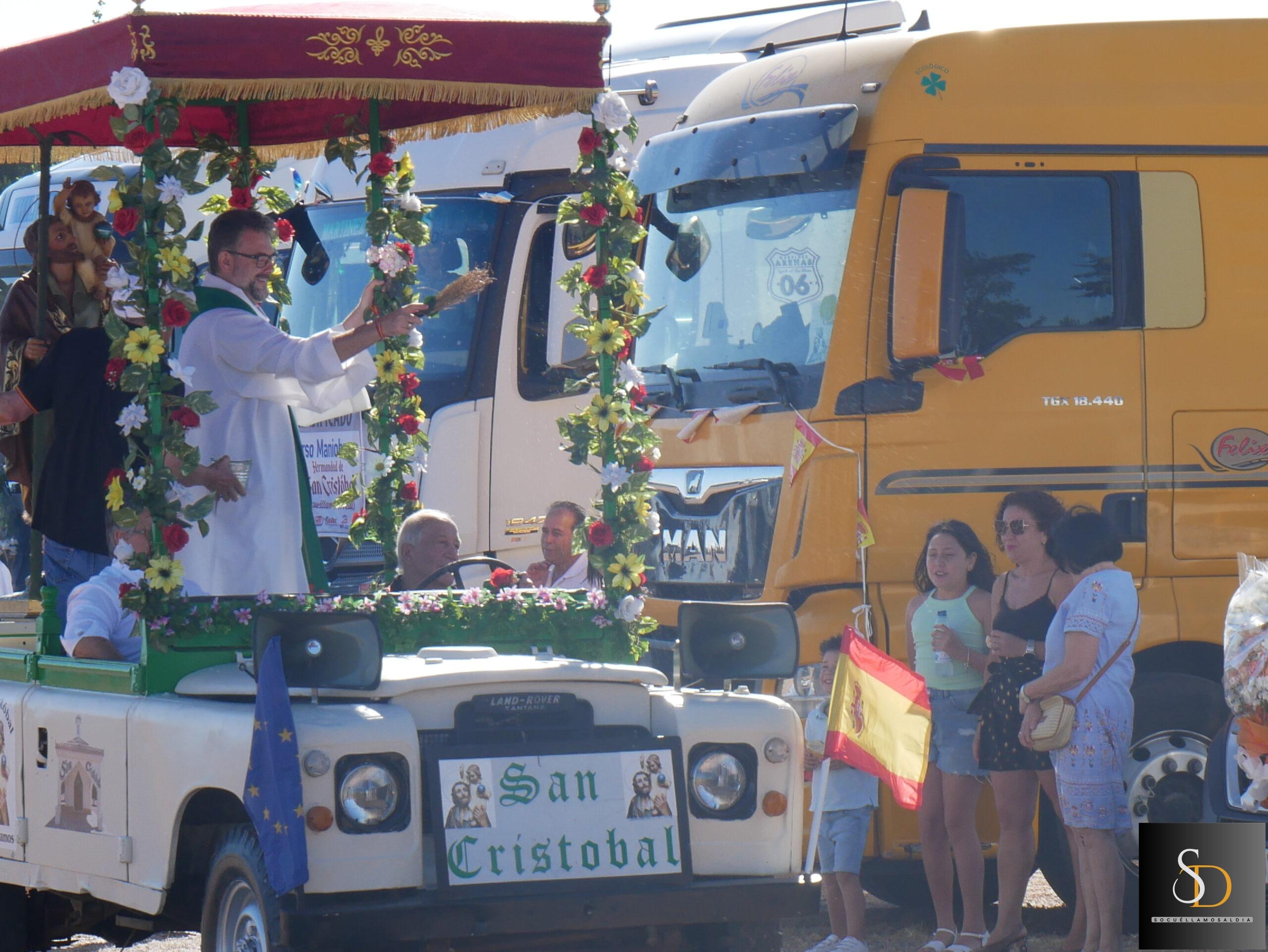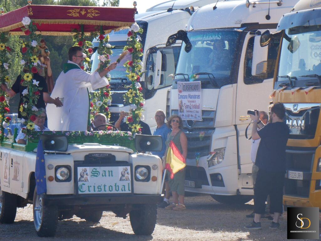 Tras la eucaristía, el sacerdote ha procedido a la bendición de los vehículos y camiones que, como es tradición, se encontraban alineados en la explanada junto a la ermita. Este acto simbólico forma parte de las celebraciones que cada año organiza la Hermandad de San Cristóbal, en reconocimiento a la labor de los transportistas y en recuerdo de quienes ya no están.
