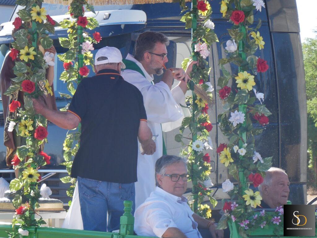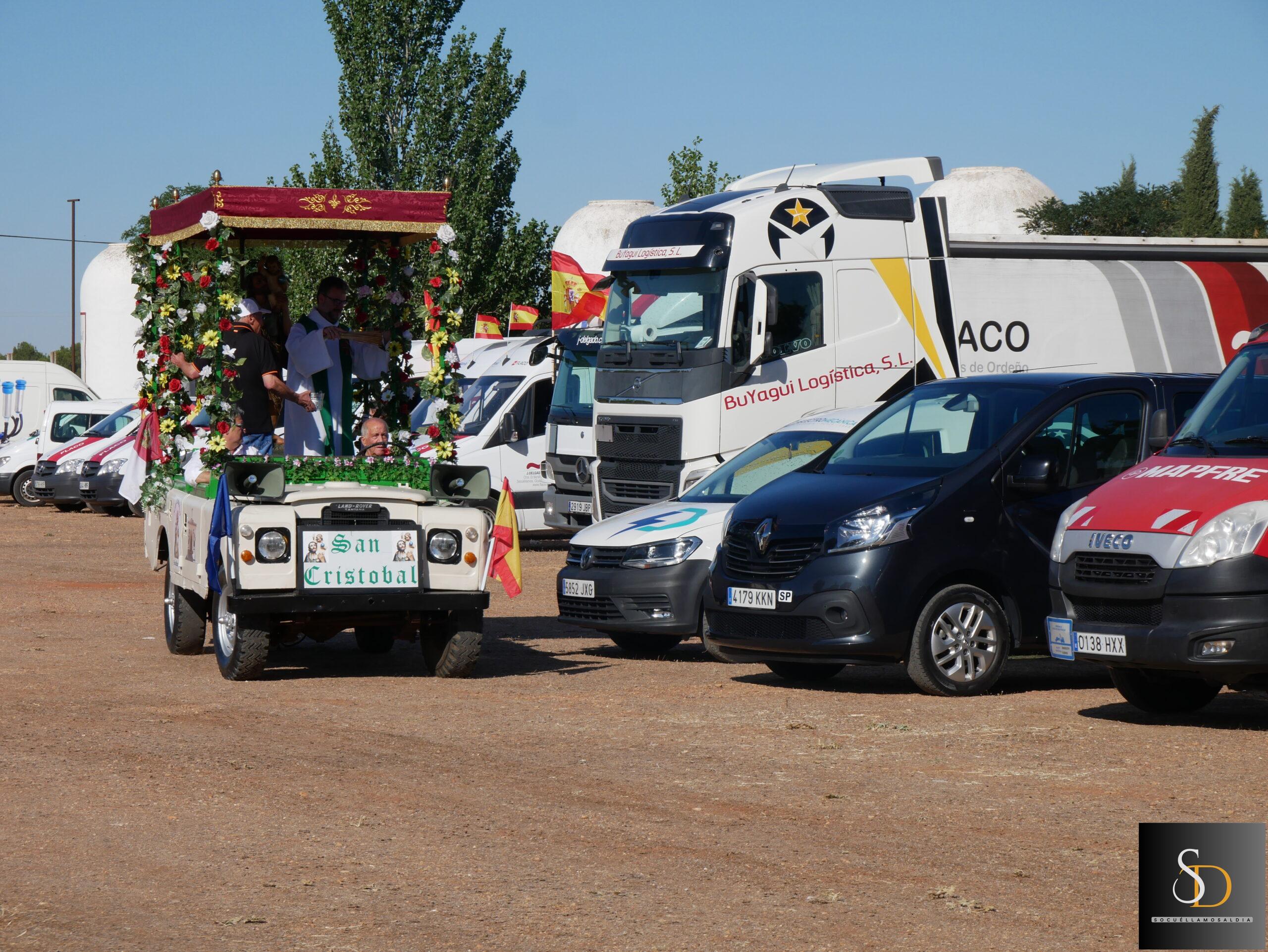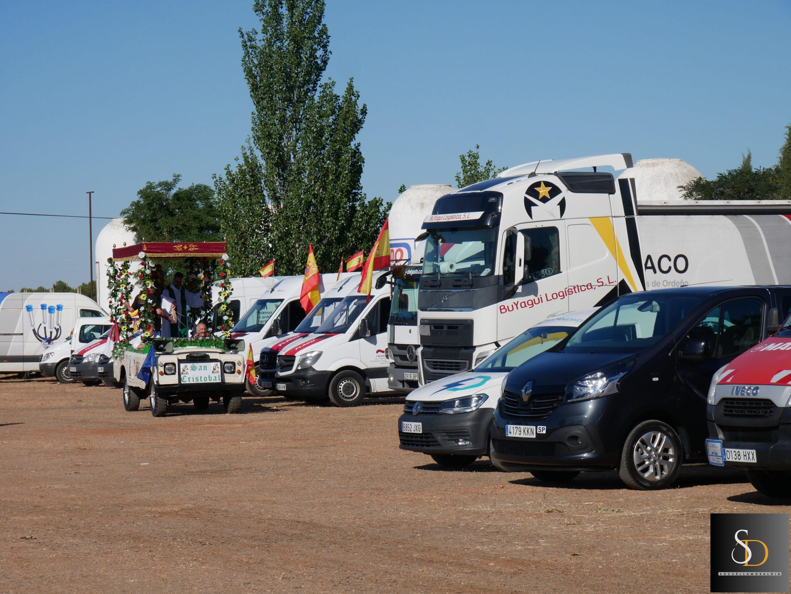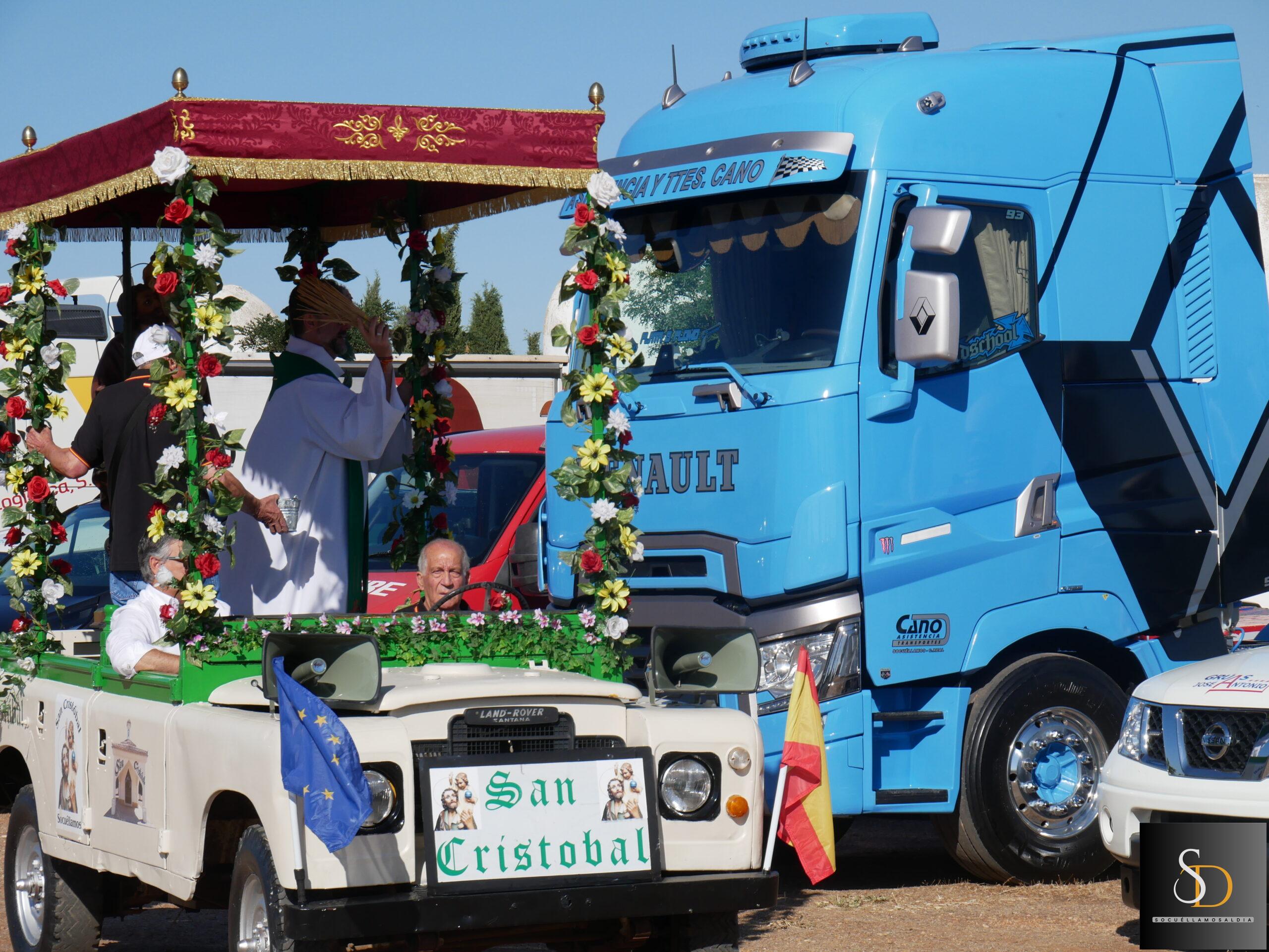 Tras la eucaristía, el sacerdote ha procedido a la bendición de los vehículos y camiones que, como es tradición, se encontraban alineados en la explanada junto a la ermita. Este acto simbólico forma parte de las celebraciones que cada año organiza la Hermandad de San Cristóbal, en reconocimiento a la labor de los transportistas y en recuerdo de quienes ya no están.
