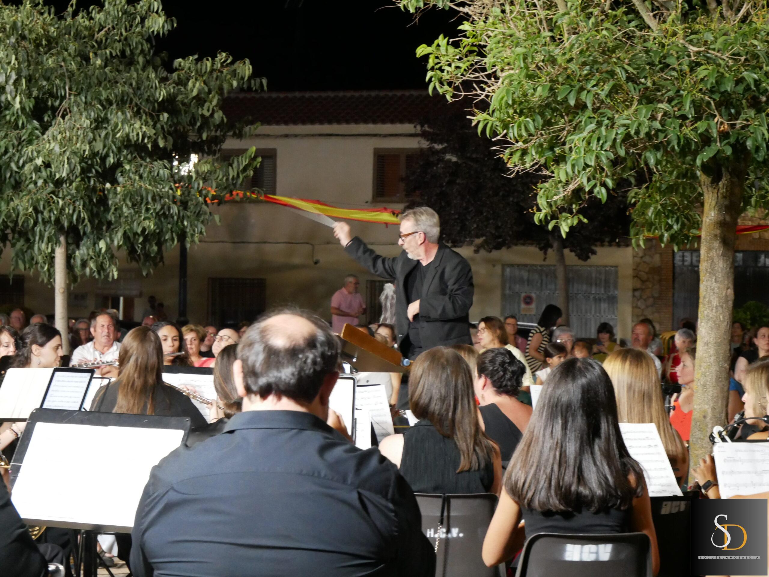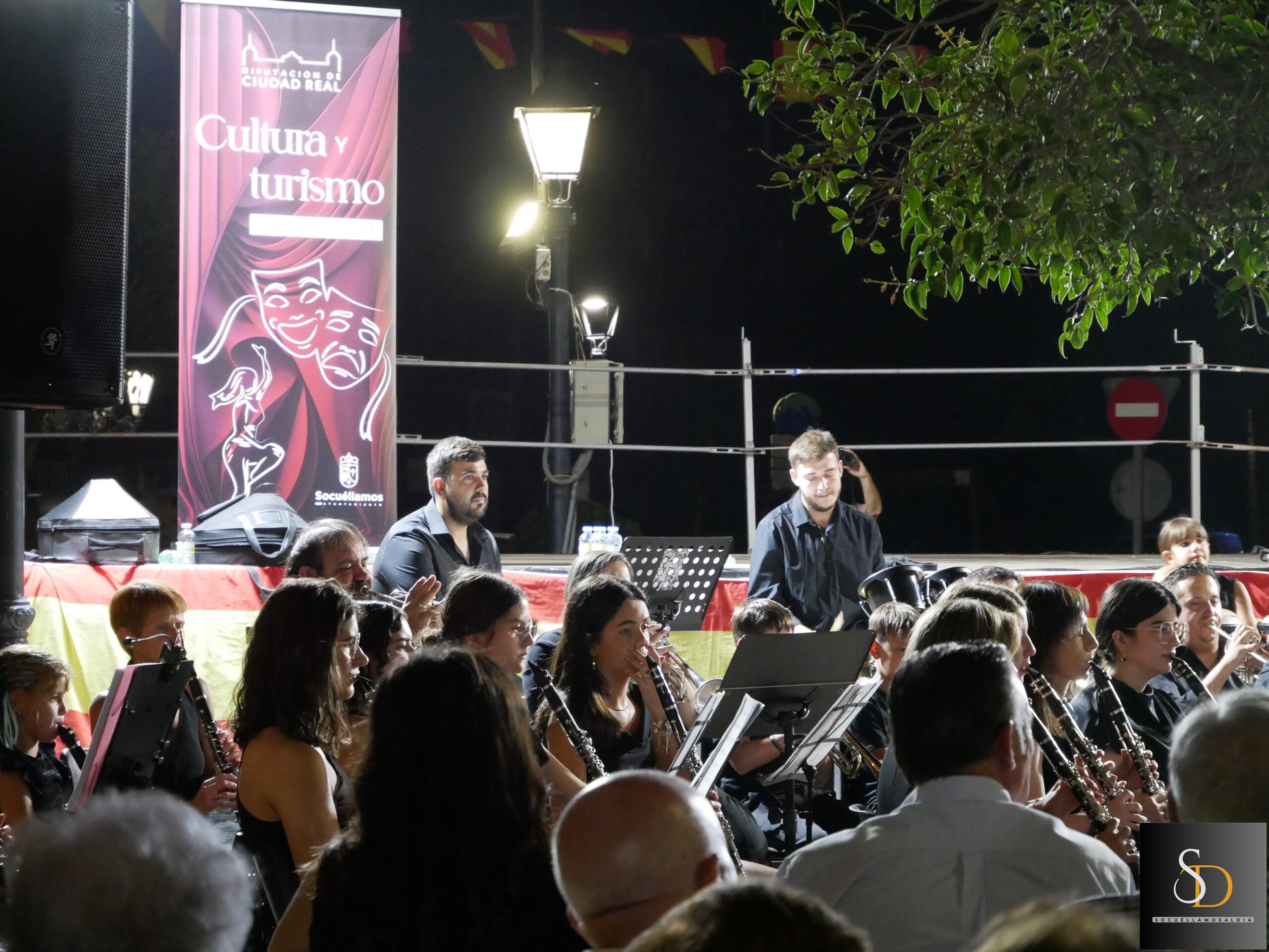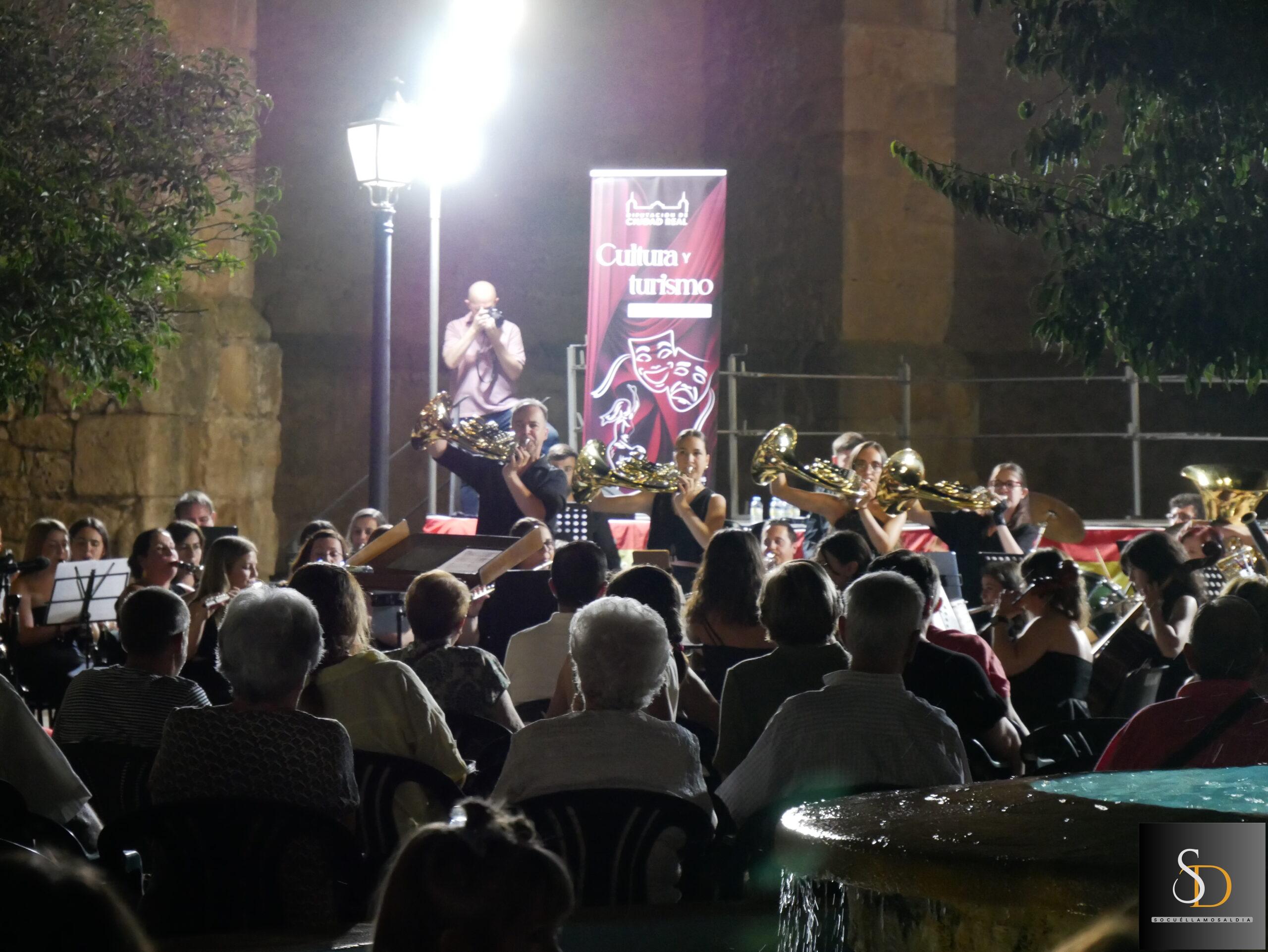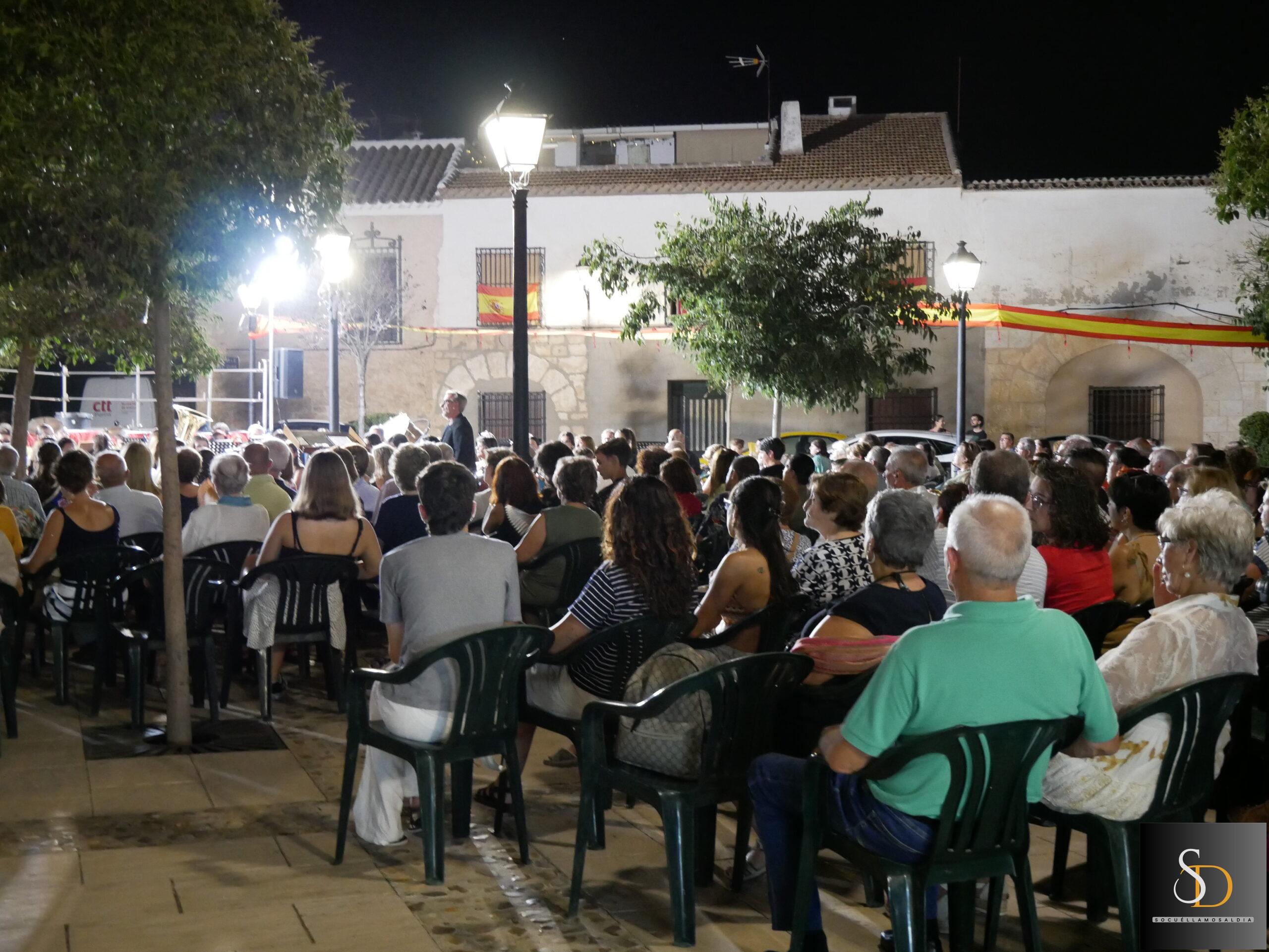 La noche de este miércoles 6 de agosto, la Plaza de la Iglesia acogió el concierto de la Agrupación Musical ‘Maestro Martín Díaz’, de Argamasilla de Alba, bajo la dirección de Miguel Carlos Gómez Perona. La actuación tuvo lugar al término de la novena en honor al Santísimo Cristo de la Vega.