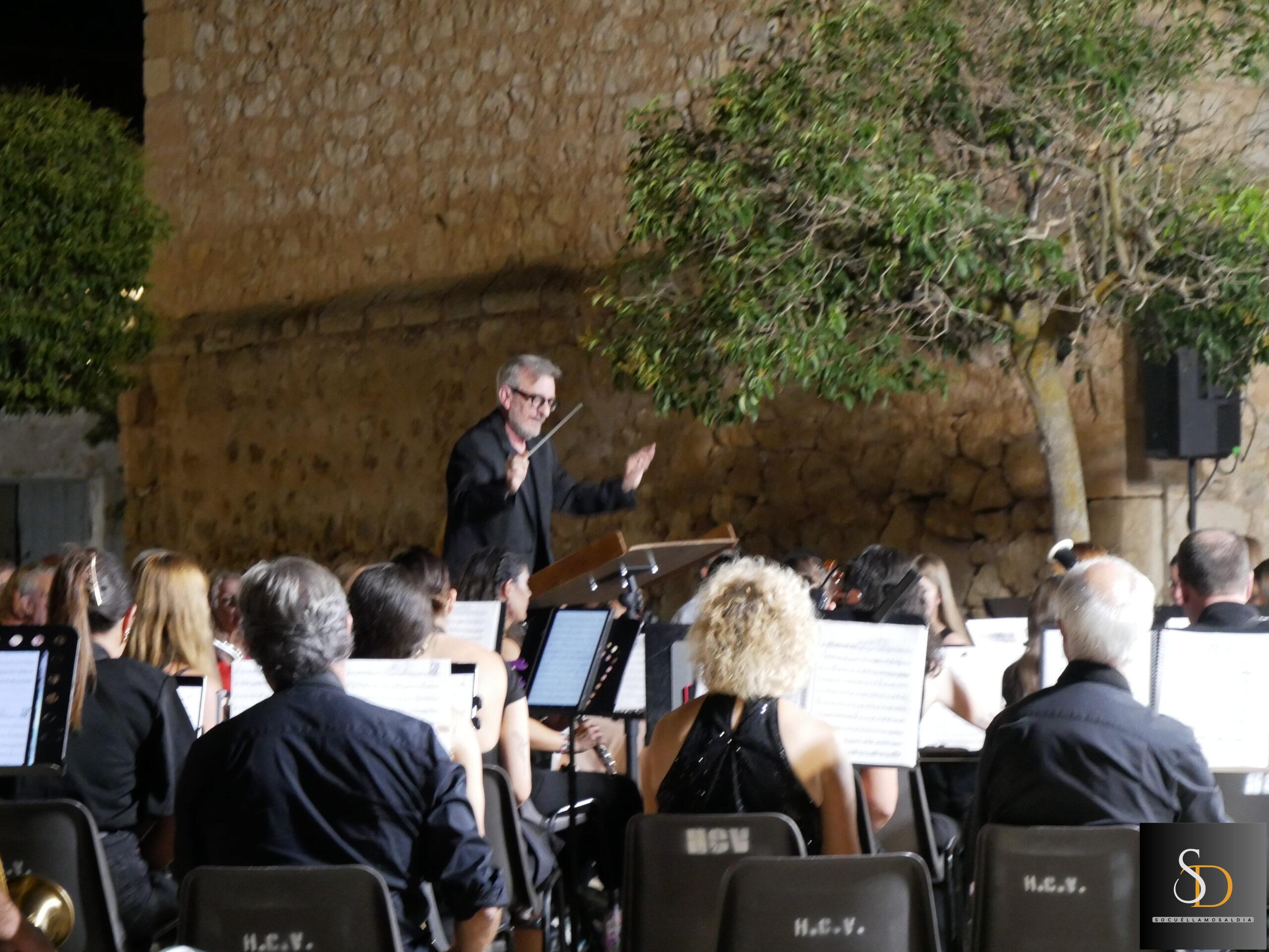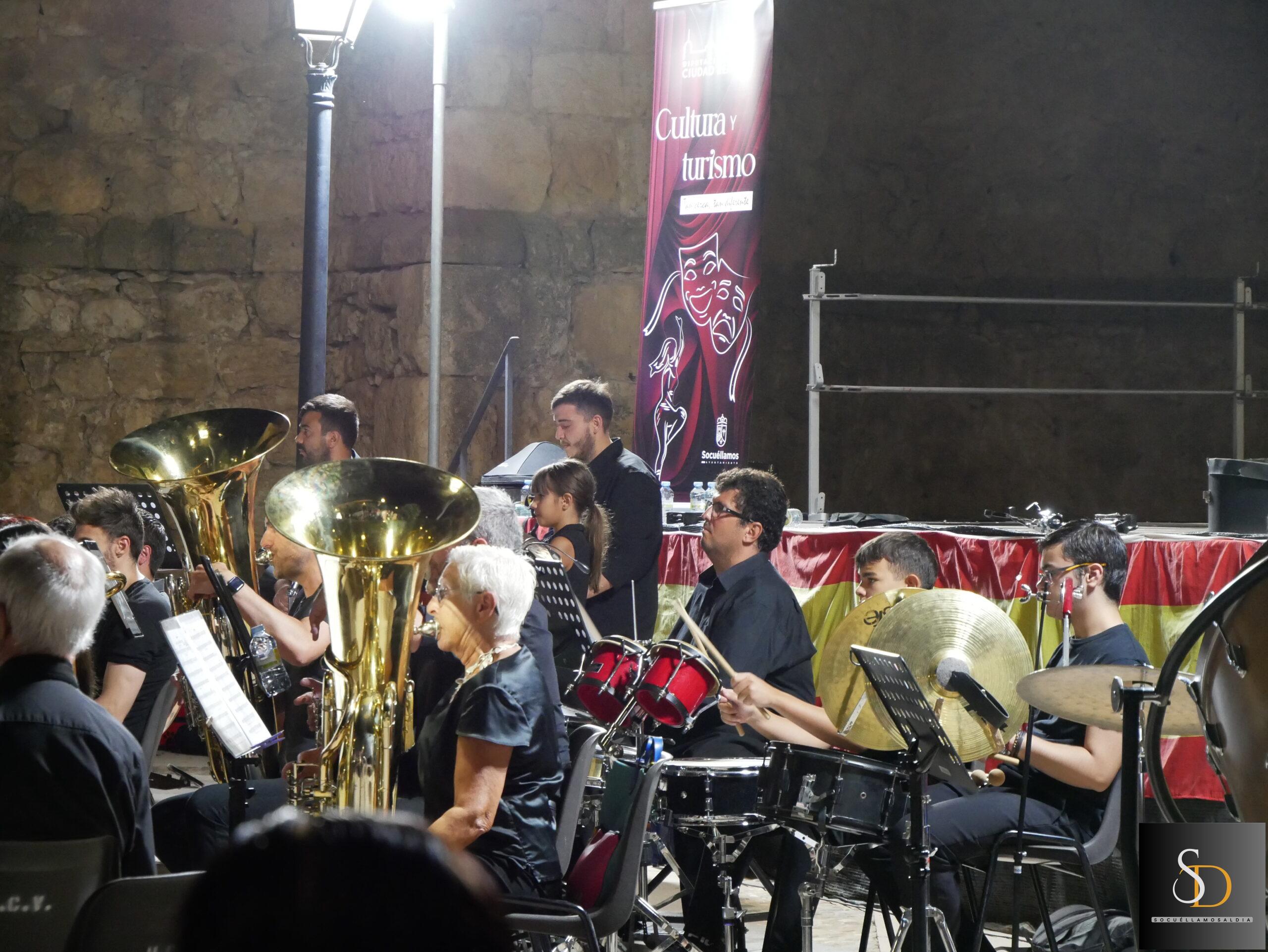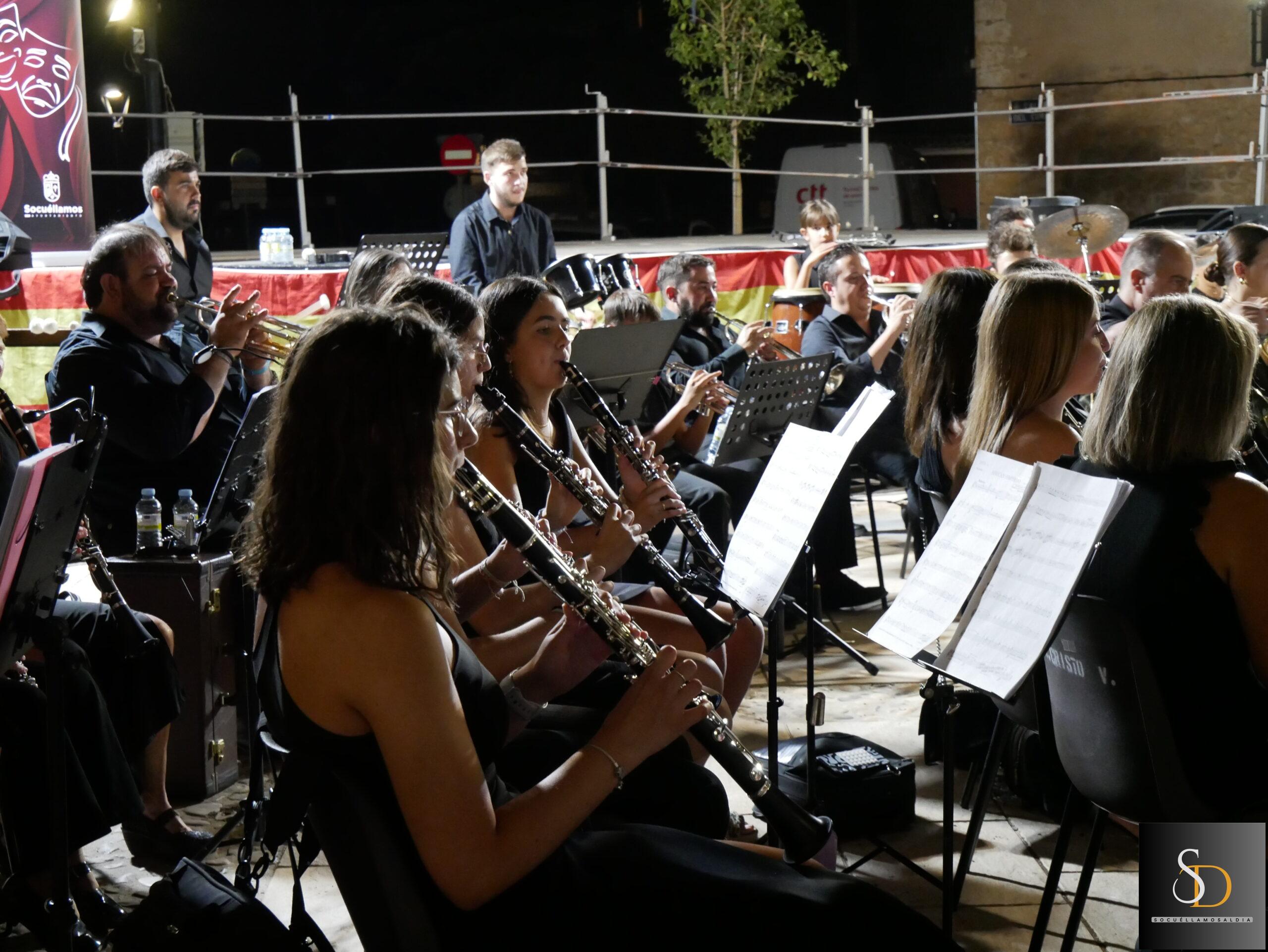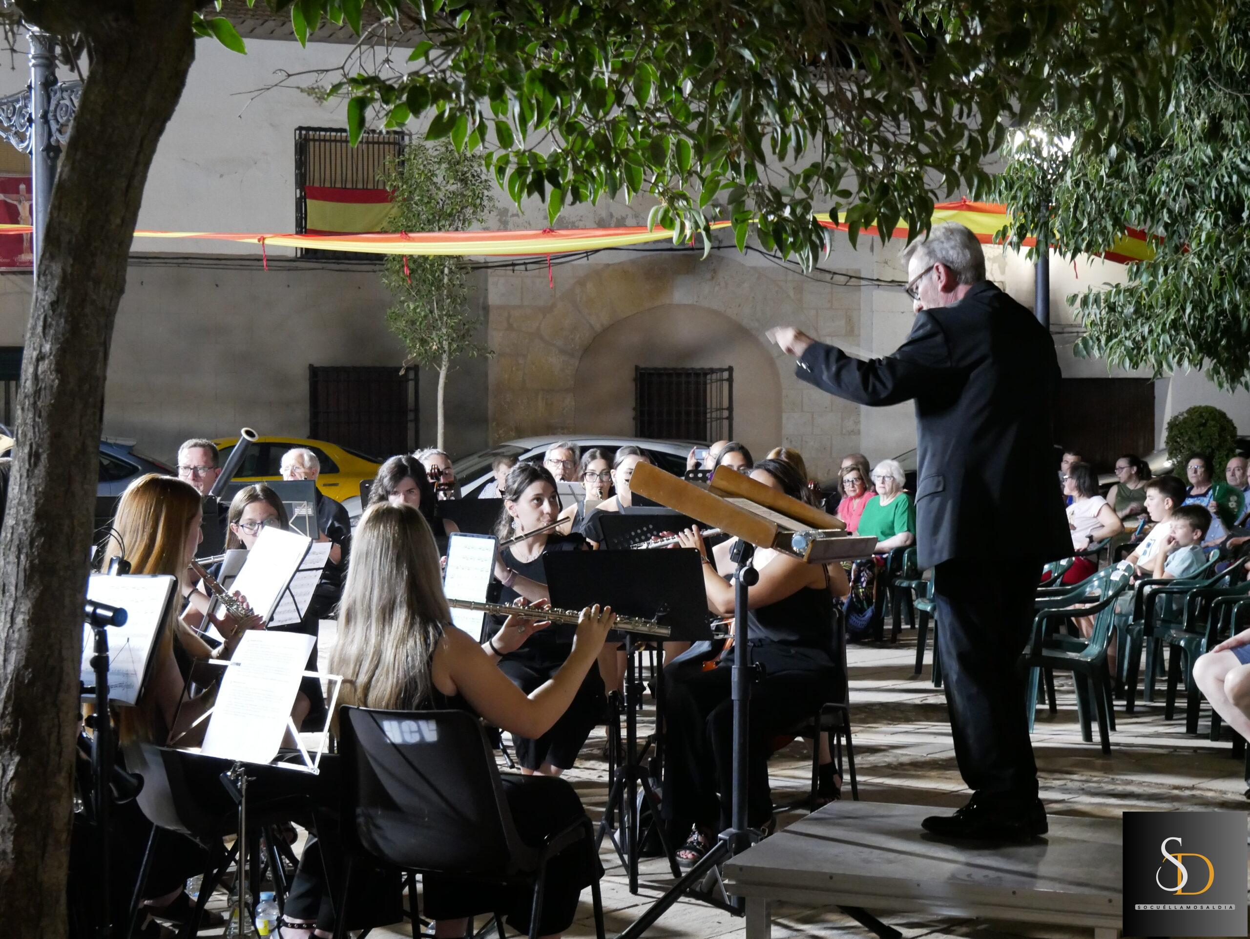 La noche de este miércoles 6 de agosto, la Plaza de la Iglesia acogió el concierto de la Agrupación Musical ‘Maestro Martín Díaz’, de Argamasilla de Alba, bajo la dirección de Miguel Carlos Gómez Perona. La actuación tuvo lugar al término de la novena en honor al Santísimo Cristo de la Vega.