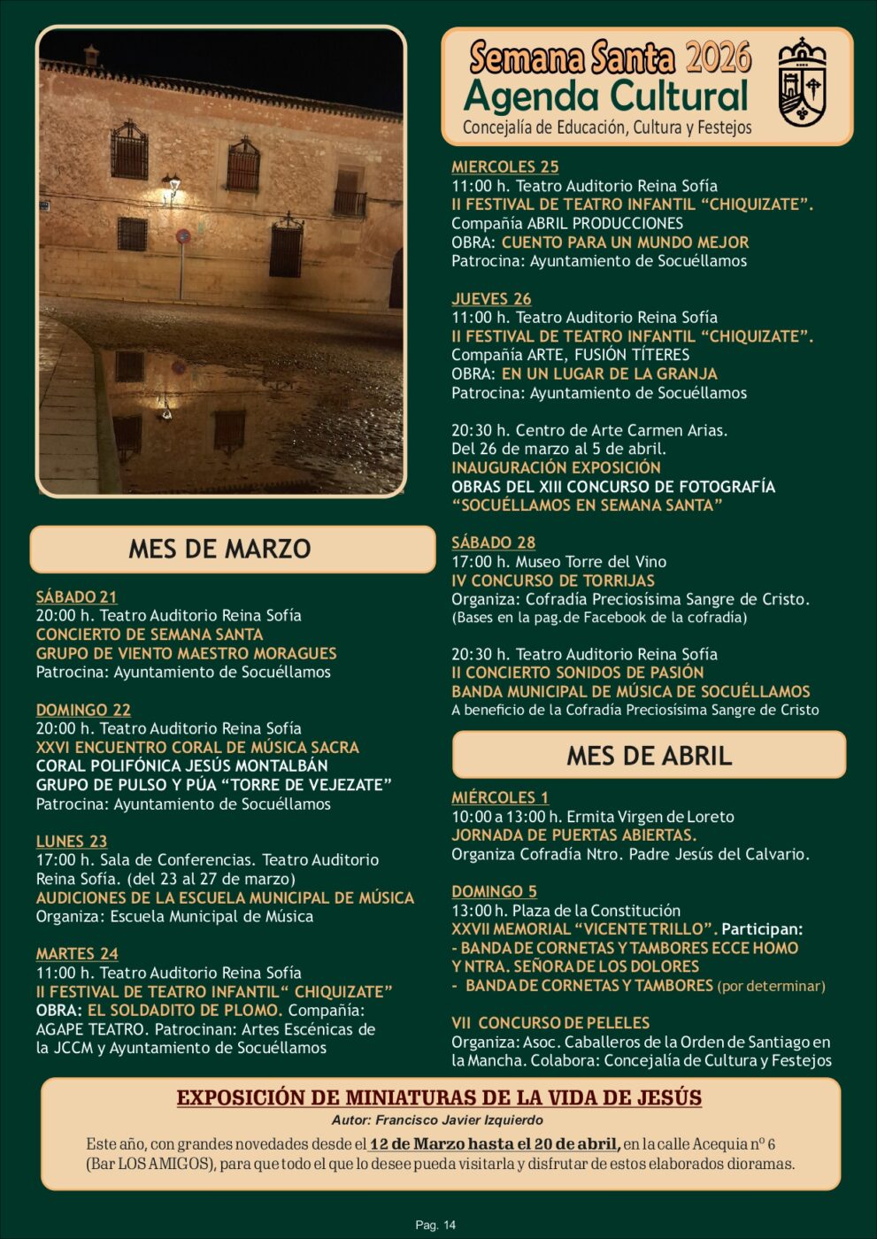 El Ayuntamiento de Socuéllamos ha dado a conocer el programa oficial de la Semana Santa 2026, una completa agenda de actos religiosos y culturales que se desarrollarán en la localidad durante los próximos días.