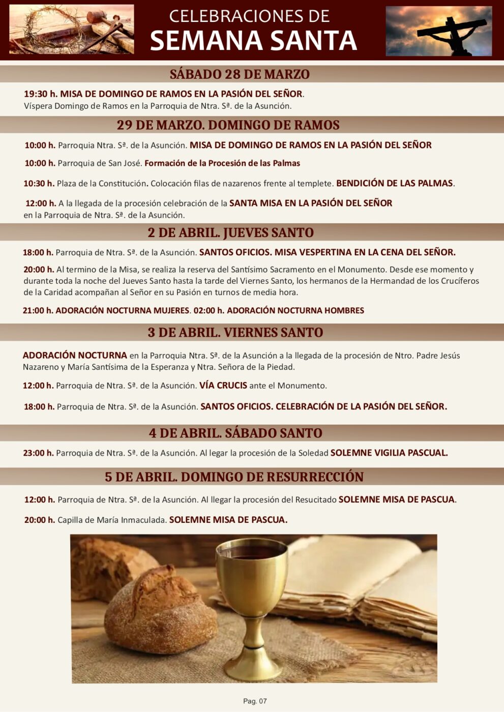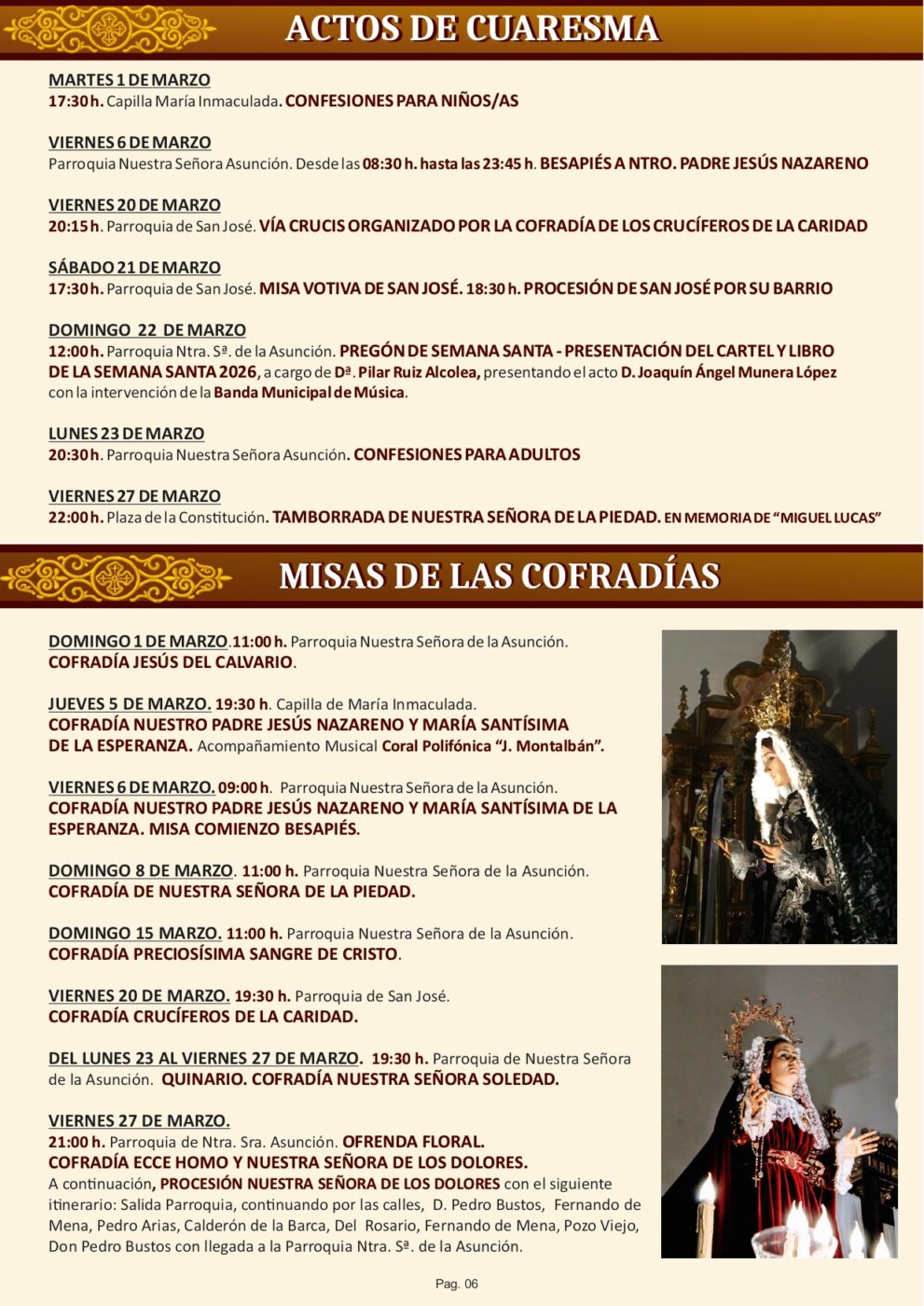 El programa, elaborado en colaboración con la Junta de Cofradías, recoge todos los cultos, procesiones y actividades previstas, así como los actos previos que ya se vienen celebrando en el municipio.