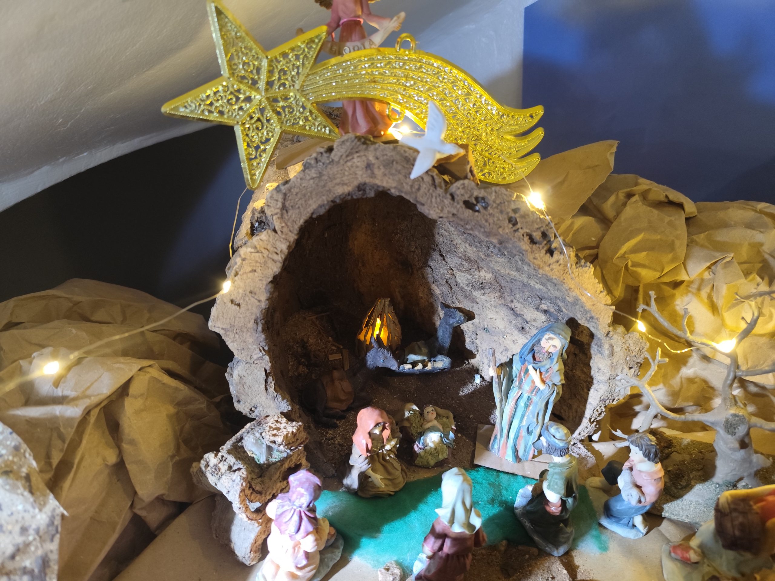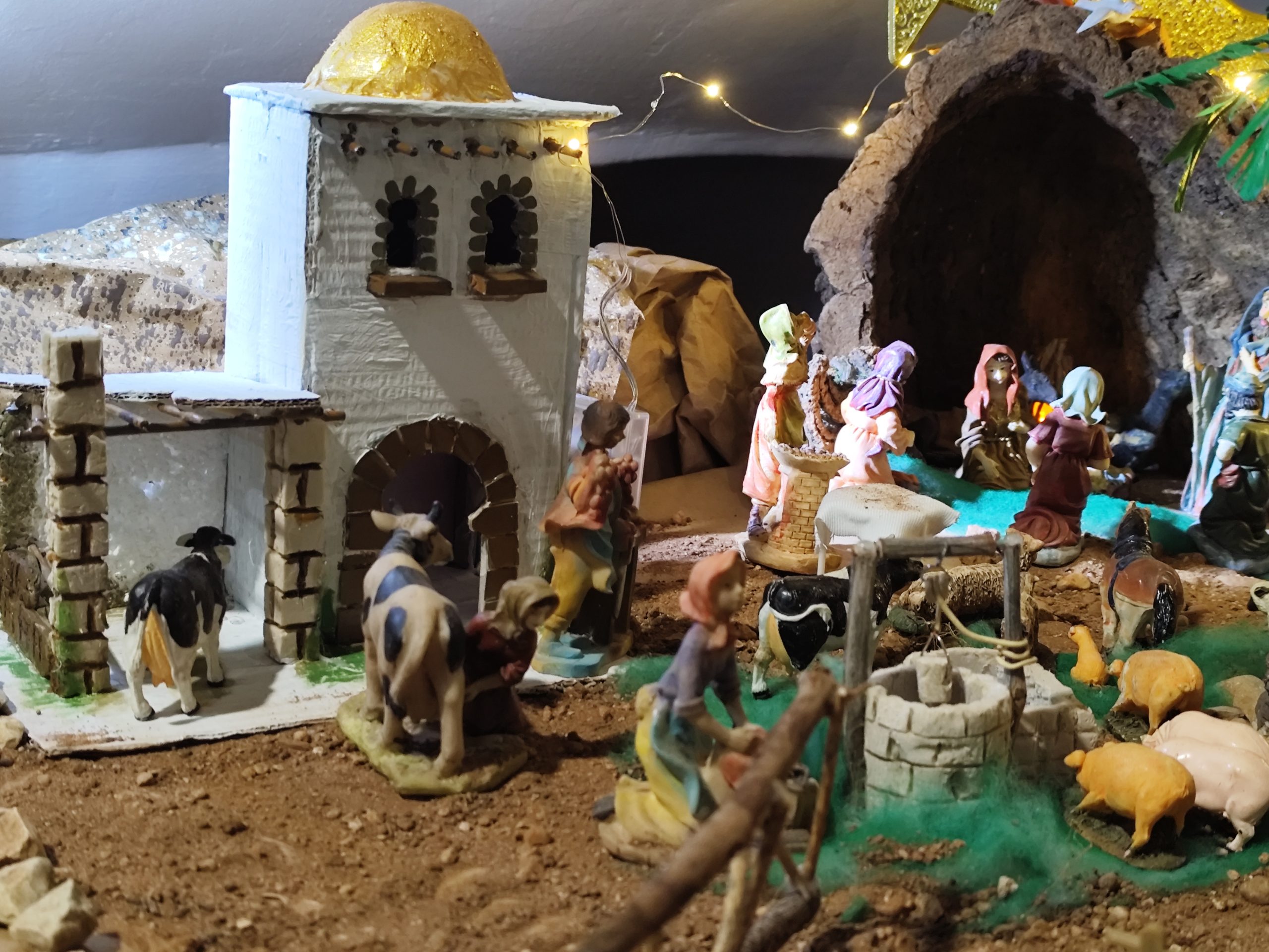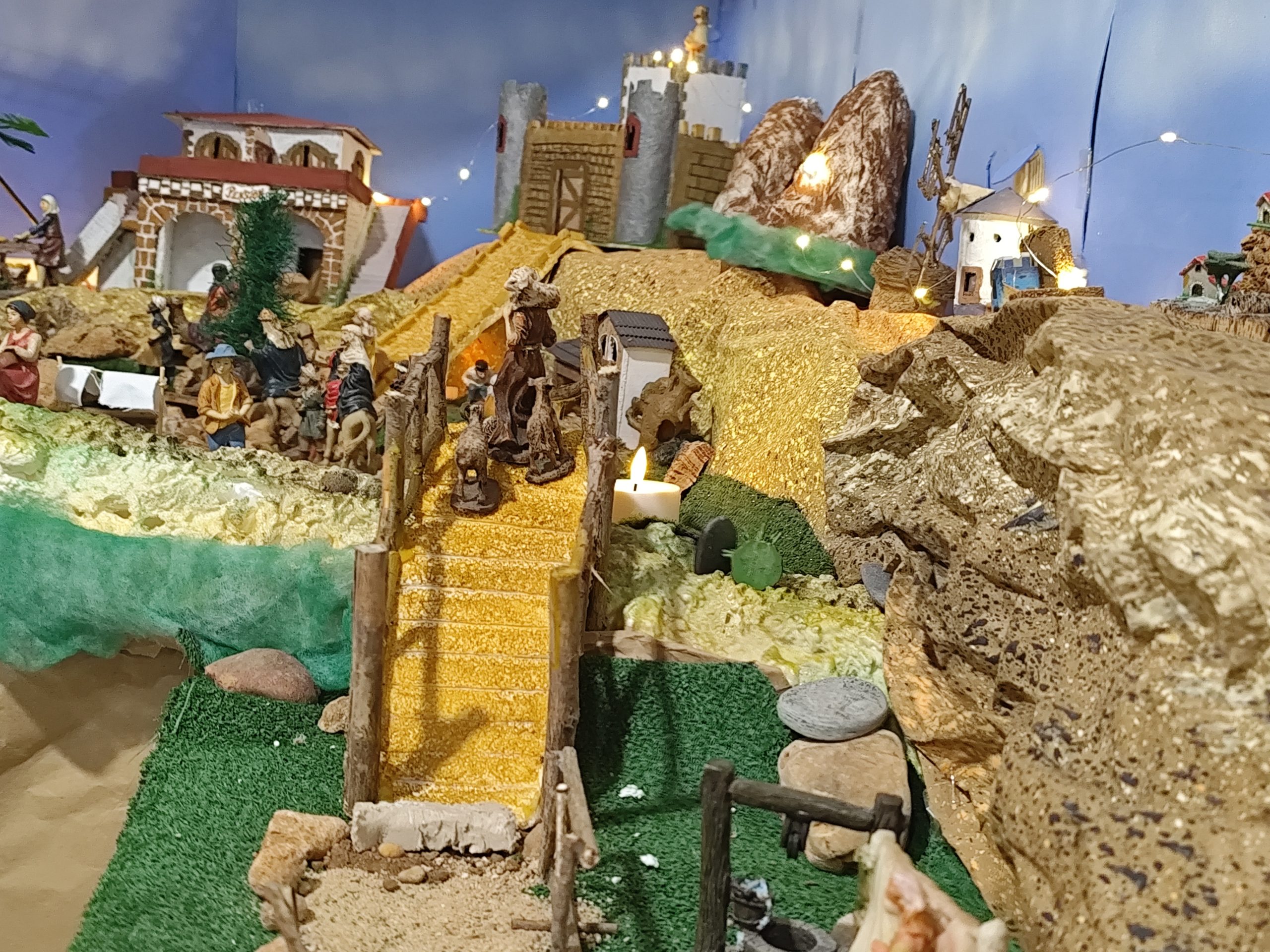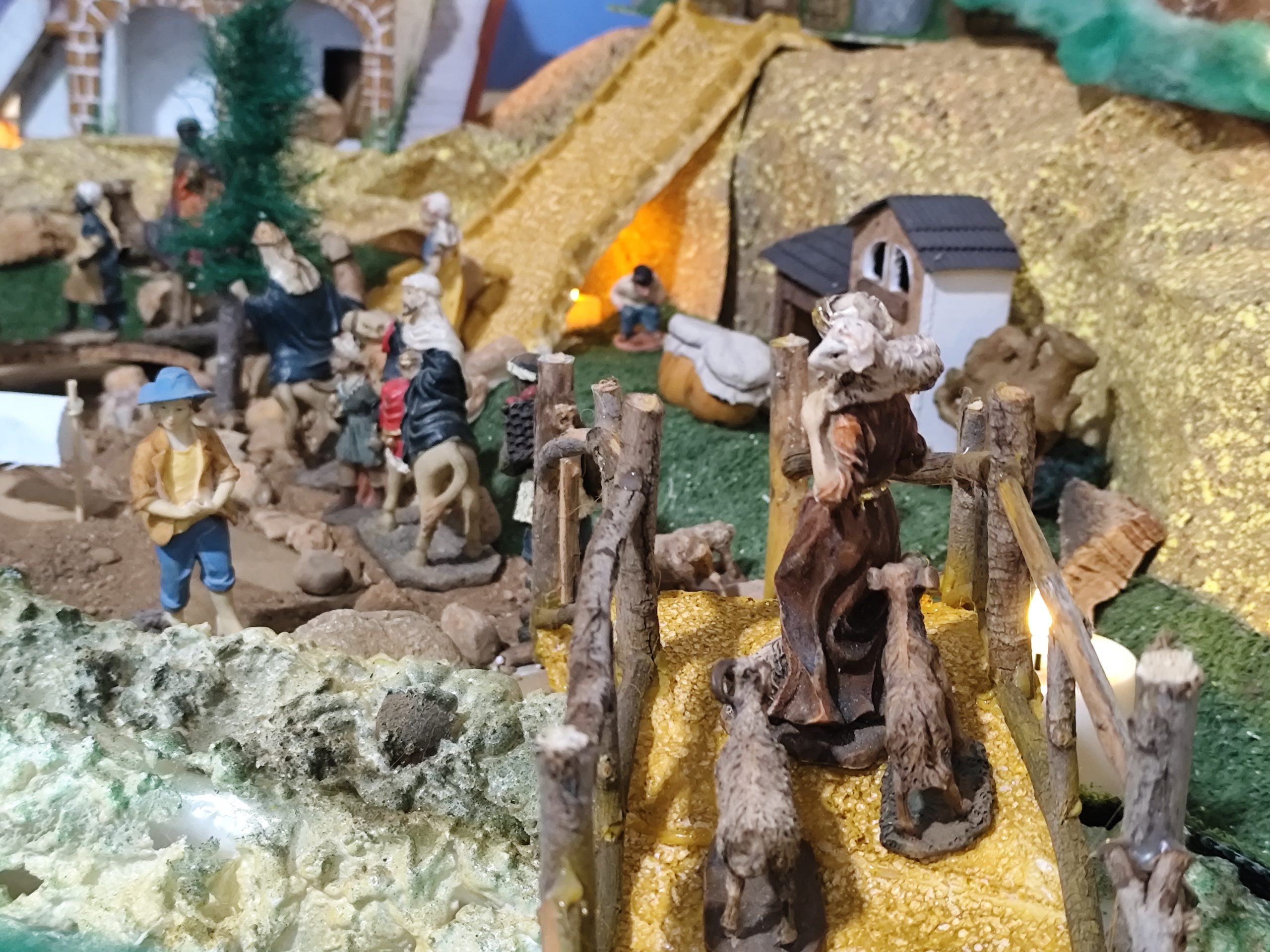 Ignacio comenzó a montar este impresionante belén a principios de noviembre, dedicando horas de trabajo y creatividad para dar vida a esta obra. Todo el conjunto es artesanal, desde las casas hechas con cartón y espuma de poliuretano, hasta los detalles que dotan al escenario de una autenticidad inigualable. La única excepción son las figuras, que complementan el entorno con un toque clásico.