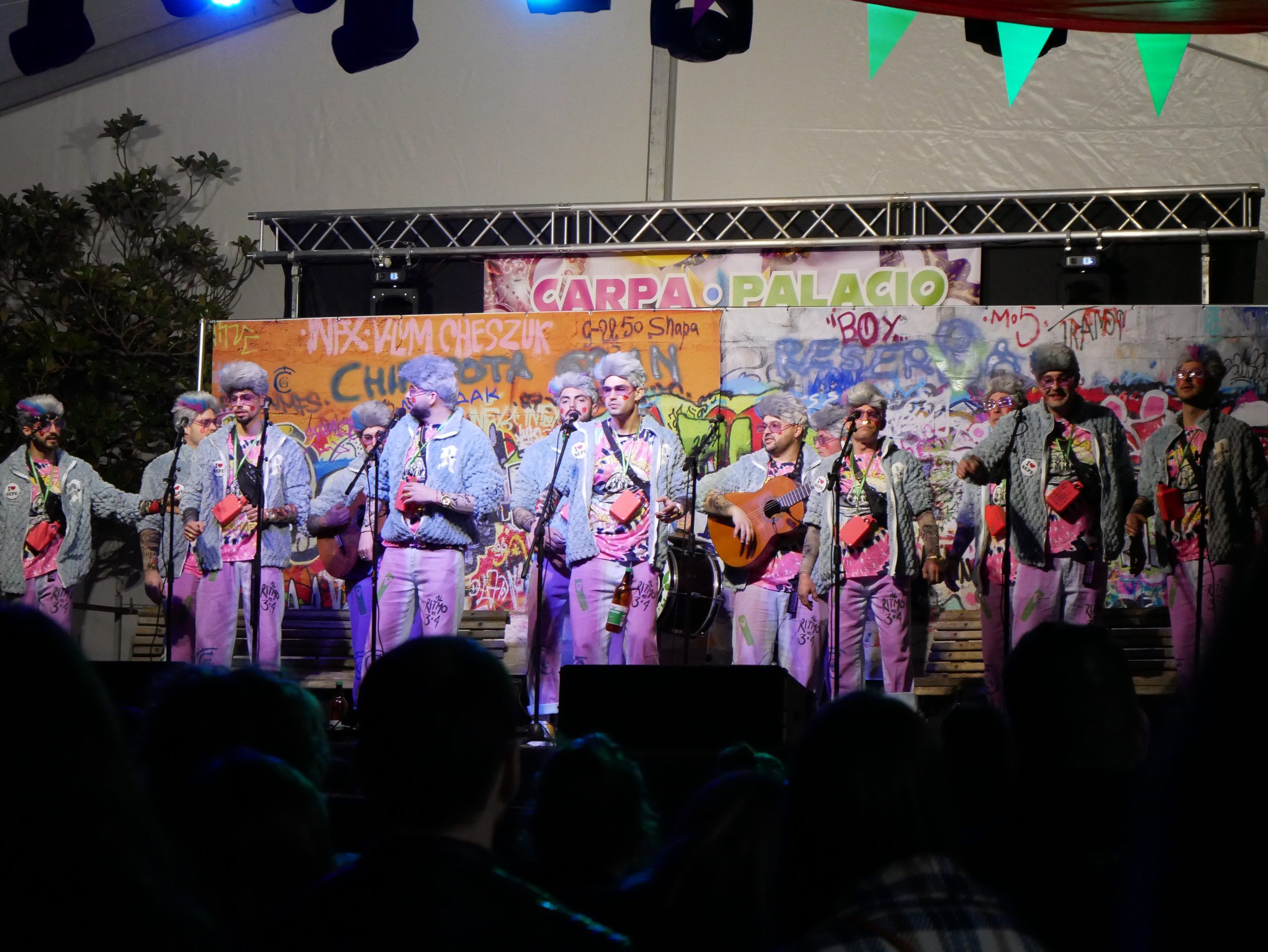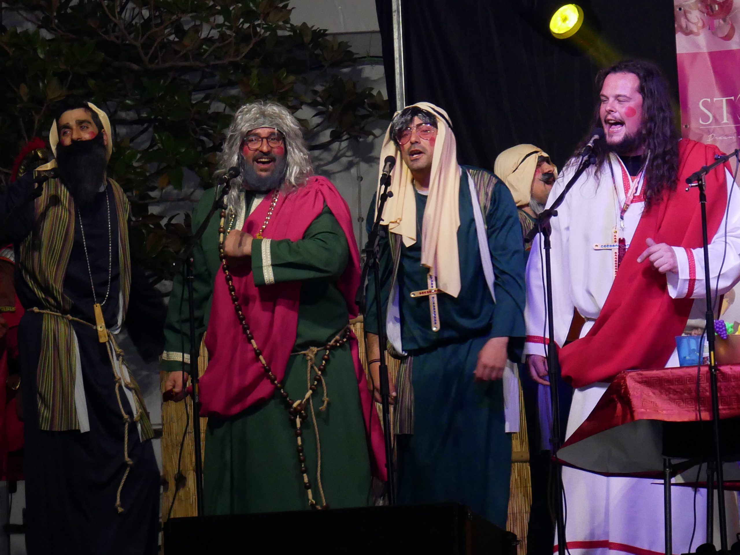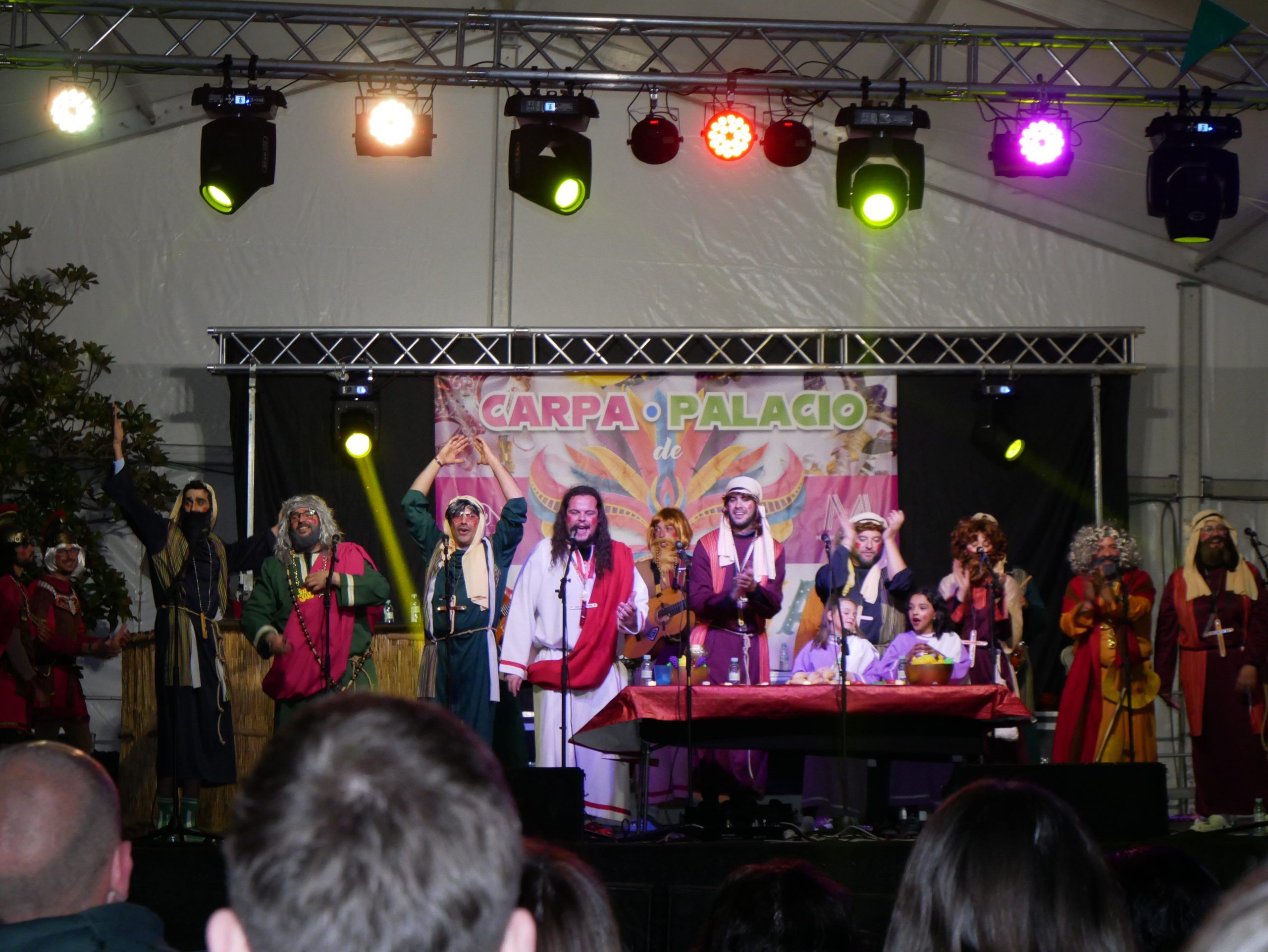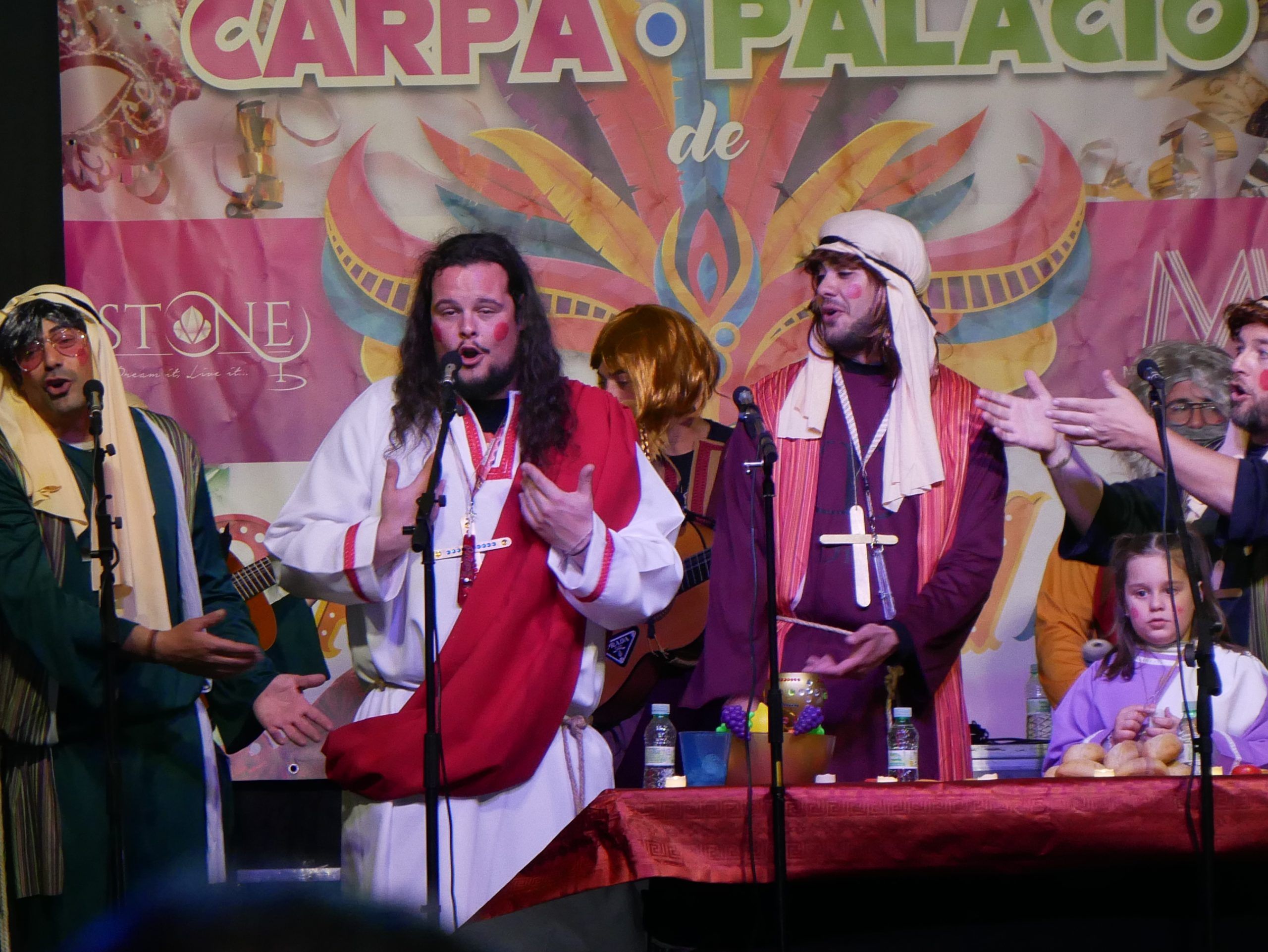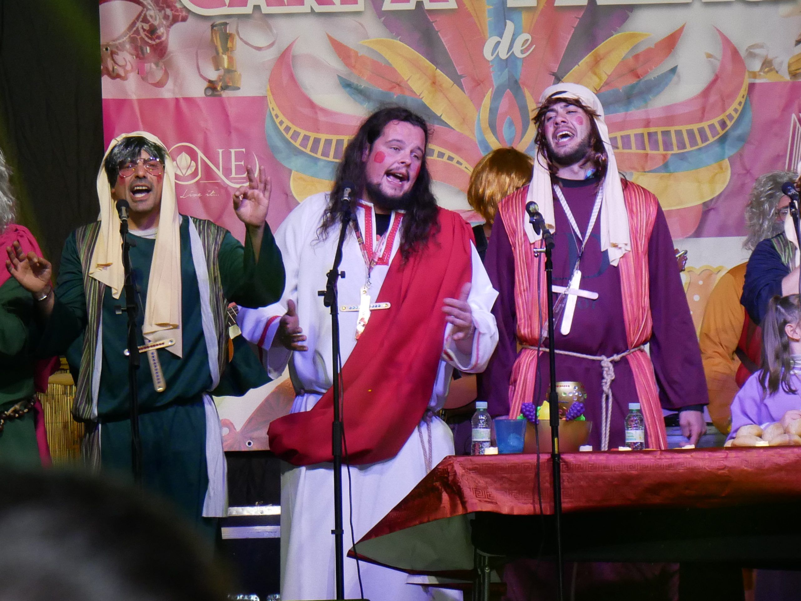 El cierre del festival estuvo a cargo de la chirigota local «Tenemos un Problema» , que lleva nueve años en los escenarios y cuenta con 13 componentes . Este año, su puesta en escena giró en torno a «La Última Cena» , con un espectáculo cargado de humor y referencias actuales.