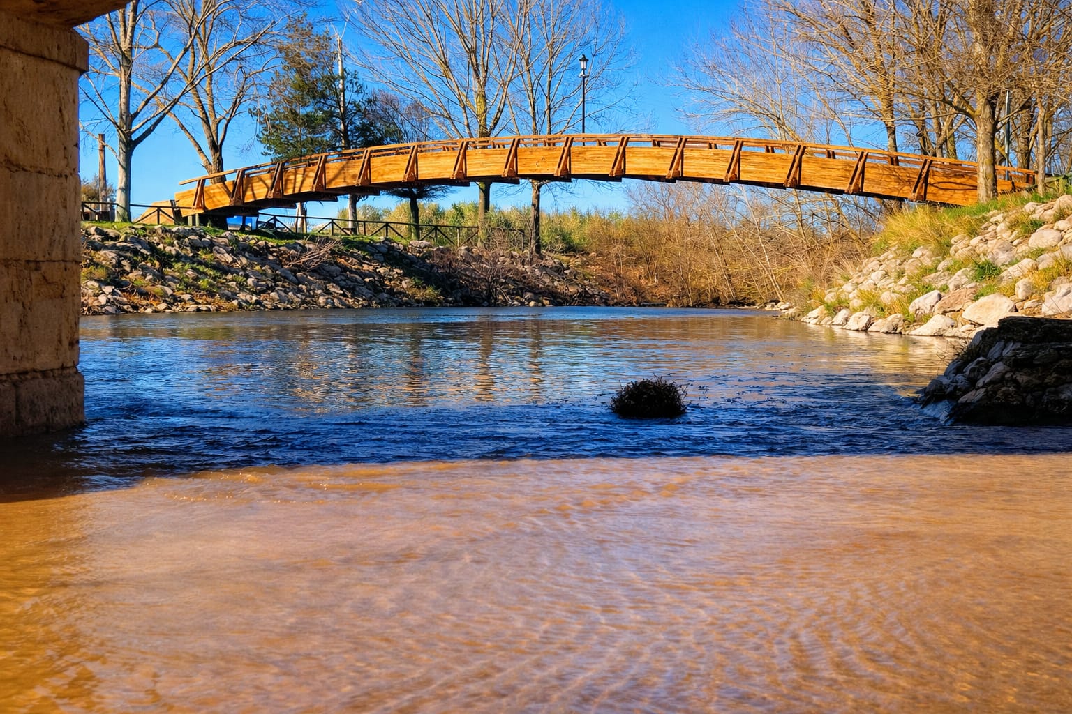 Se trata de instantáneas de gran valor visual, que captan distintos puntos del recorrido del río y reflejan una estampa poco habitual en la zona, con el agua recuperando protagonismo en enclaves naturales muy reconocibles para los vecinos.