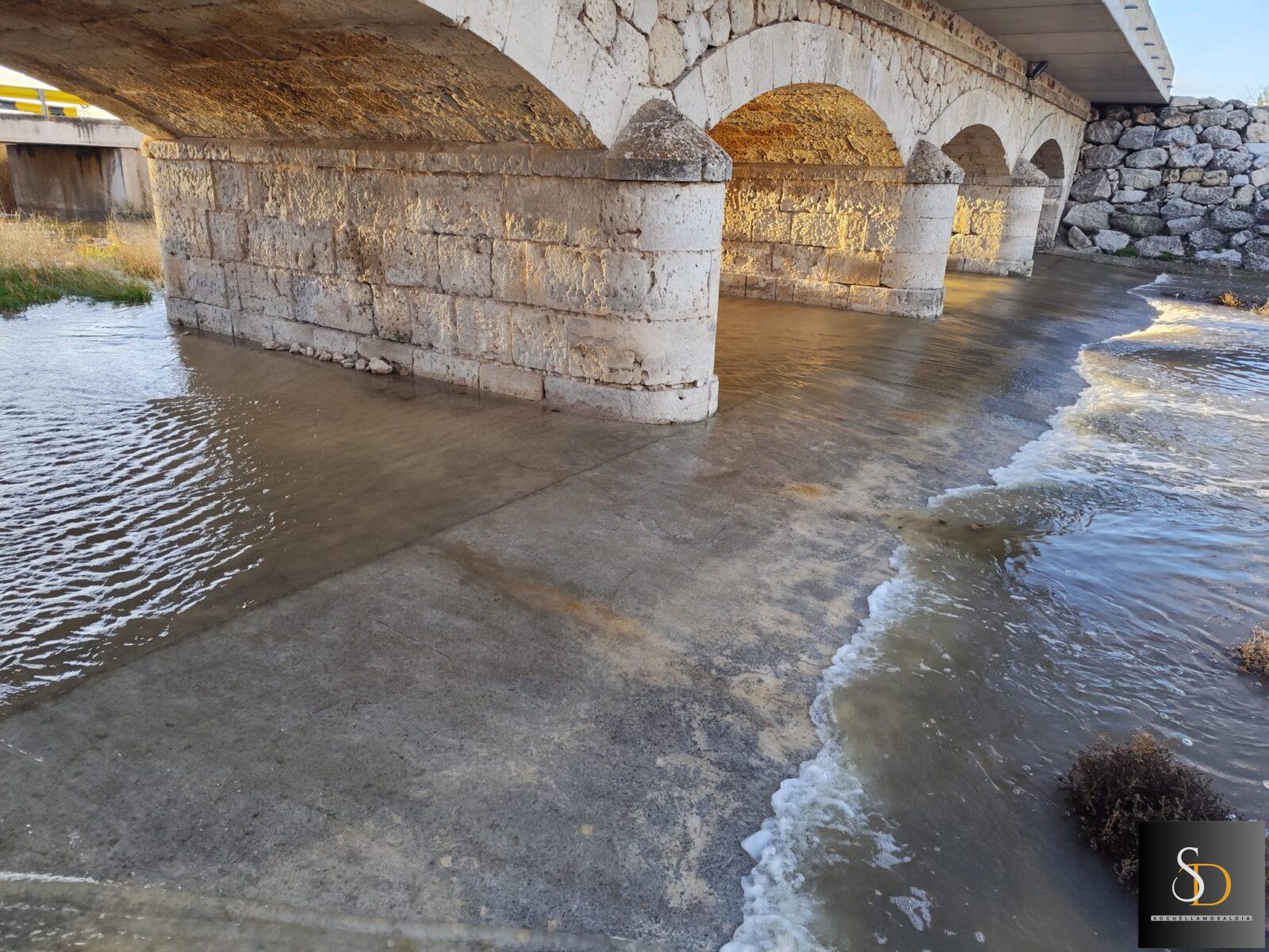 La llegada del agua se ha producido antes de lo inicialmente previsto, lo que confirma que el caudal desciende con mayor fuerza y volumen de lo esperado. En la jornada de ayer, el avance del Záncara alcanzaba el puente de la Raya, situado varios kilómetros aguas arriba, con un discurrir lento. Sin embargo, al llegar al puente del Batán, en la carretera que une Socuéllamos con El Provencio, el ritmo del agua se incrementó de forma evidente.