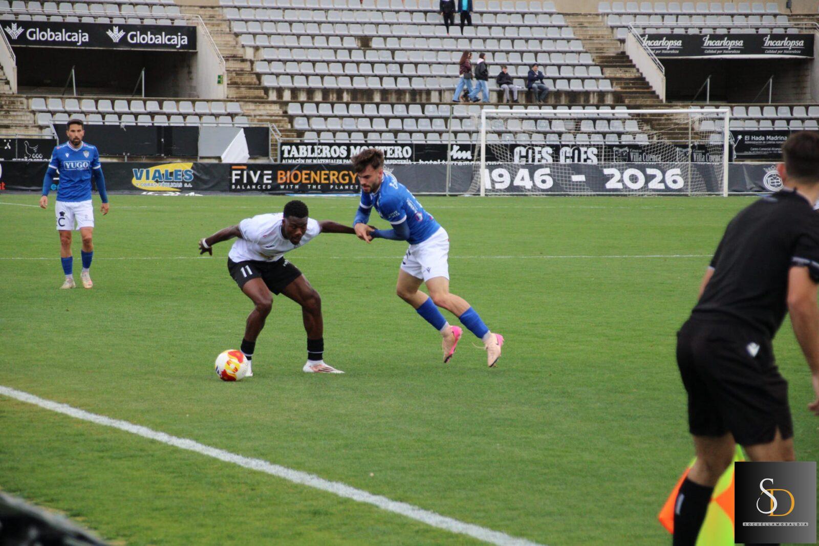 La Unión Deportiva Socuéllamos volvió a tropezar, esta vez en Cuenca, donde cayó por 2-1 ante la Unión Balompédica Conquense, en una derrota que deja al conjunto azulón prácticamente condenado al descenso a falta de tres jornadas para el final.