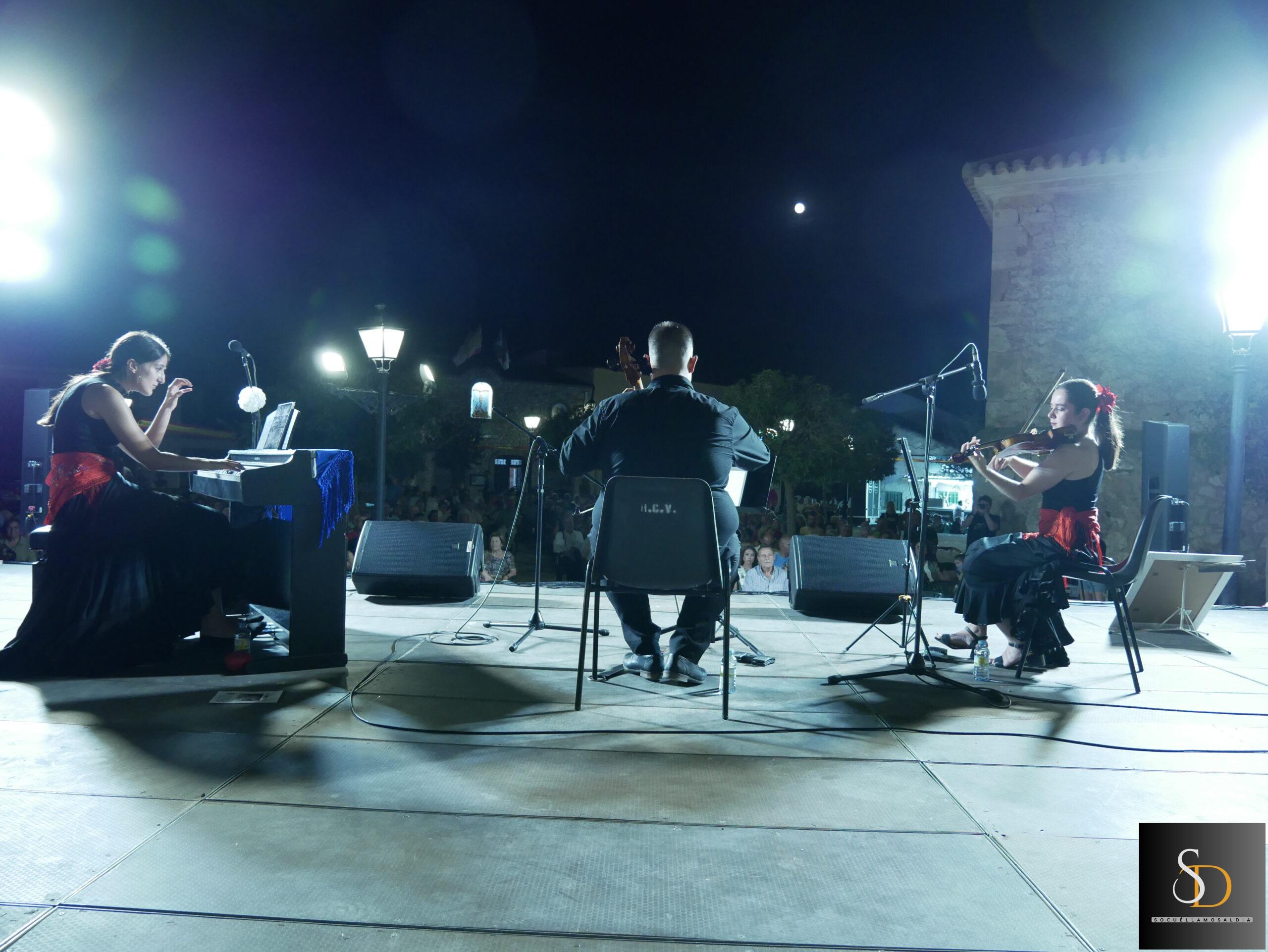El trío, con vínculos personales con la localidad, interpretó los arreglos en formato de cámara, adaptando estas piezas populares al violín, piano y violonchelo, en una propuesta musical cercana y accesible para todos los públicos.
