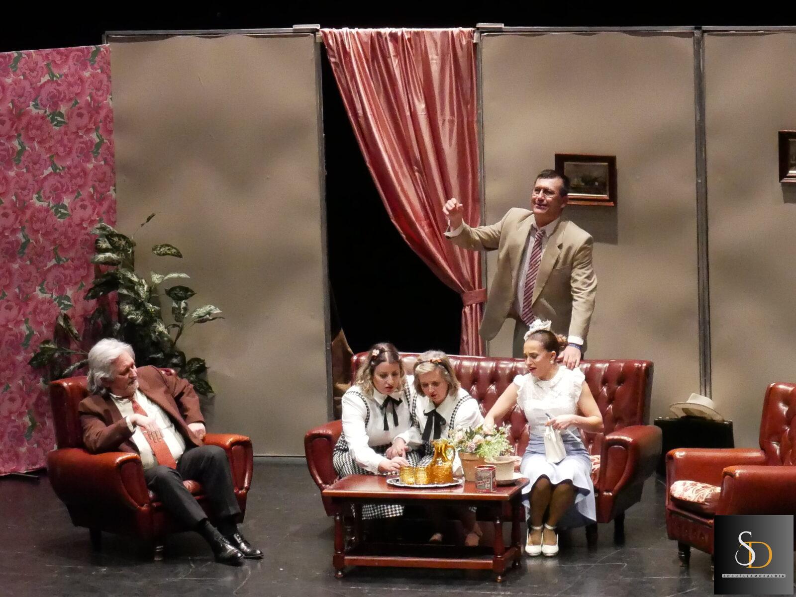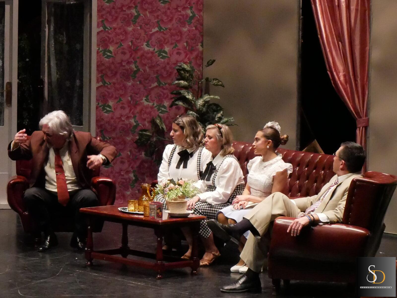Posteriormente, el grupo de teatro El Pocico representó la obra “Bajo sospecha”, una adaptación de “Melocotón en almíbar” de Miguel Mihura, ofreciendo una propuesta cargada de humor e ironía que fue bien recibida por el público asistente.