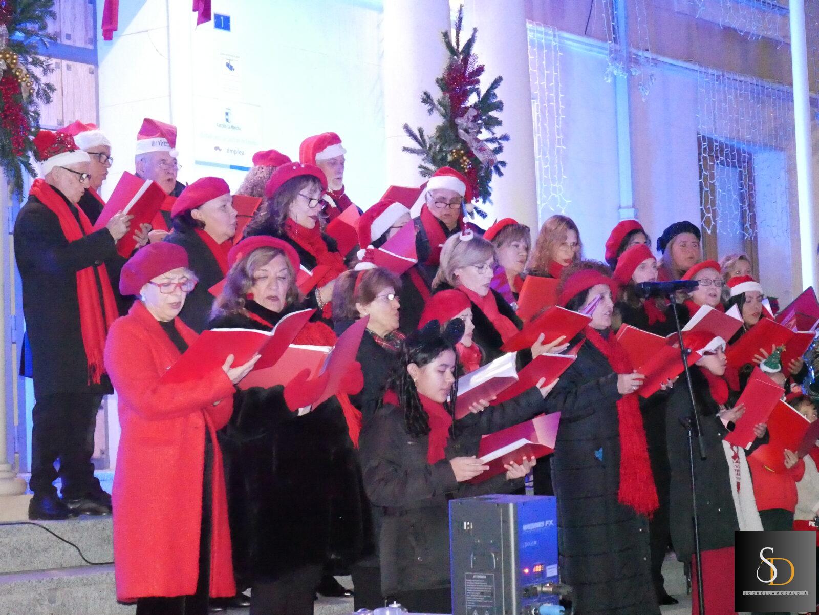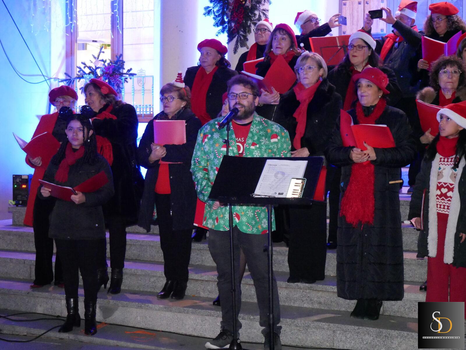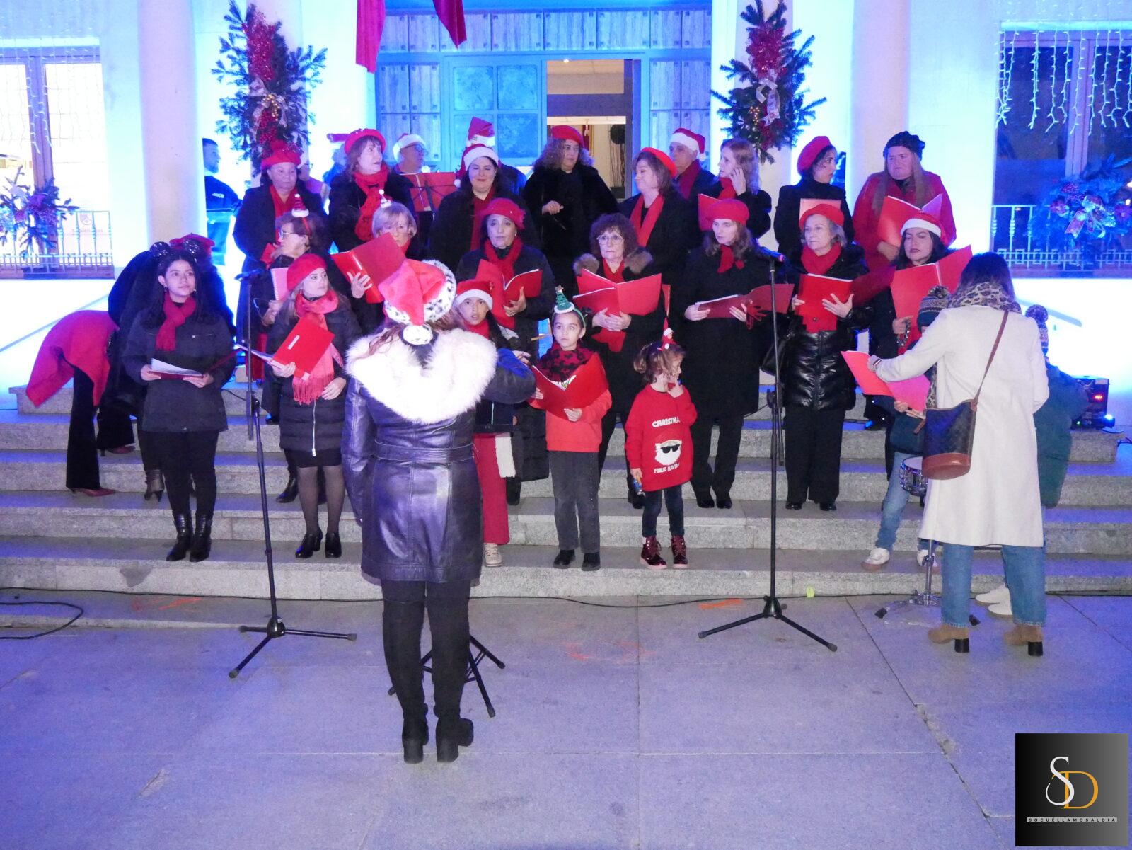 La jornada comenzó con la actuación del Coro de la Universidad Popular, que interpretó varios villancicos en la puerta del Ayuntamiento, creando un ambiente plenamente navideño antes del momento central de la tarde.
