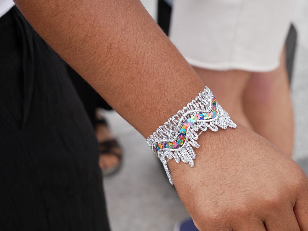 La Asociación Feminista Milenrama ha repartido pulseras entre el público asistente con colores LGTBI