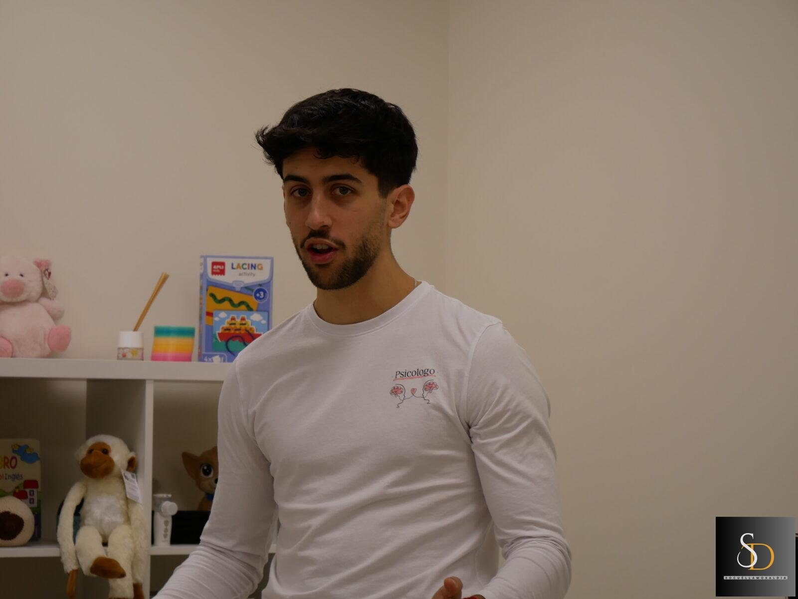 El psicólogo Víctor Lozano, incorporado recientemente al centro, presentó su trabajo con un mensaje de amplitud y cercanía: atiende niños y adultos y aborda dificultades de la infancia, ansiedad, duelo, y también cuestiones actuales como adicciones conductuales (pantallas, redes, juego).