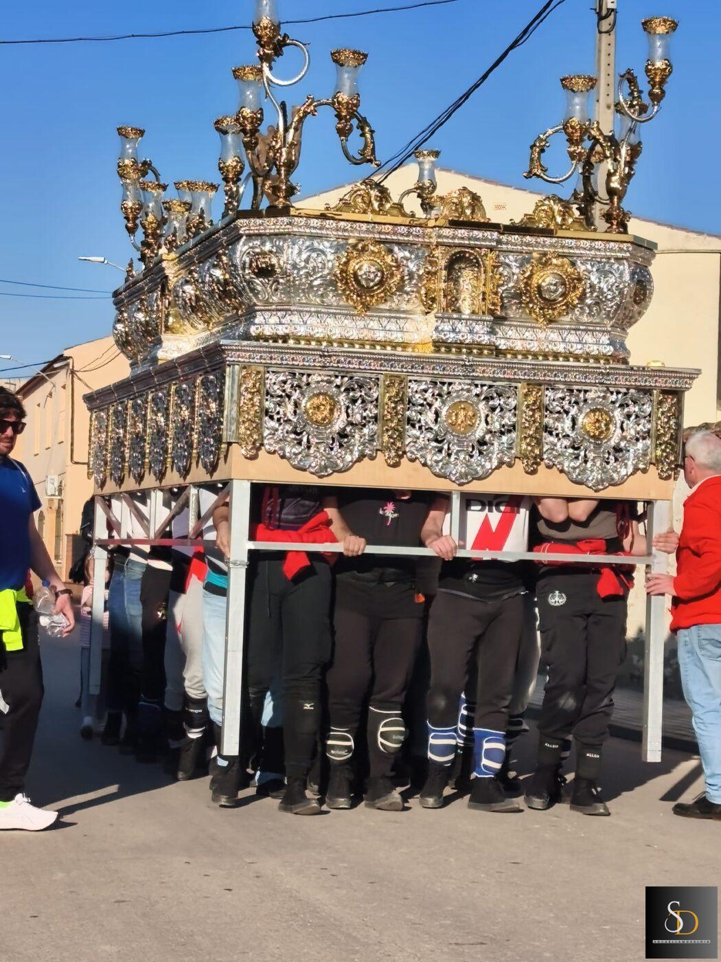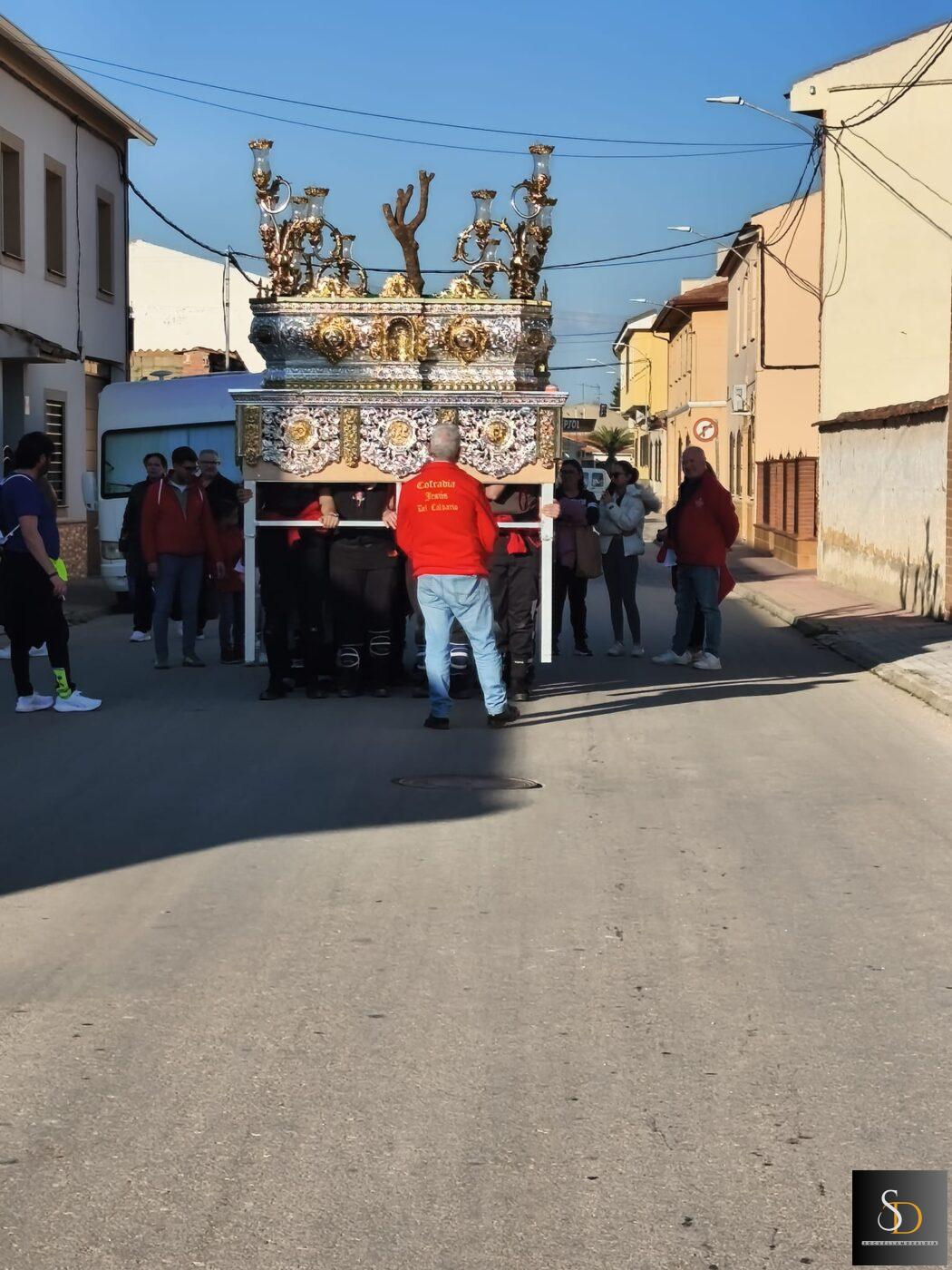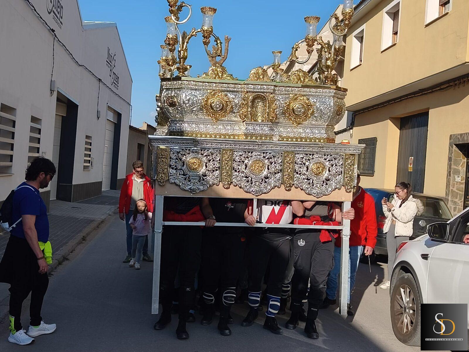 Este traslado, que forma parte de los preparativos previos a la Semana Santa, ha servido también como ensayo para los portadores, permitiendo ajustar detalles de cara a una de las citas más importantes del calendario cofrade en Socuéllamos.