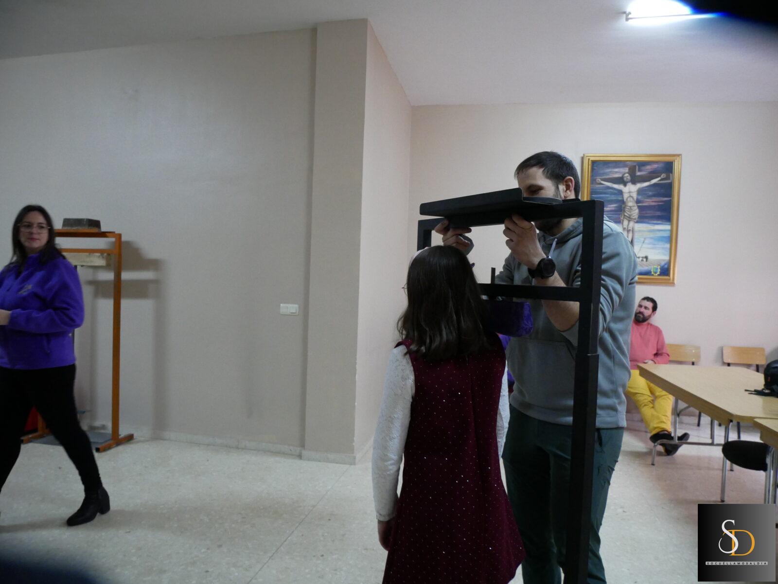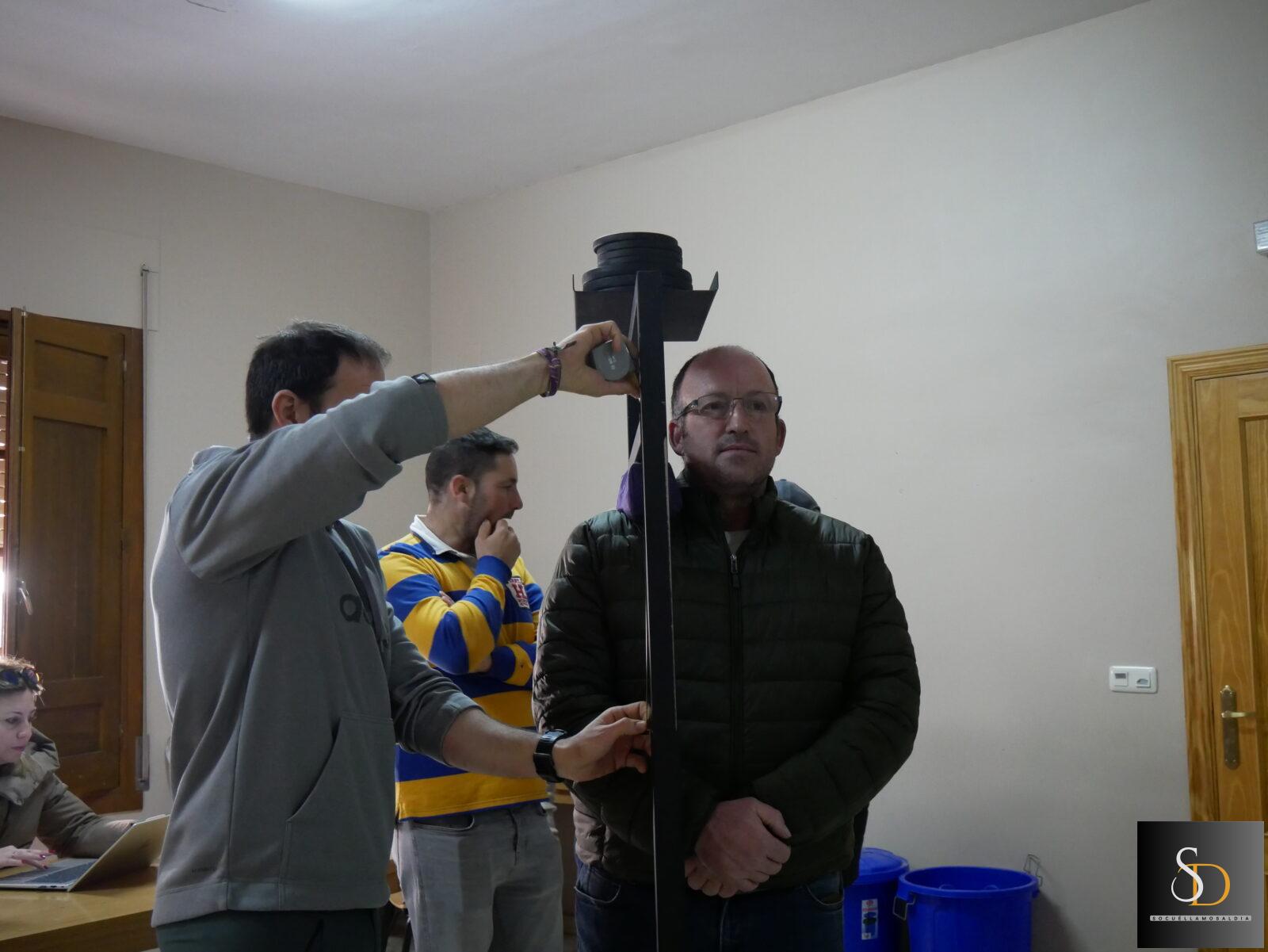 Durante la jornada se han realizado las mediciones de los distintos pasos que procesiona la hermandad. En el caso de la cuadrilla adulta, se han ajustado los pasos del Amarrado a la Columna y del Santo Sepulcro, mientras que la cuadrilla infantil ha trabajado con el Paso del Calvario y con la almohadilla simbólica que porta los clavos, la corona de espinas y el martillo, elementos que acompañan la procesión del Viernes Santo.