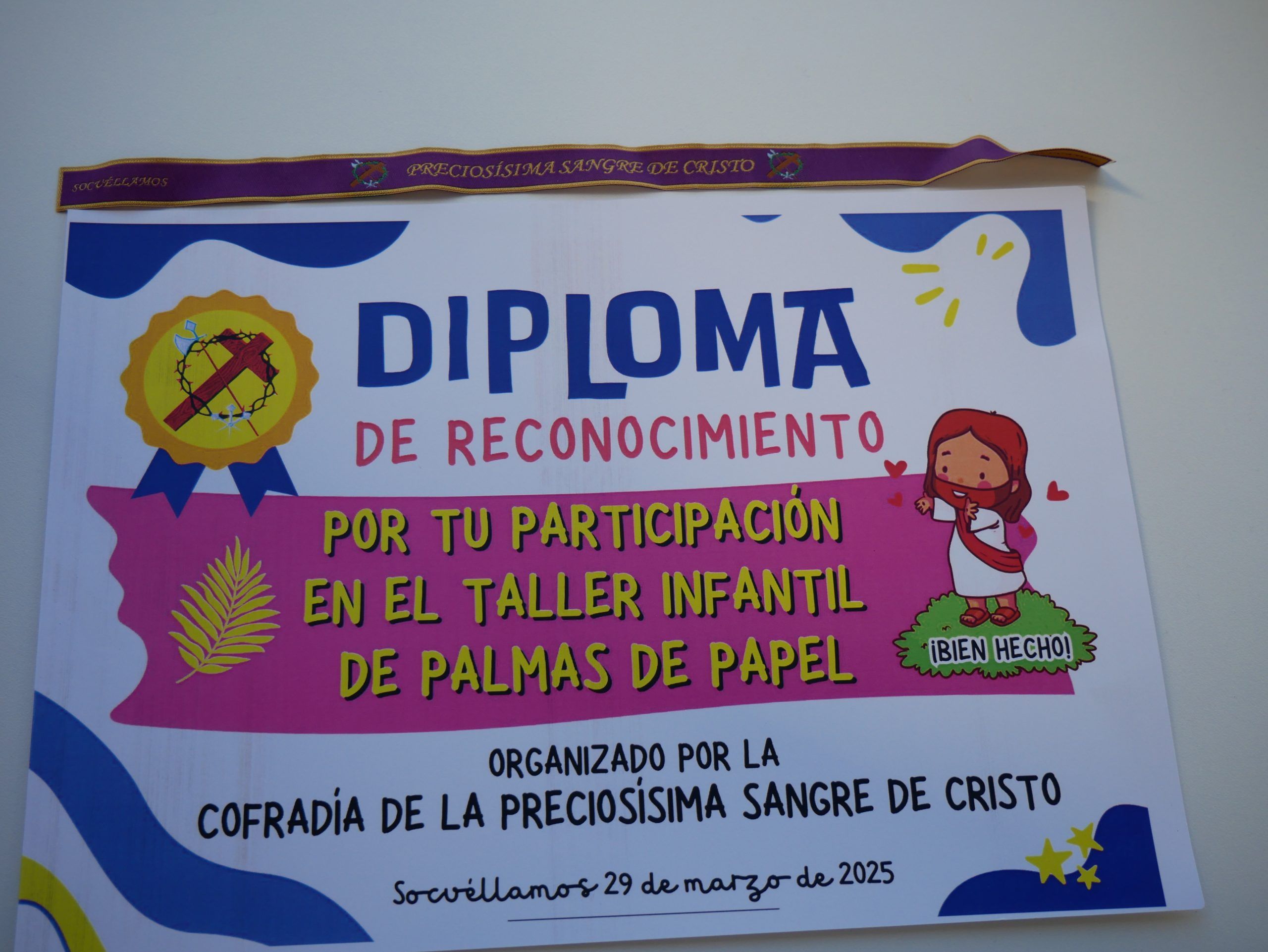 El taller, dirigido a niños y niñas de entre 5 y 14 años, ha servido como espacio lúdico y formativo en plena Cuaresma, y ha contado con una notable participación. En el acto se ha entregado a cada participante un diploma de reconocimiento, acompañado por un lazo morado, color característico del tiempo litúrgico que precede a la Semana Santa.