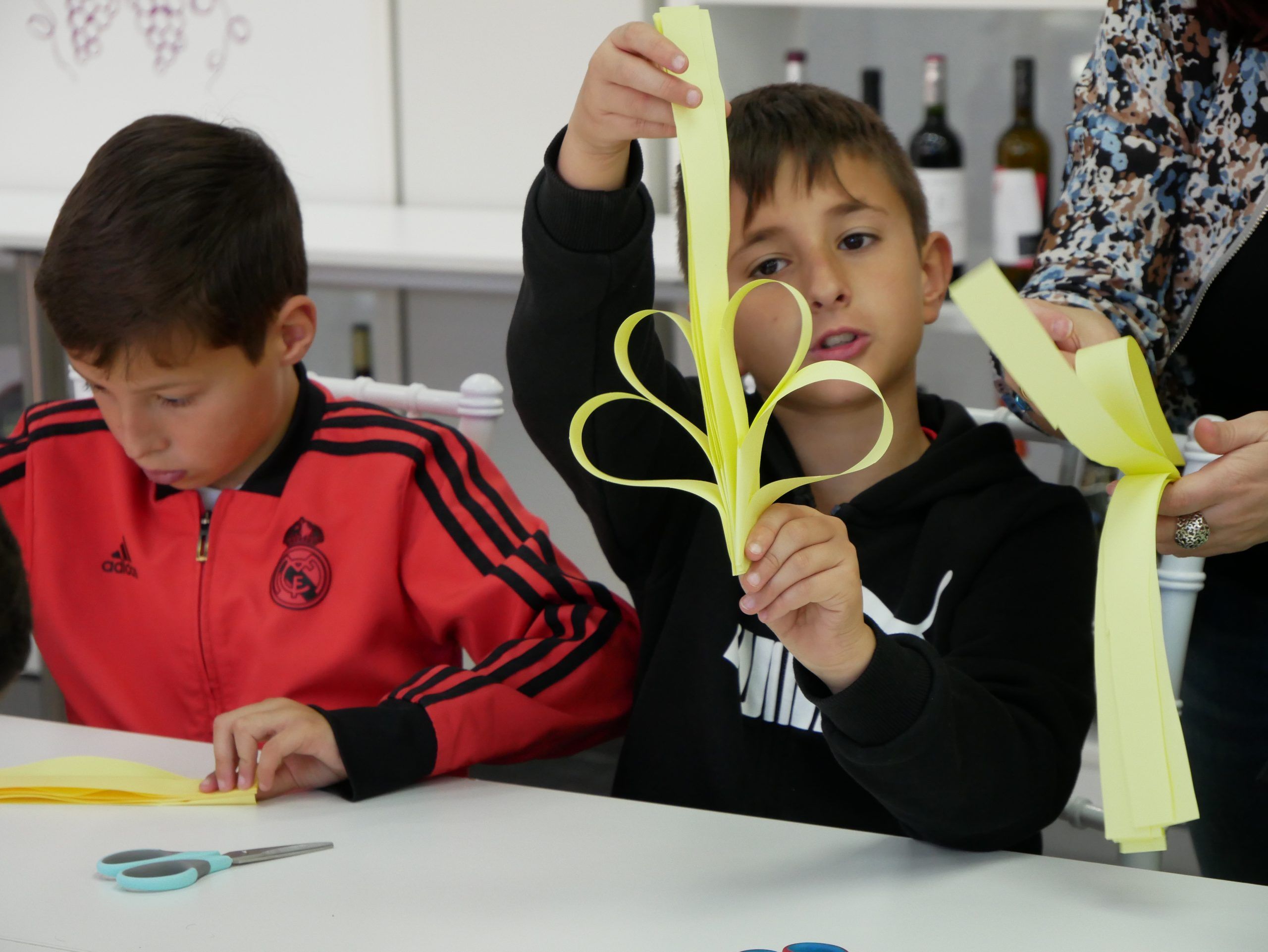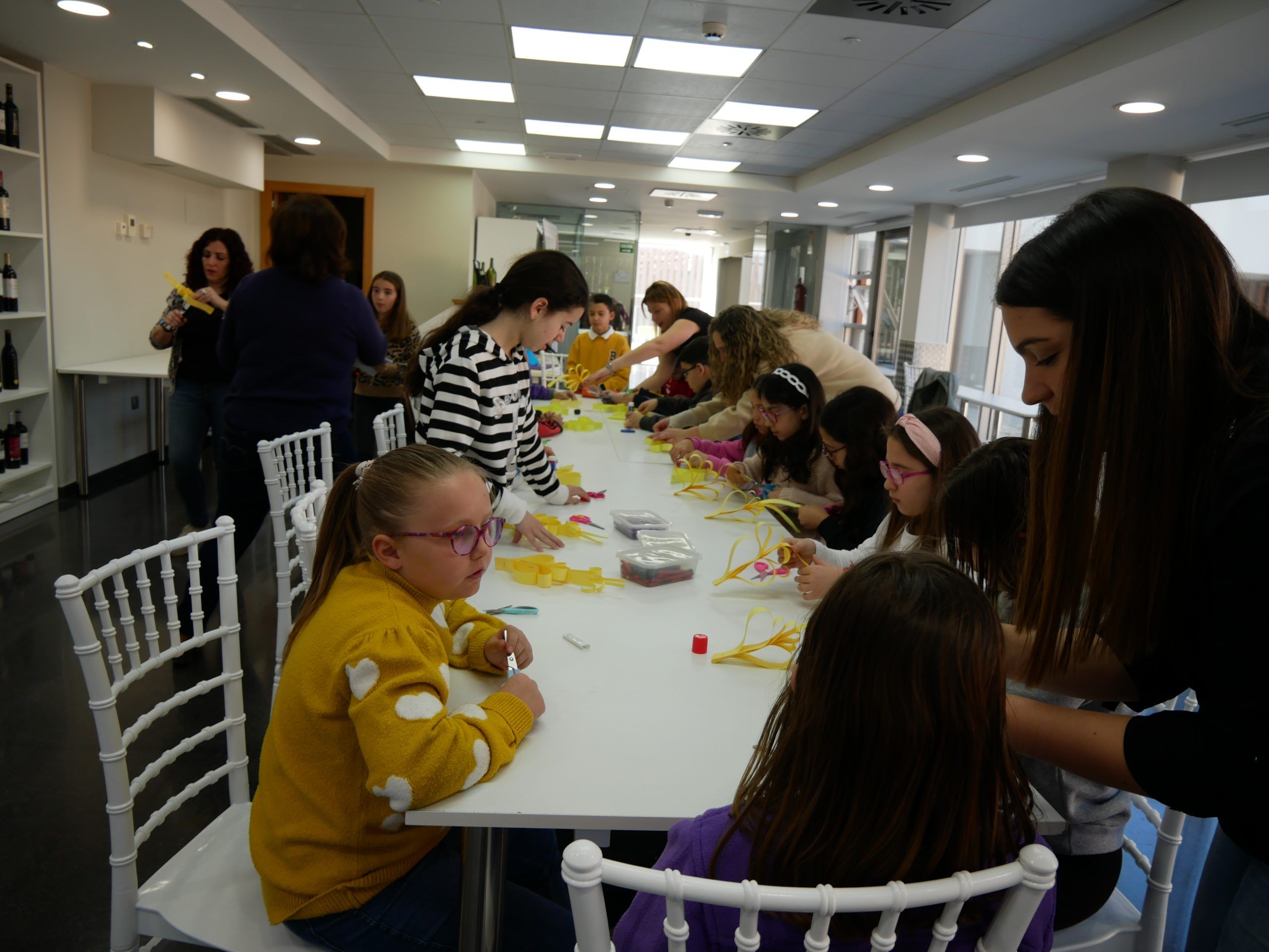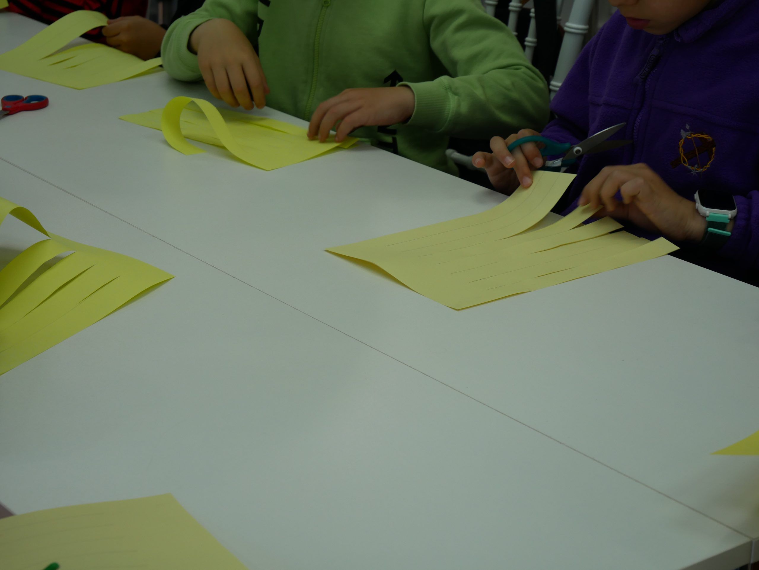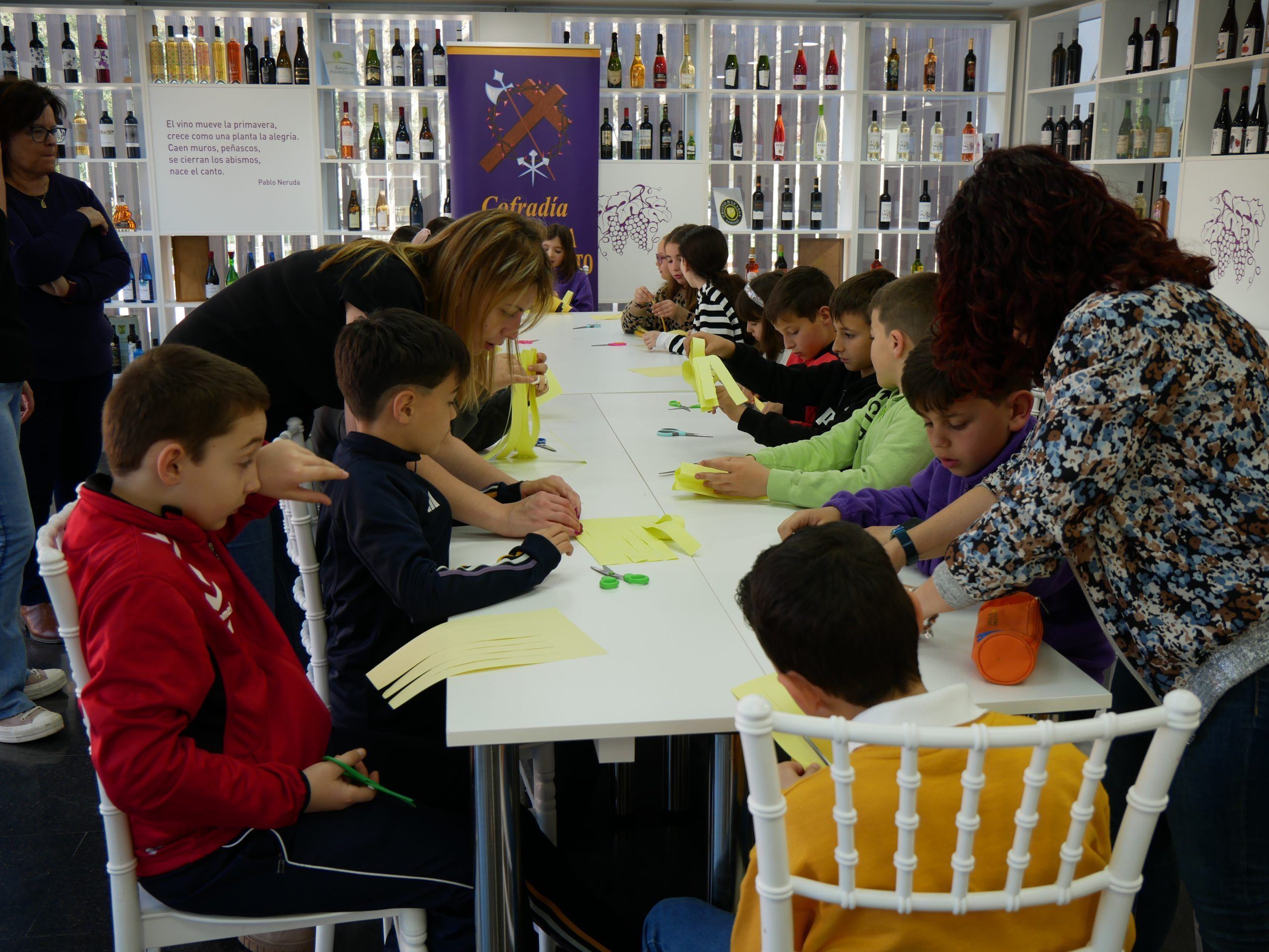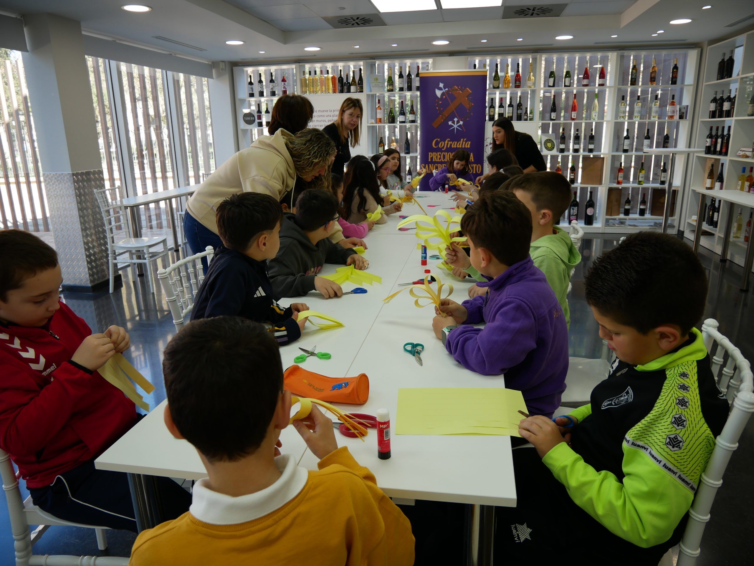 Durante la actividad, los niños elaboraron sus propias palmas con materiales sencillos y bajo la guía de los voluntarios de la cofradía, aprendiendo no solo a crear, sino también el significado simbólico de estos elementos que acompañan tradicionalmente al Domingo de Ramos.