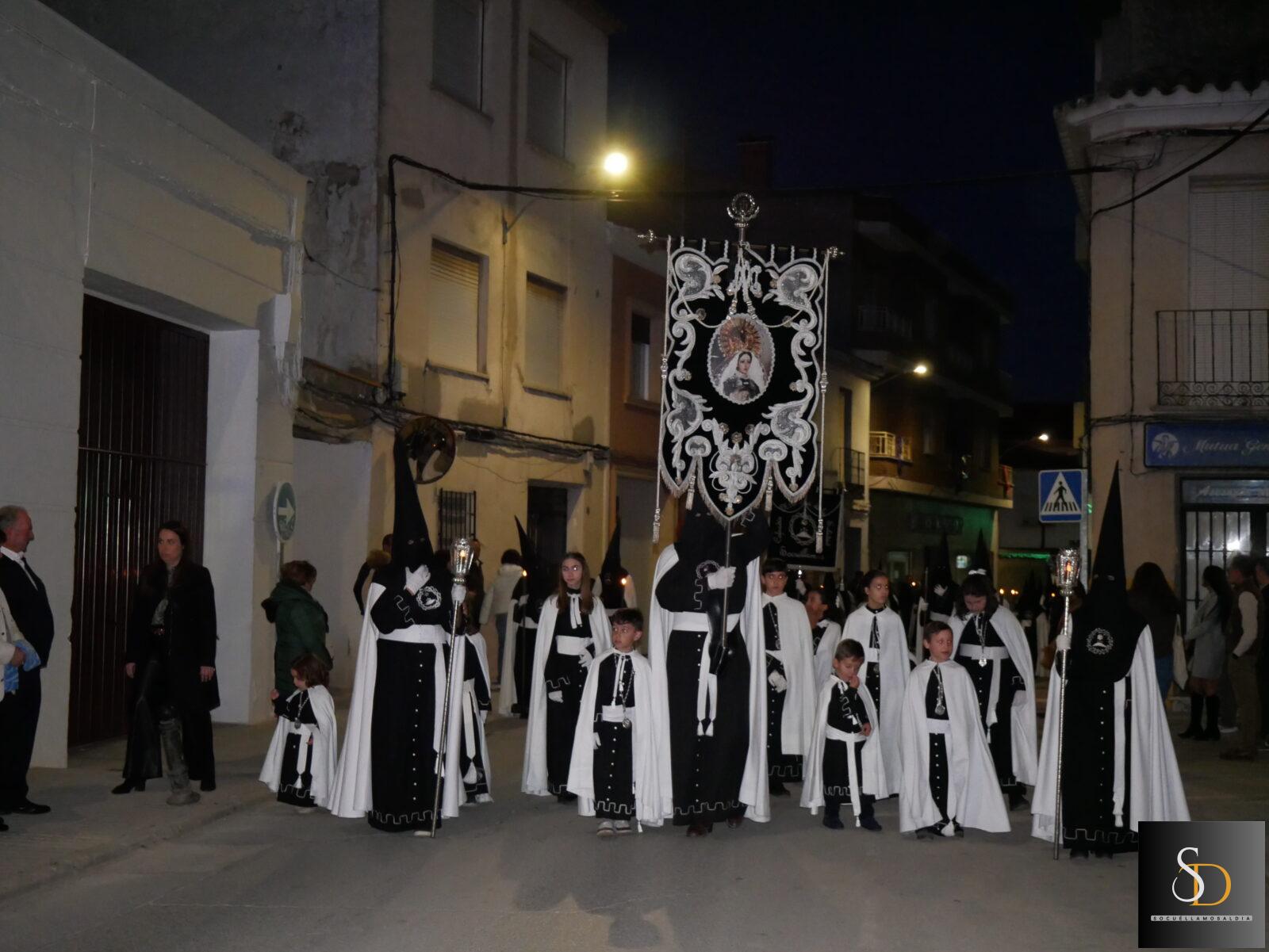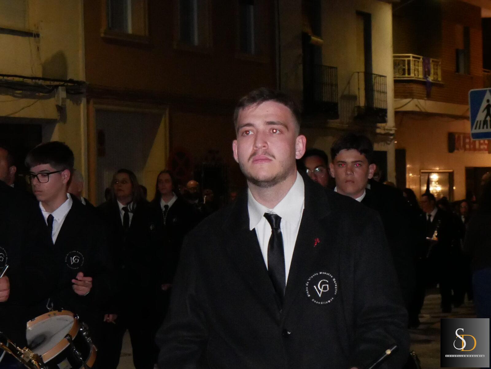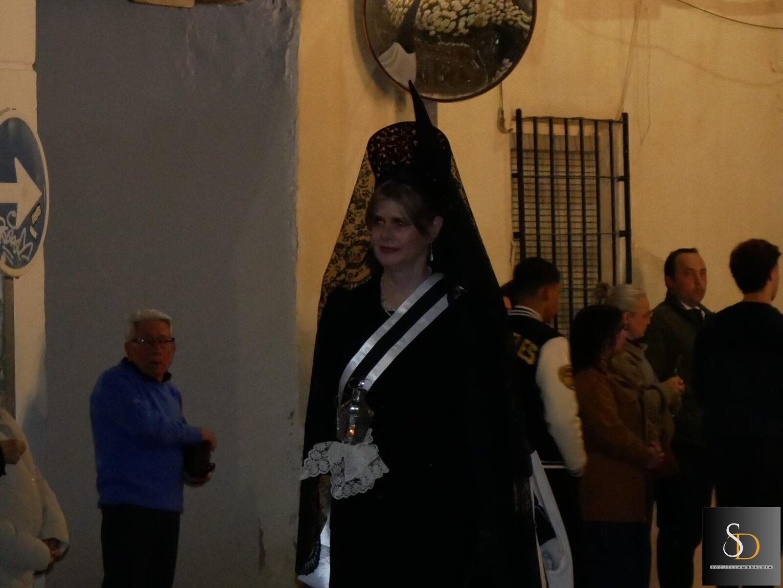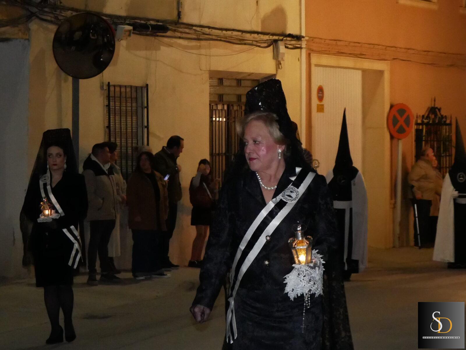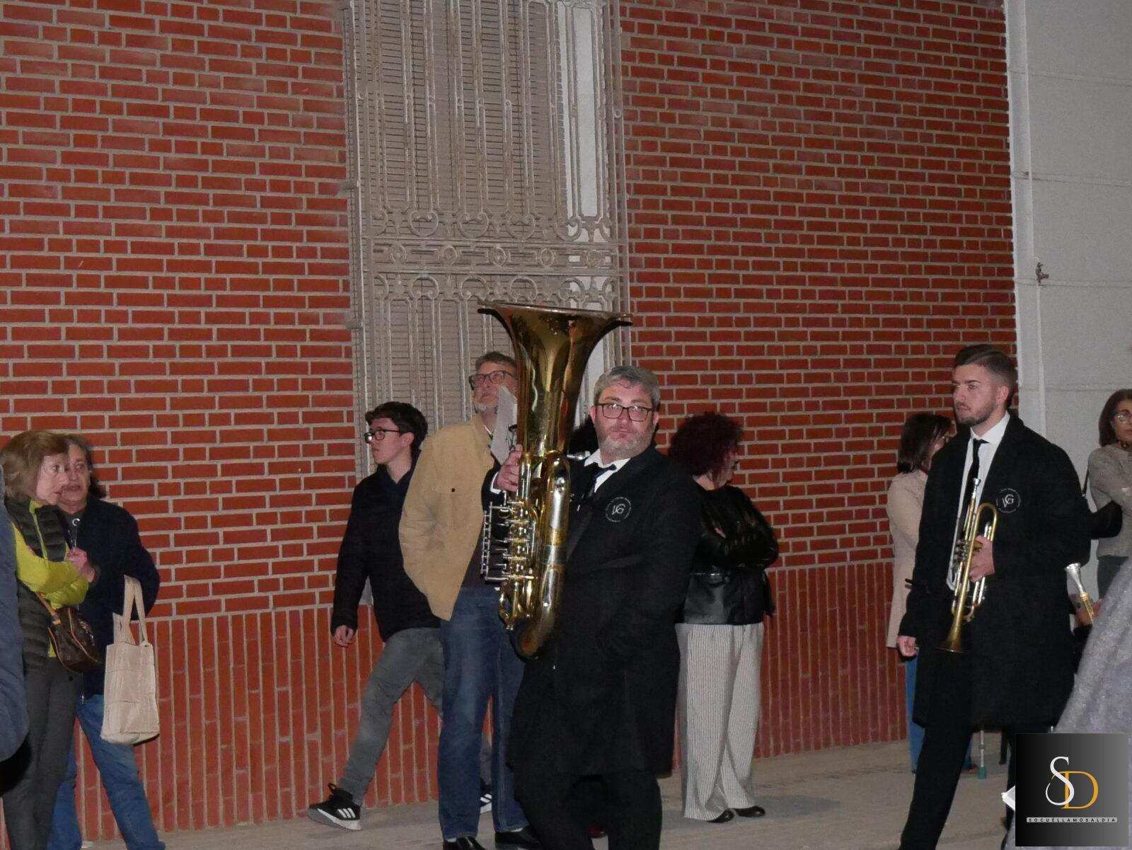 La procesión ha contado con una destacada participación de nazarenos, que han acompañado a la imagen de la Virgen en una noche marcada por el recogimiento y la sobriedad de un Sábado Santo. En el apartado musical, el desfile ha estado acompañado por la Asociación Cultural Tambores de la Piedad y el Grupo de Viento Maestro Moragues, que han contribuido a realzar el carácter solemne del recorrido.