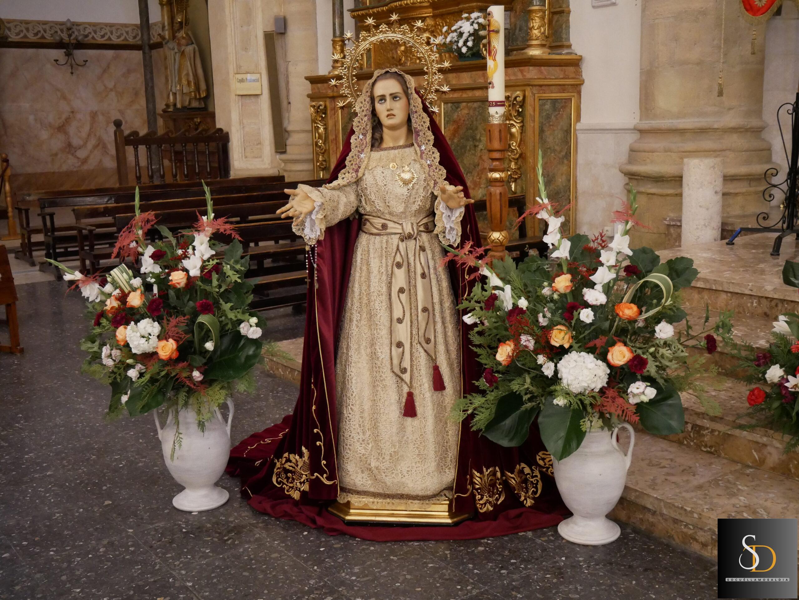 La Iglesia de Nuestra Señora de la Asunción acogió en la noche de este lunes la misa en honor a la Virgen de los Dolores, organizada por la Cofradía del Ecce Homo y Nuestra Señora de los Dolores con motivo de la celebración de su onomástica. Numerosos fieles participaron en la ceremonia, que constituye una de las citas de mayor devoción en la localidad.
