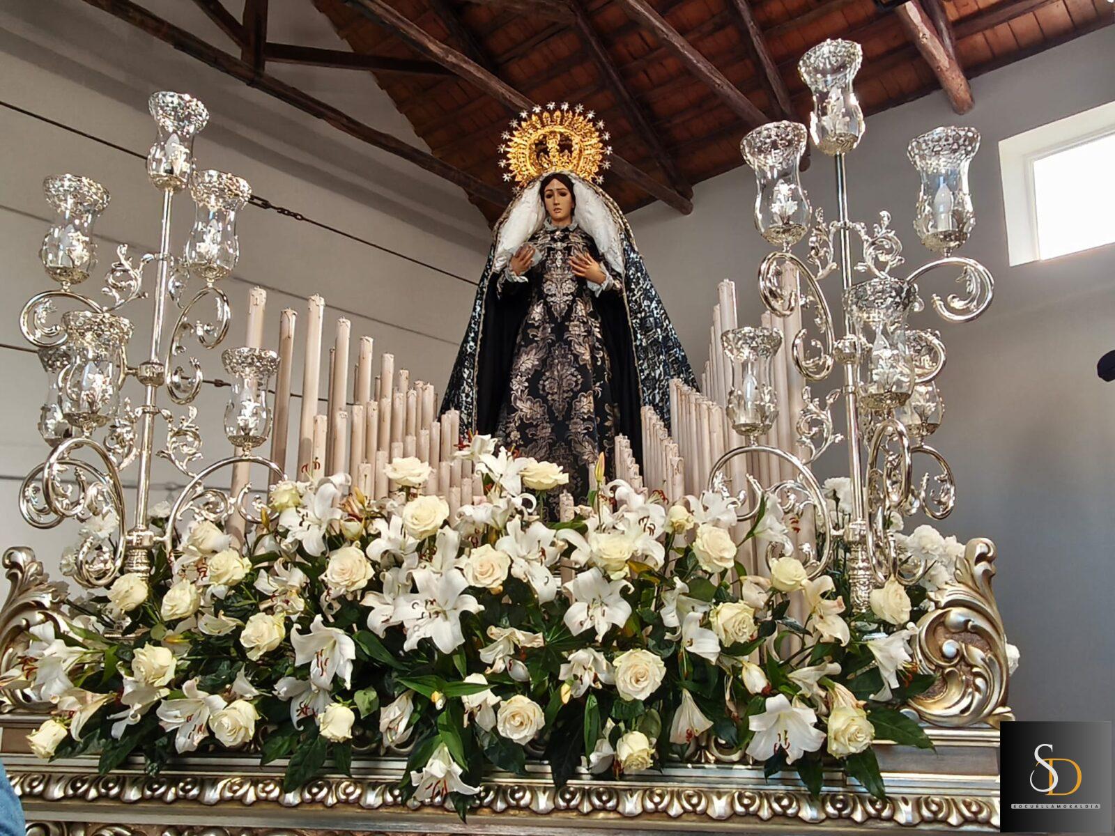 Entre las piezas figura la imagen de Nuestra Señora de la Piedad, talla en madera realizada por el escultor local Santiago Lara Molina, que reproduce la iconografía clásica inspirada en la obra de Miguel Ángel. La imagen, que puede venerarse habitualmente en la Parroquia de la Asunción, refleja con notable expresividad el dolor contenido de la Virgen sosteniendo a su hijo tras el descendimiento.