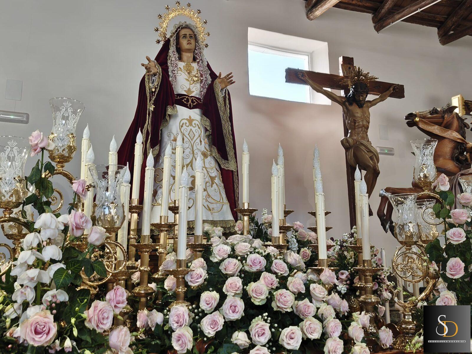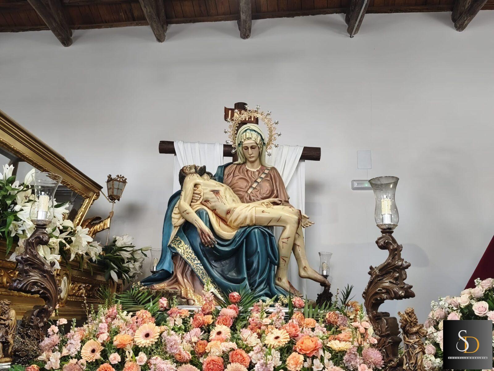 Entre las piezas figura la imagen de Nuestra Señora de la Piedad, talla en madera realizada por el escultor local Santiago Lara Molina, que reproduce la iconografía clásica inspirada en la obra de Miguel Ángel. La imagen, que puede venerarse habitualmente en la Parroquia de la Asunción, refleja con notable expresividad el dolor contenido de la Virgen sosteniendo a su hijo tras el descendimiento.