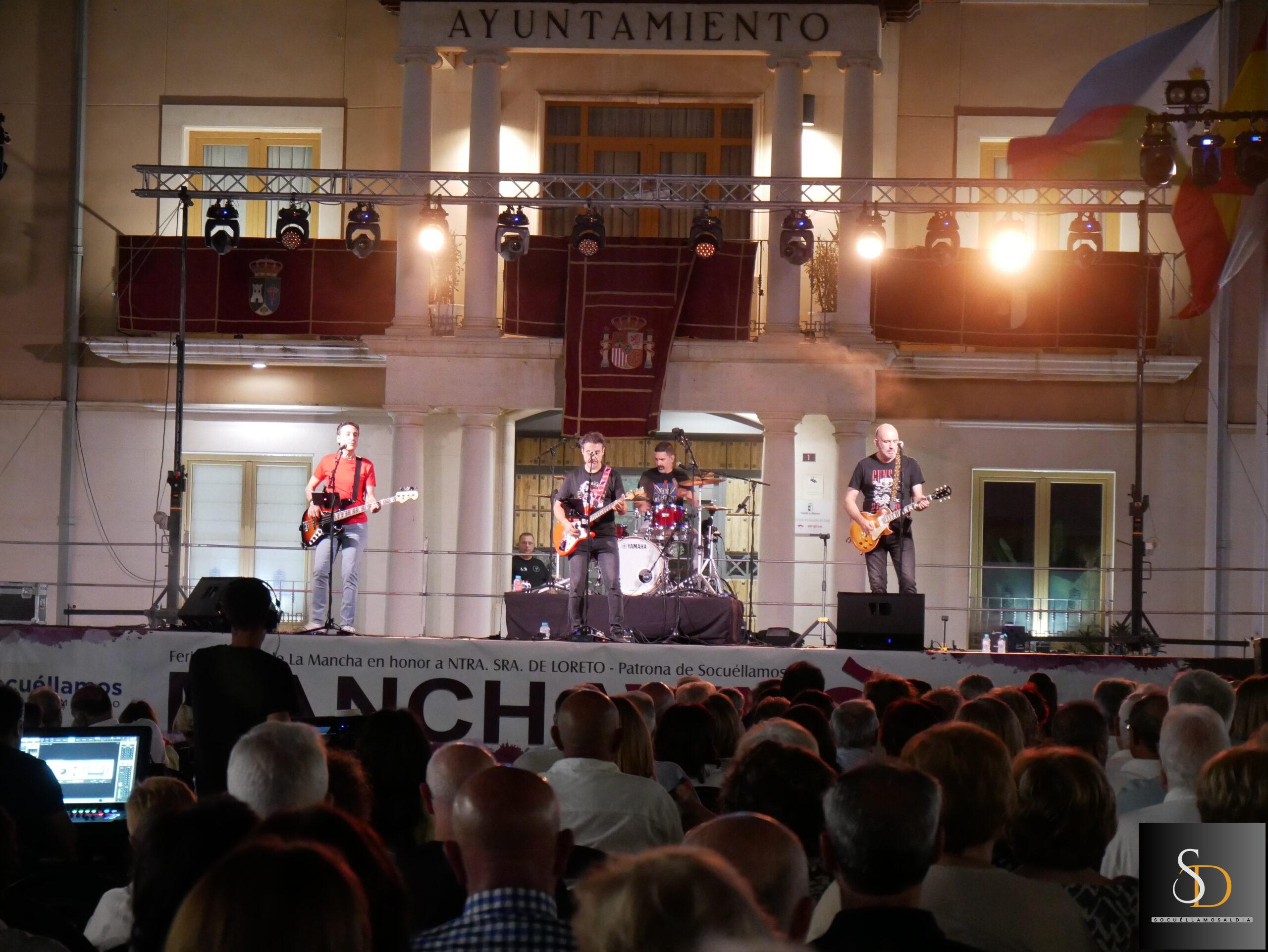 La programación de Manchavino 2025 continuó en la Plaza de la Constitución con el gran concierto tributo a Hombres G y El Canto del Loco, a cargo del grupo DeSingles.