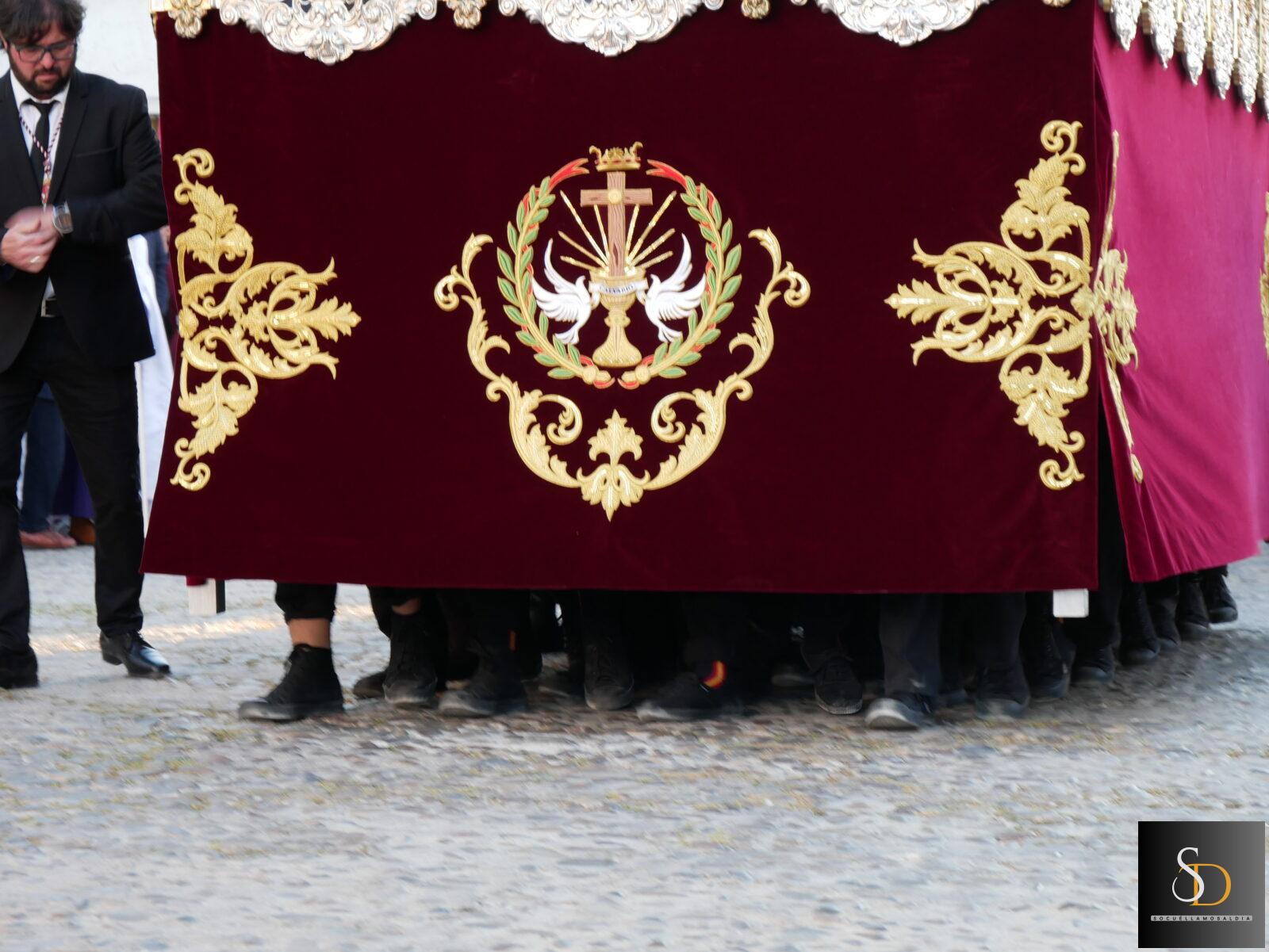 La excepción ha sido el paso del Santo Sepulcro, portado por la Cofradía de la Preciosísima Sangre de Cristo, que ha mantenido su salida habitual desde la iglesia, concretamente por la puerta sur del templo.