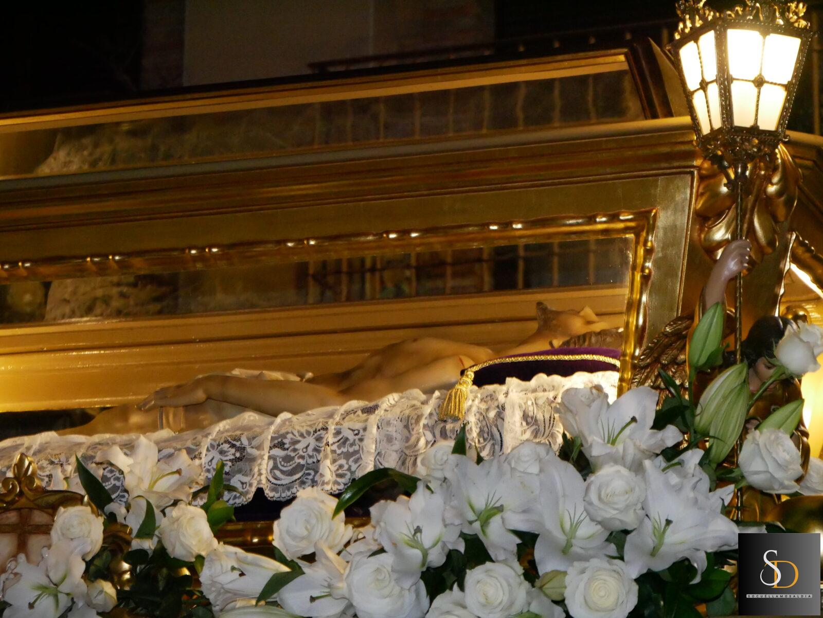 La excepción ha sido el paso del Santo Sepulcro, portado por la Cofradía de la Preciosísima Sangre de Cristo, que ha mantenido su salida habitual desde la iglesia, concretamente por la puerta sur del templo.