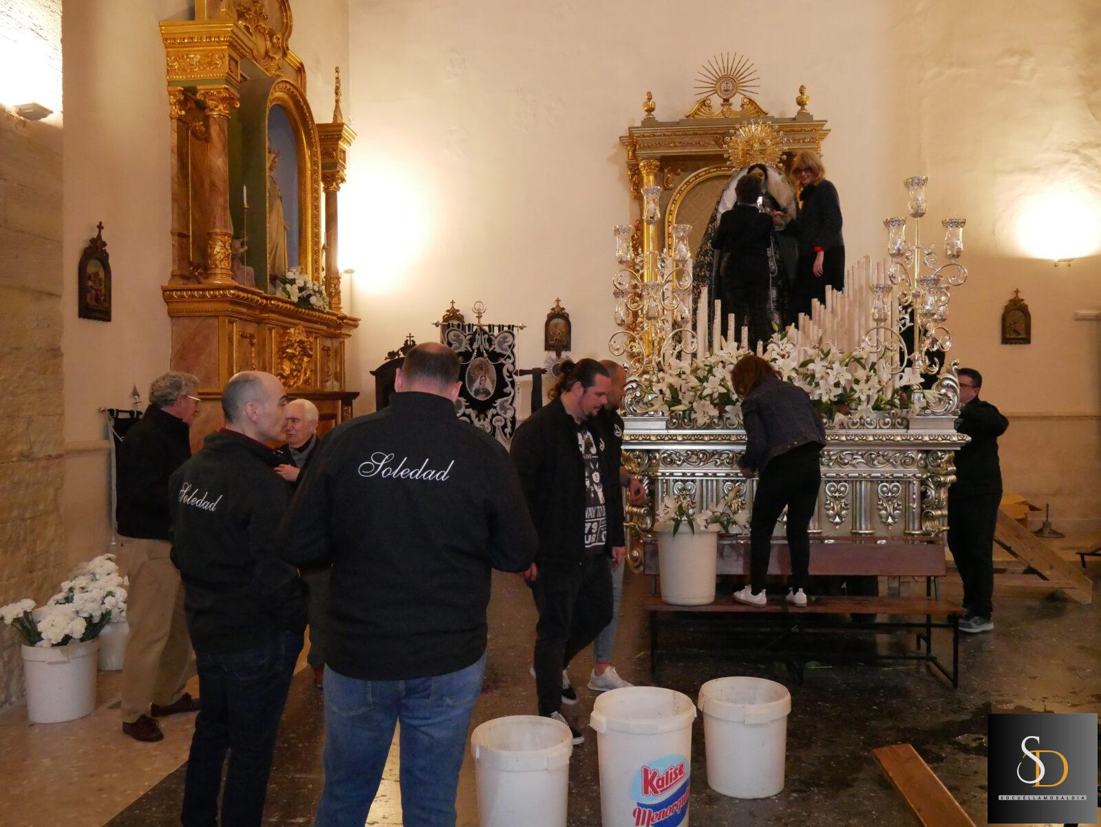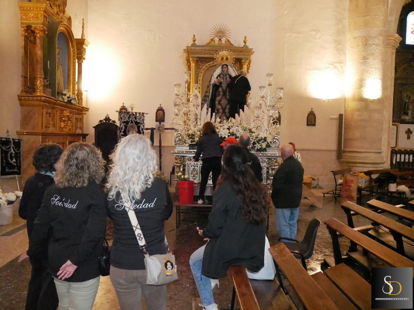 Tras una intensa jornada de preparativos, la Virgen de la Soledad quedará lista para recorrer esta noche las calles de Socuéllamos. Una procesión marcada por el silencio, la emoción y la devoción.