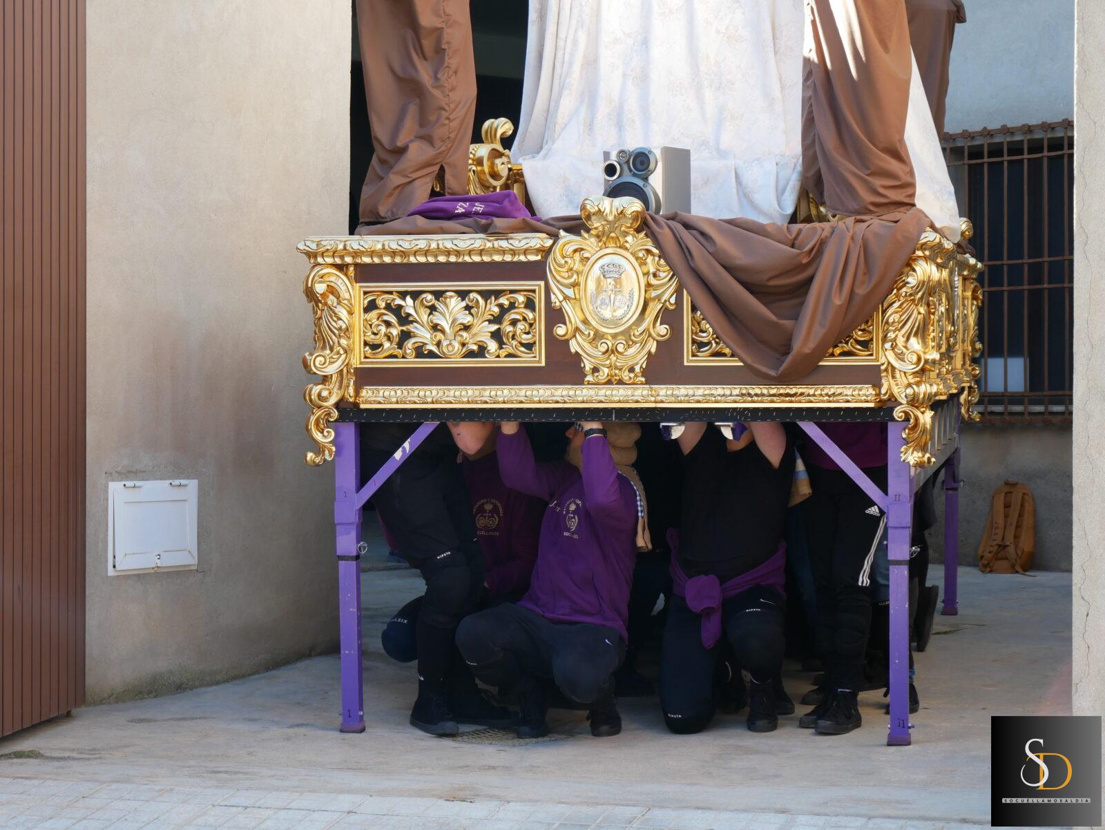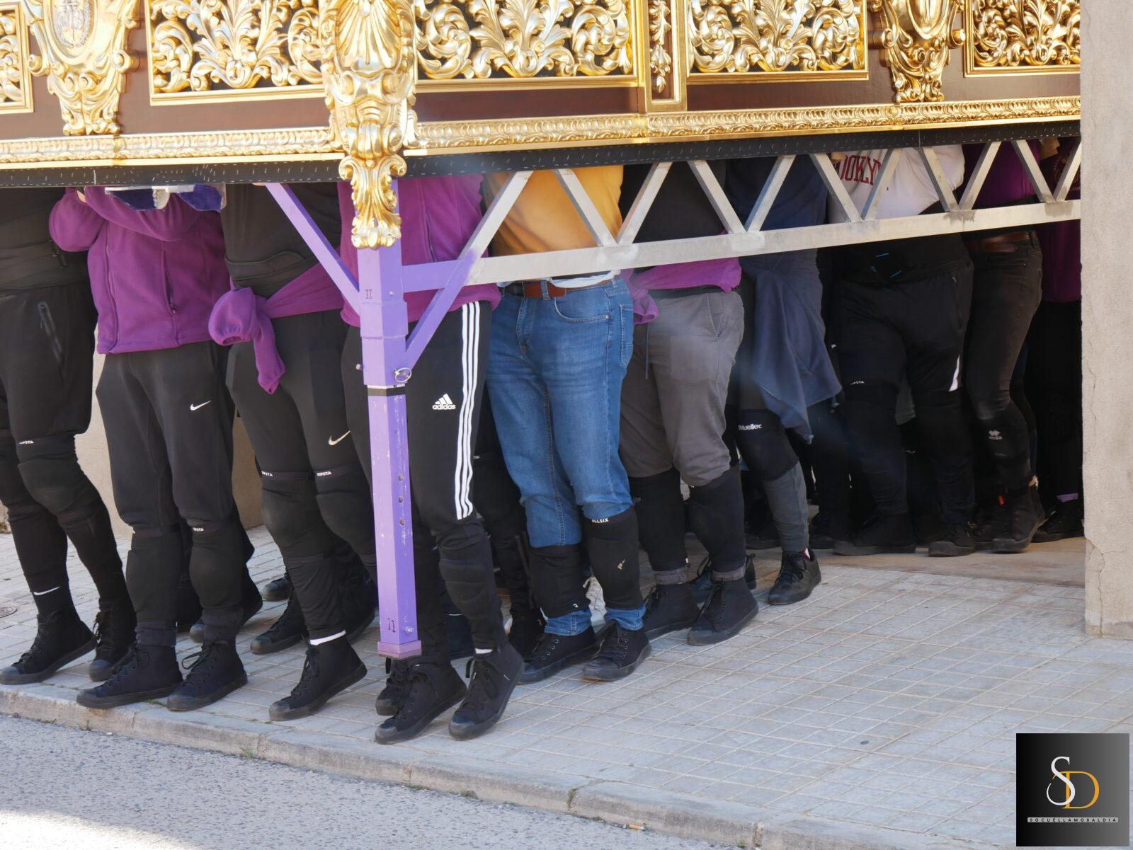Durante el ensayo, los costaleros trabajaron aspectos fundamentales como el paso, la coordinación y el ritmo bajo el trono, elementos clave para garantizar el buen desarrollo de las estaciones de penitencia. Estas jornadas de preparación permiten además reforzar el trabajo en equipo y la organización de la cuadrilla.