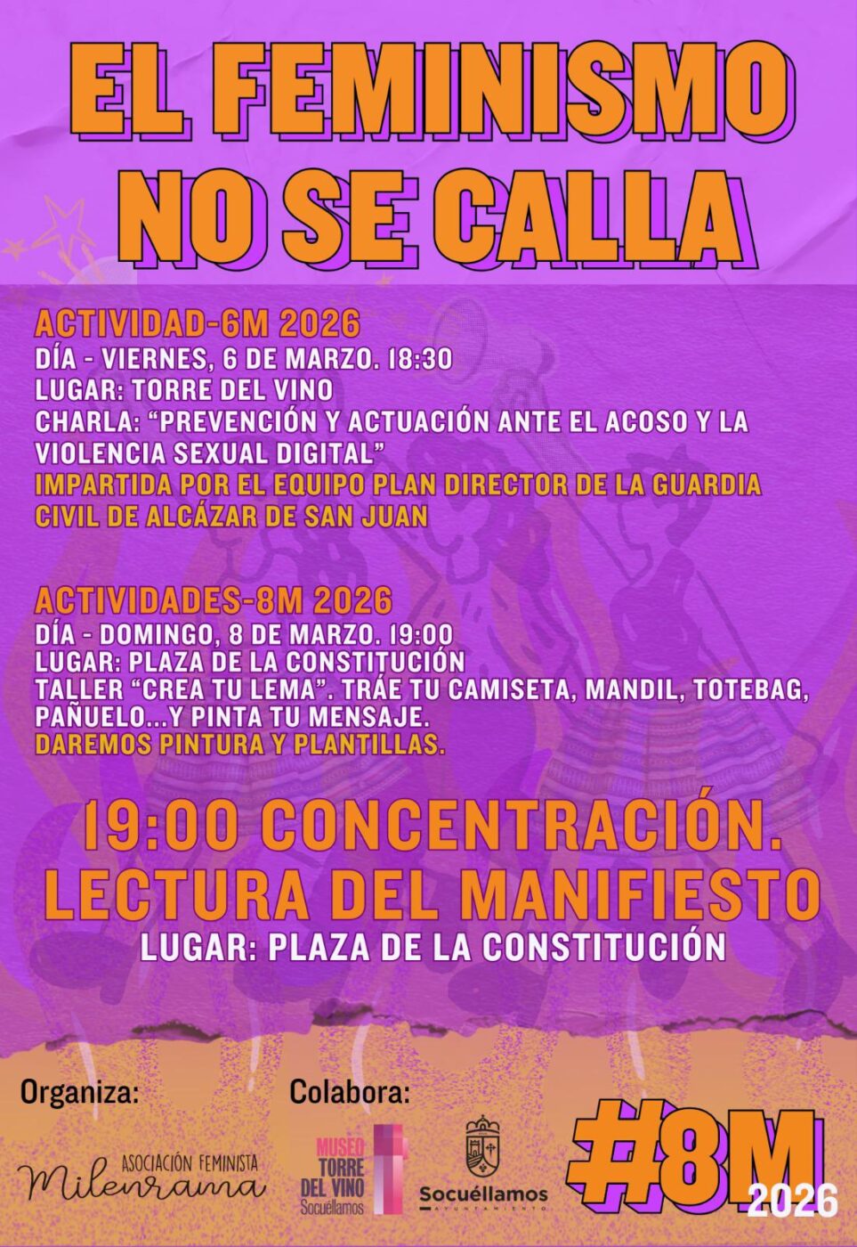 Los actos cuentan con la colaboración del Ayuntamiento de Socuéllamos y del Museo Torre del Vino, y se enmarcan dentro de las iniciativas promovidas por el movimiento feminista en Castilla-La Mancha.