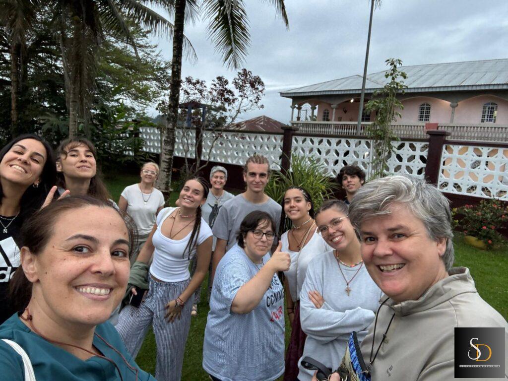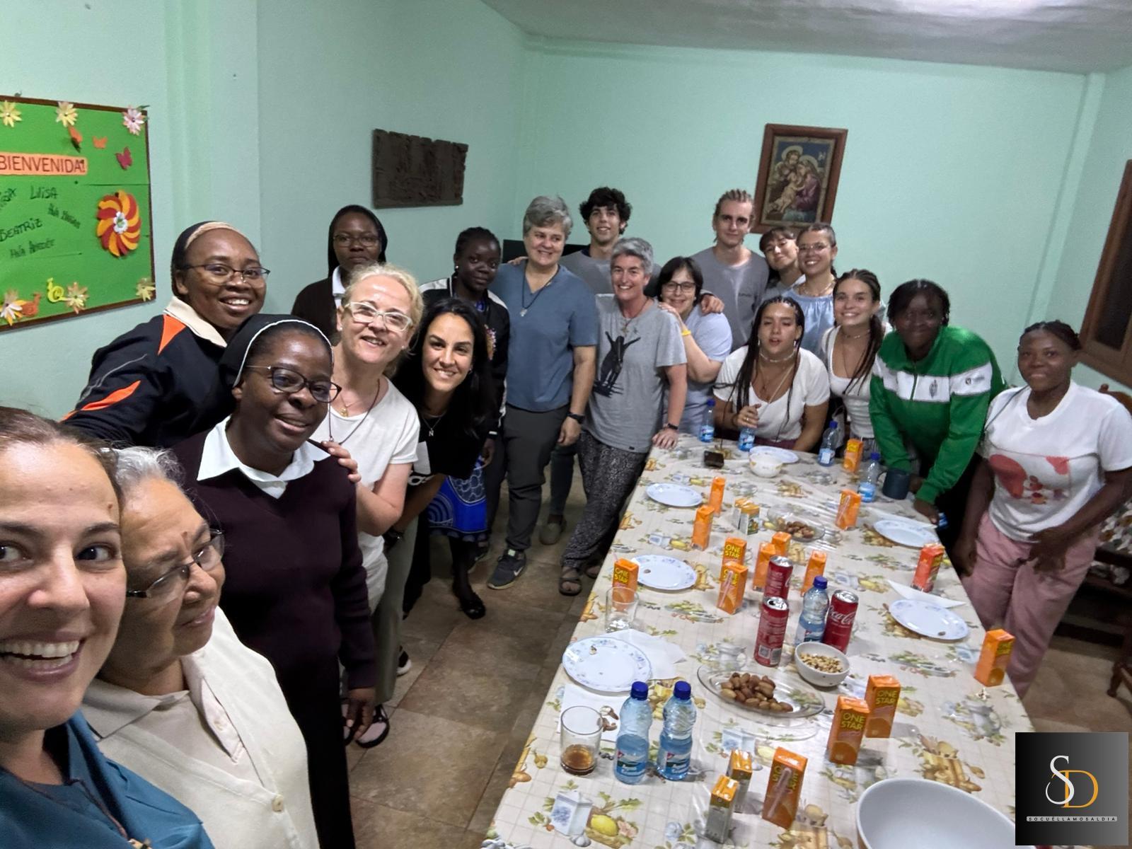 Por la tarde, el grupo de voluntarios y María Pilar Delgado visitaron al padre Tomás, sacerdote de la parroquia, quien había preparado una merienda con esmero para recibirlos. Sin embargo, al llegar los invitados, descubrieron que todo había sido robado, un incidente que refleja también las dificultades del entorno. Posteriormente, se desplazaron a la casa de las Hermanas Capuchinas, donde conocieron sus instalaciones —centro de salud, colegio y convento—, y compartieron un refrigerio en el que no faltaron los cantos africanos. La jota manchega, interpretada por las voluntarias, también resonó en tierras guineanas.