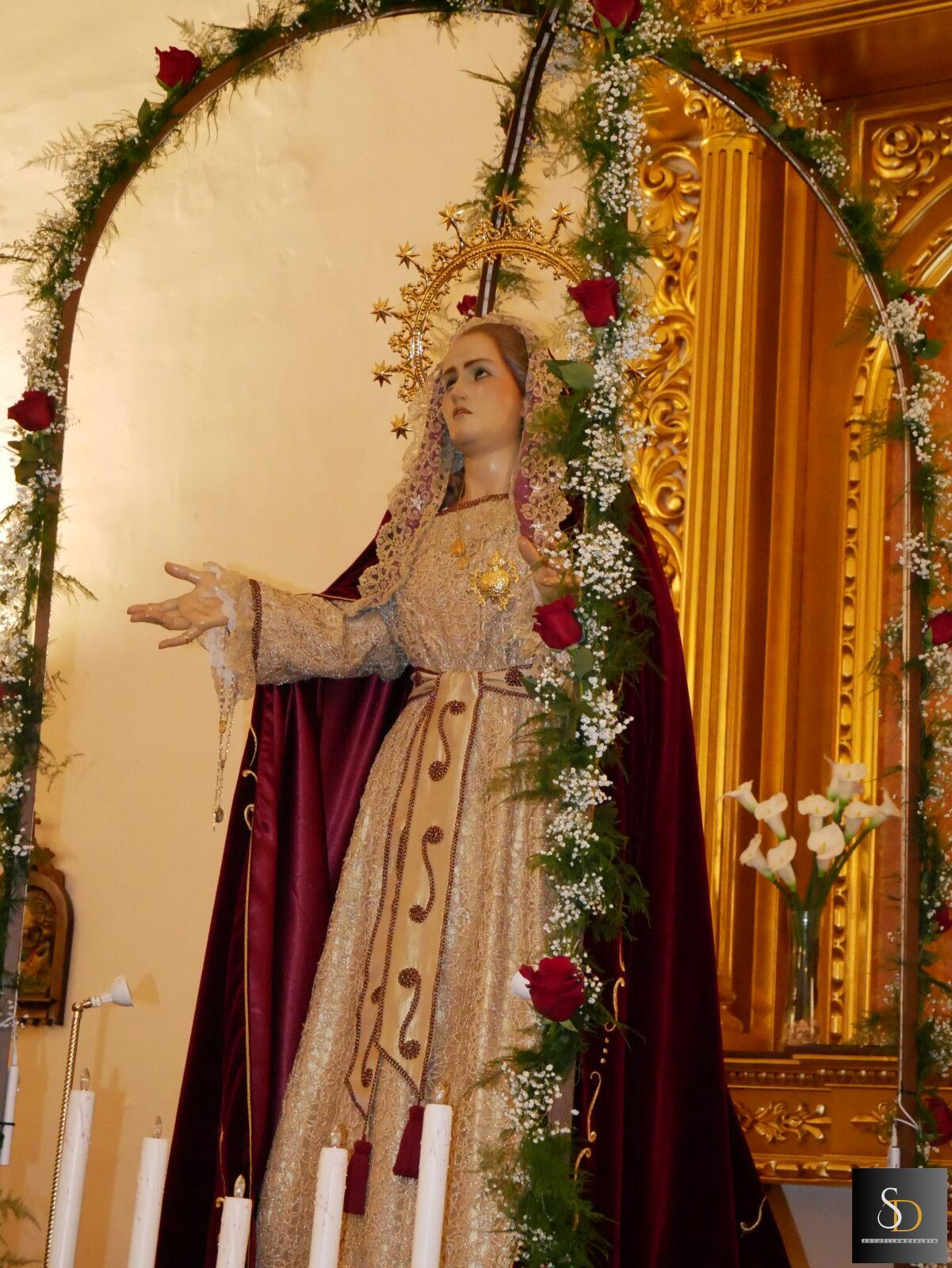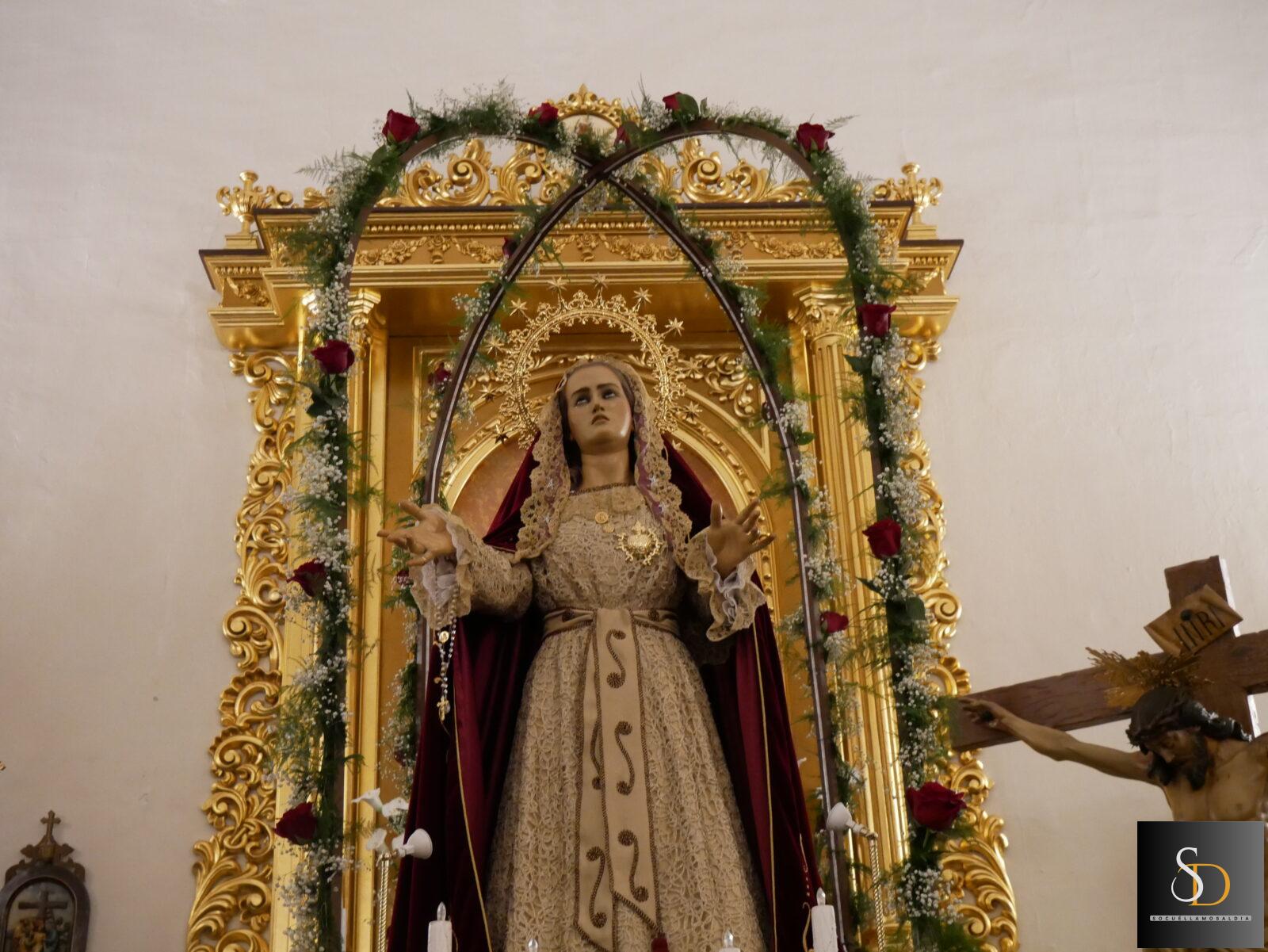 La iglesia parroquial de Nuestra Señora de la Asunción ha acogido en la tarde-noche de este Viernes de Dolores uno de los actos del inicio de la Semana Santa, con la tradicional ofrenda floral a la Virgen de los Dolores organizada por la Cofradía del Ecce Homo y Nuestra Señora de los Dolores.