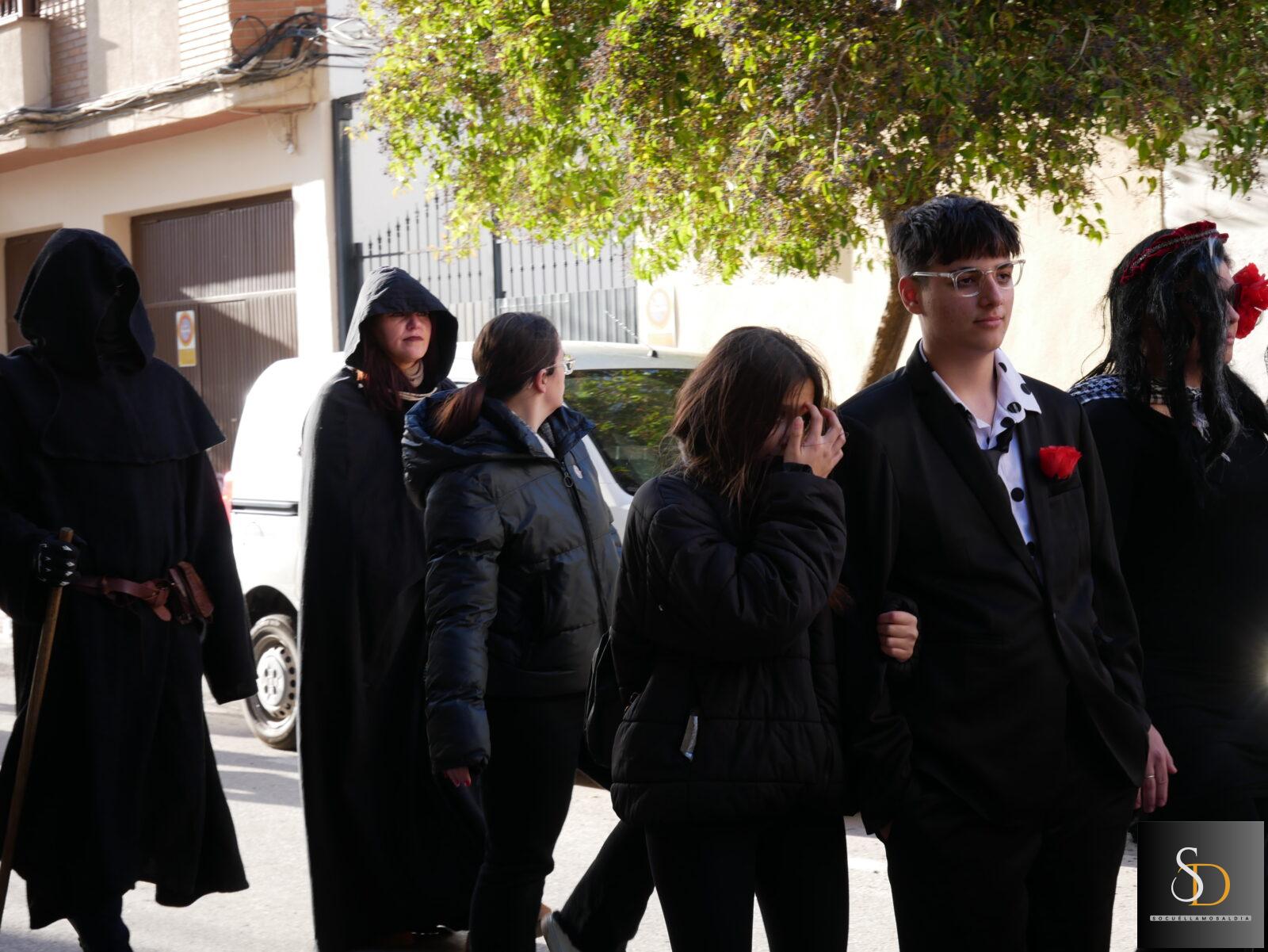 El desfile estuvo amenizado por la charanga “Pasa la Birra”, que acompañó musicalmente esta peculiar despedida simbólica del carnaval tradicional, en la que viudas, parientes y acompañantes participaron guardando el habitual luto que caracteriza este acto.