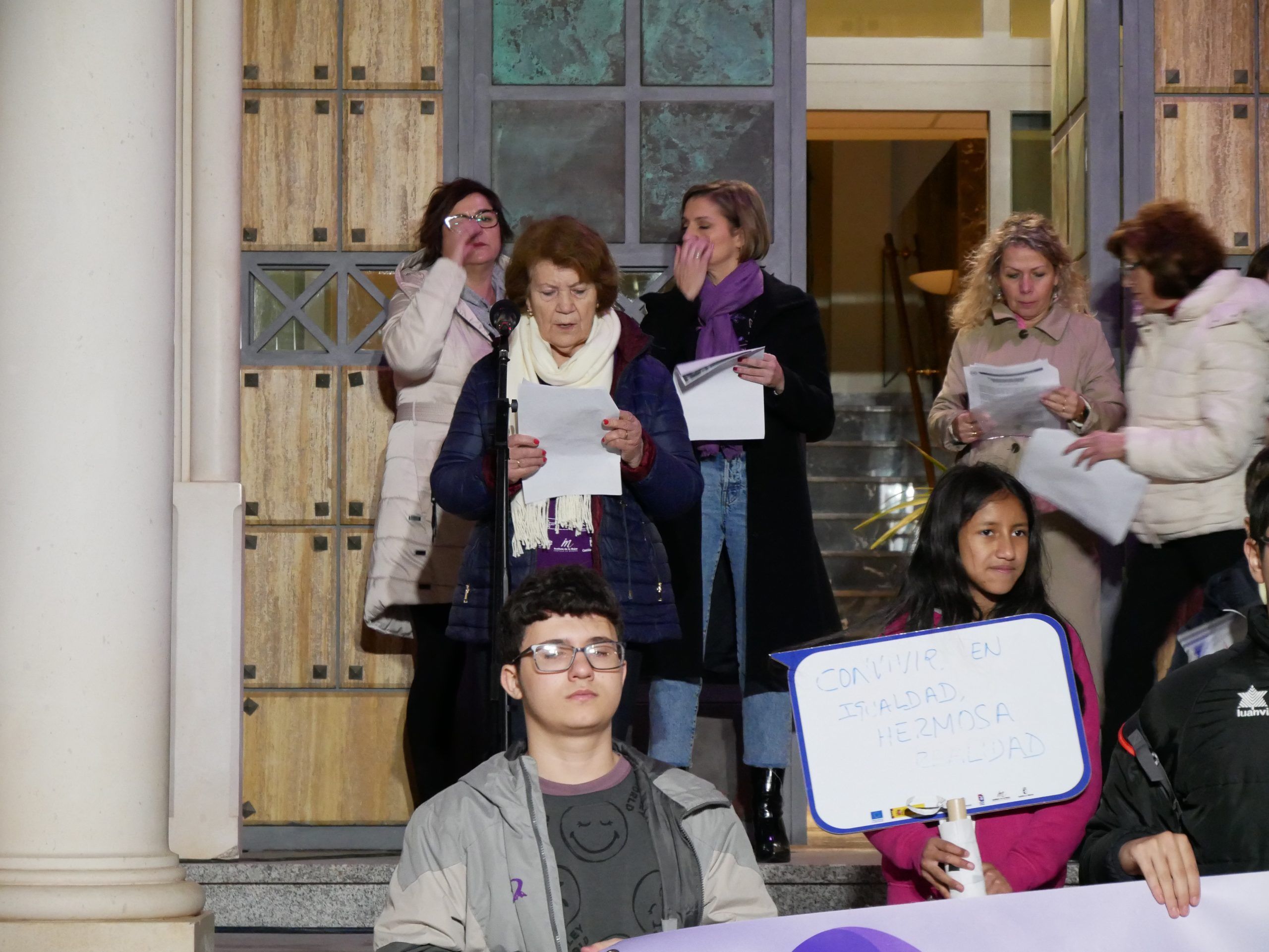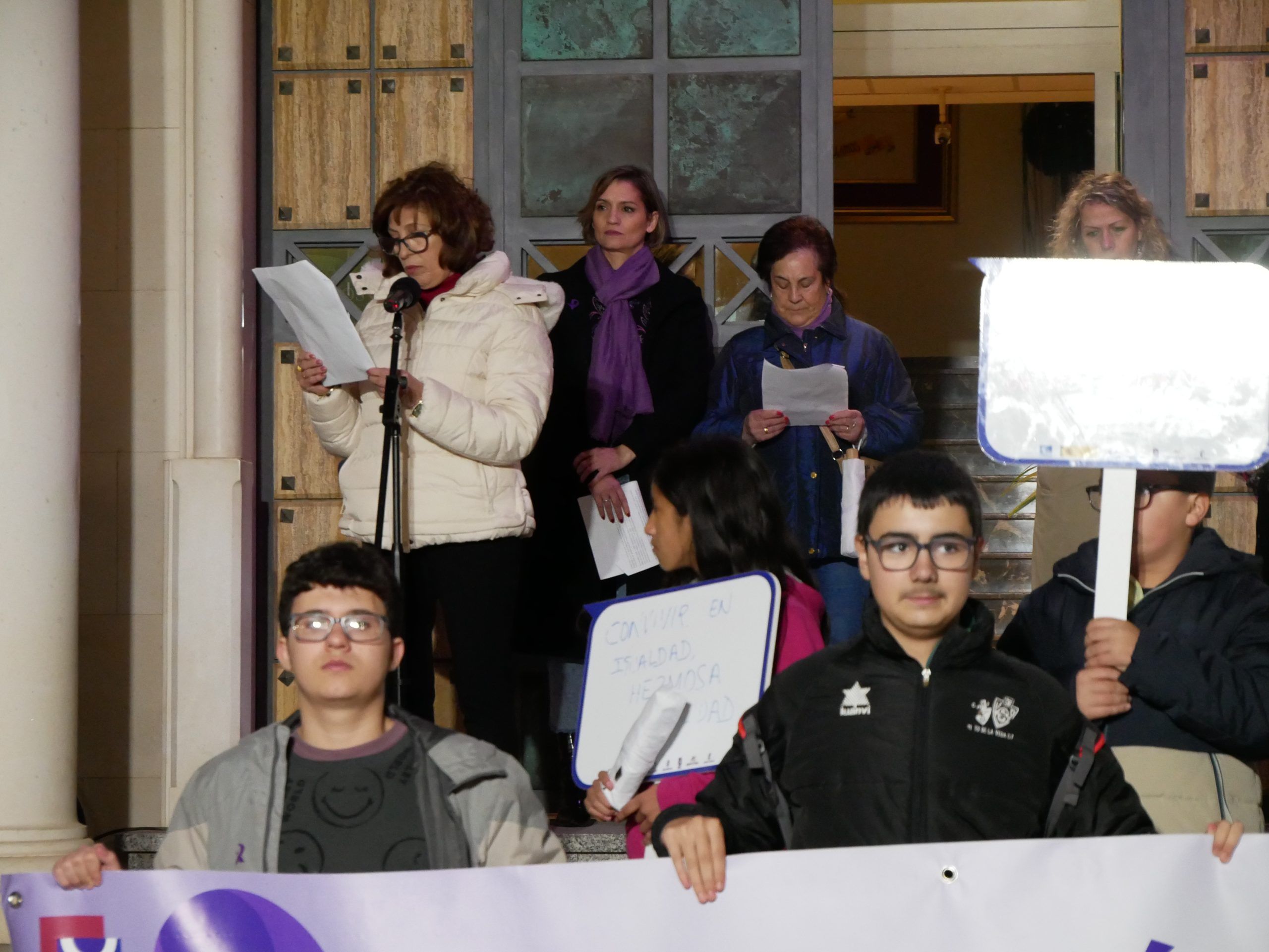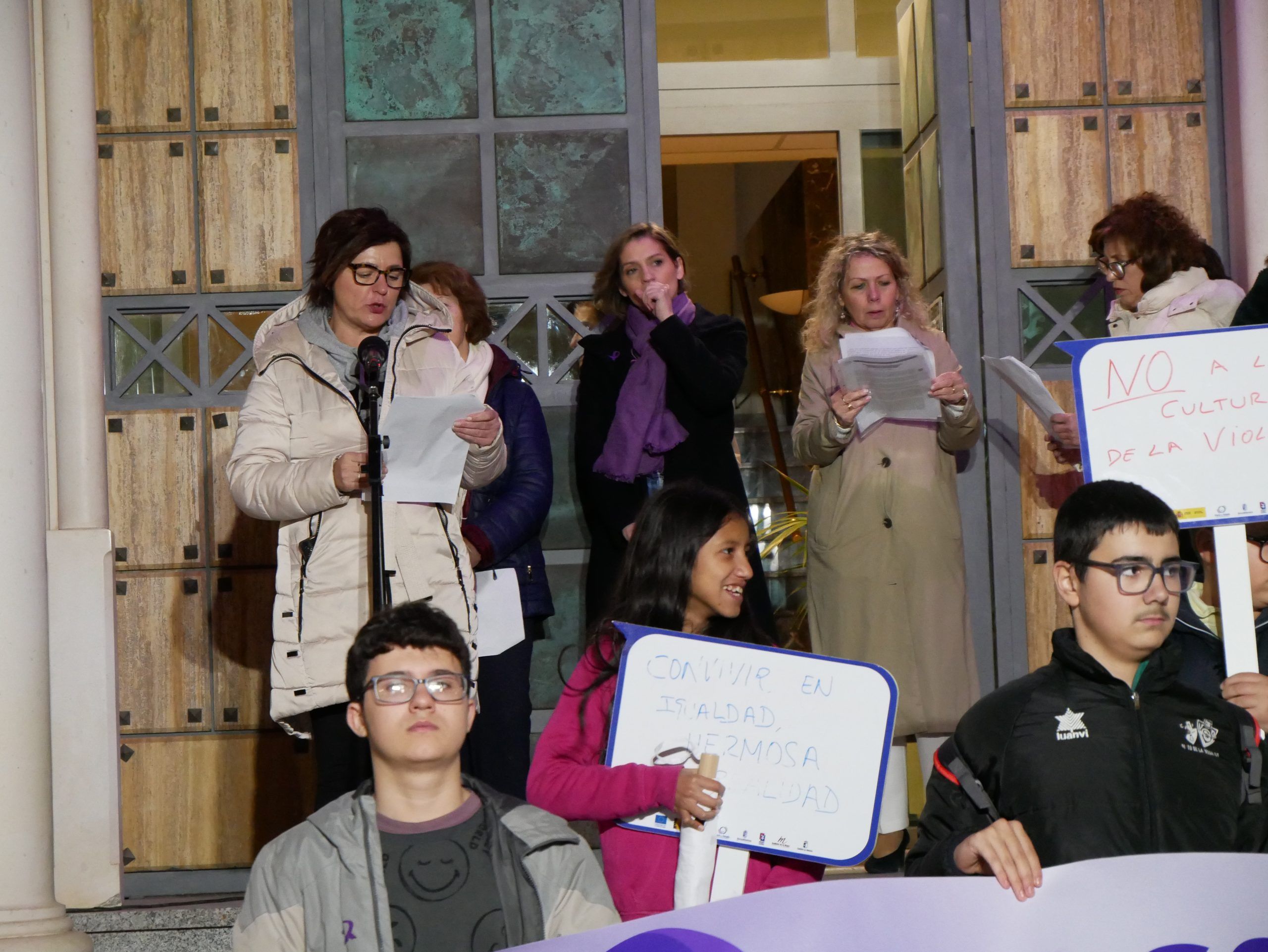 Posteriormente, los asistentes se trasladaron a la Plaza del Ayuntamiento en una marcha donde Autoridades locales, asociaciones de mujeres y Cruz Roja tomaron la palabra para leer diferentes manifiestos, destacando el compromiso en la lucha contra la violencia de género. El acto concluyó con un minuto de silencio en homenaje a las víctimas.