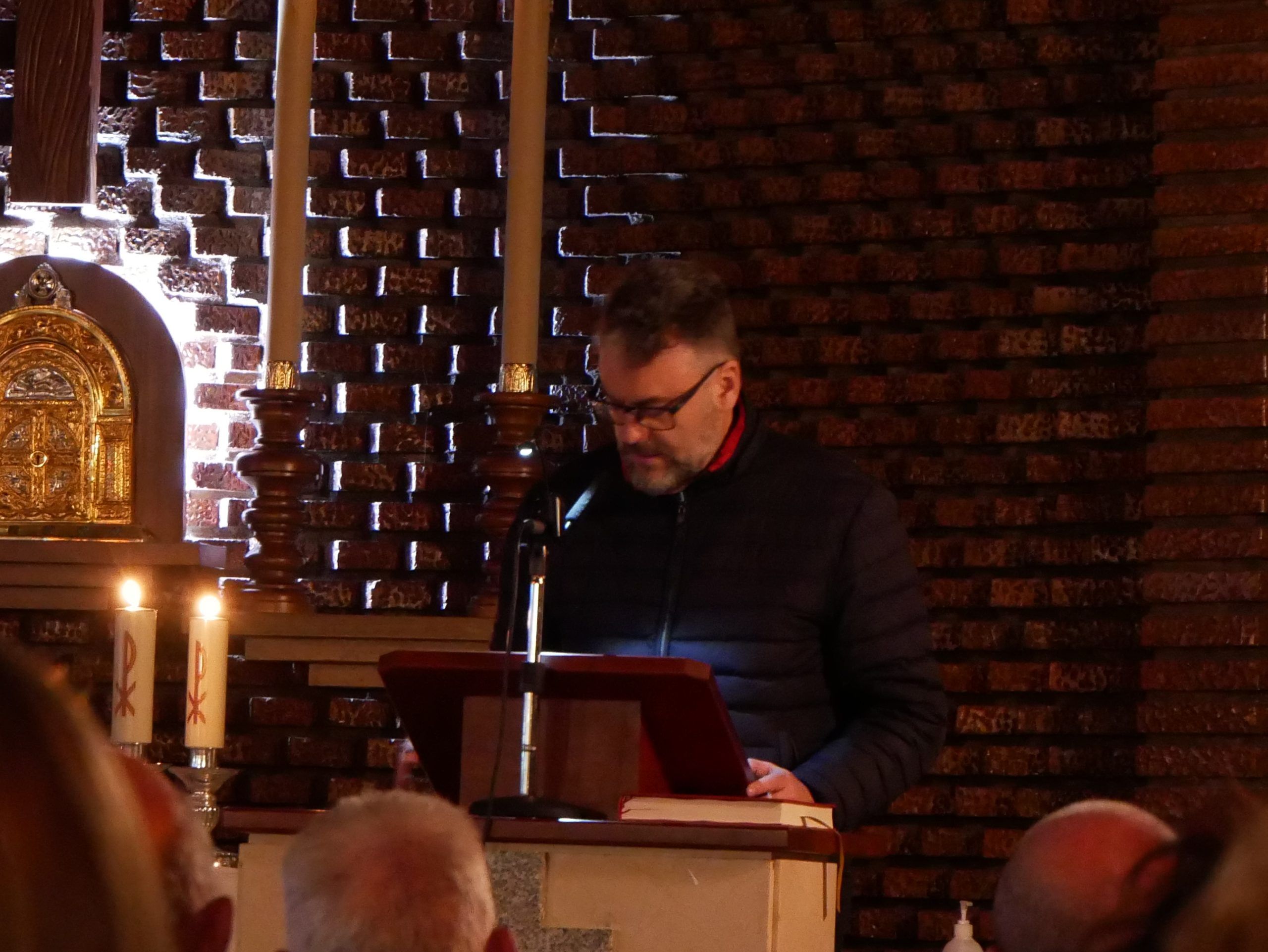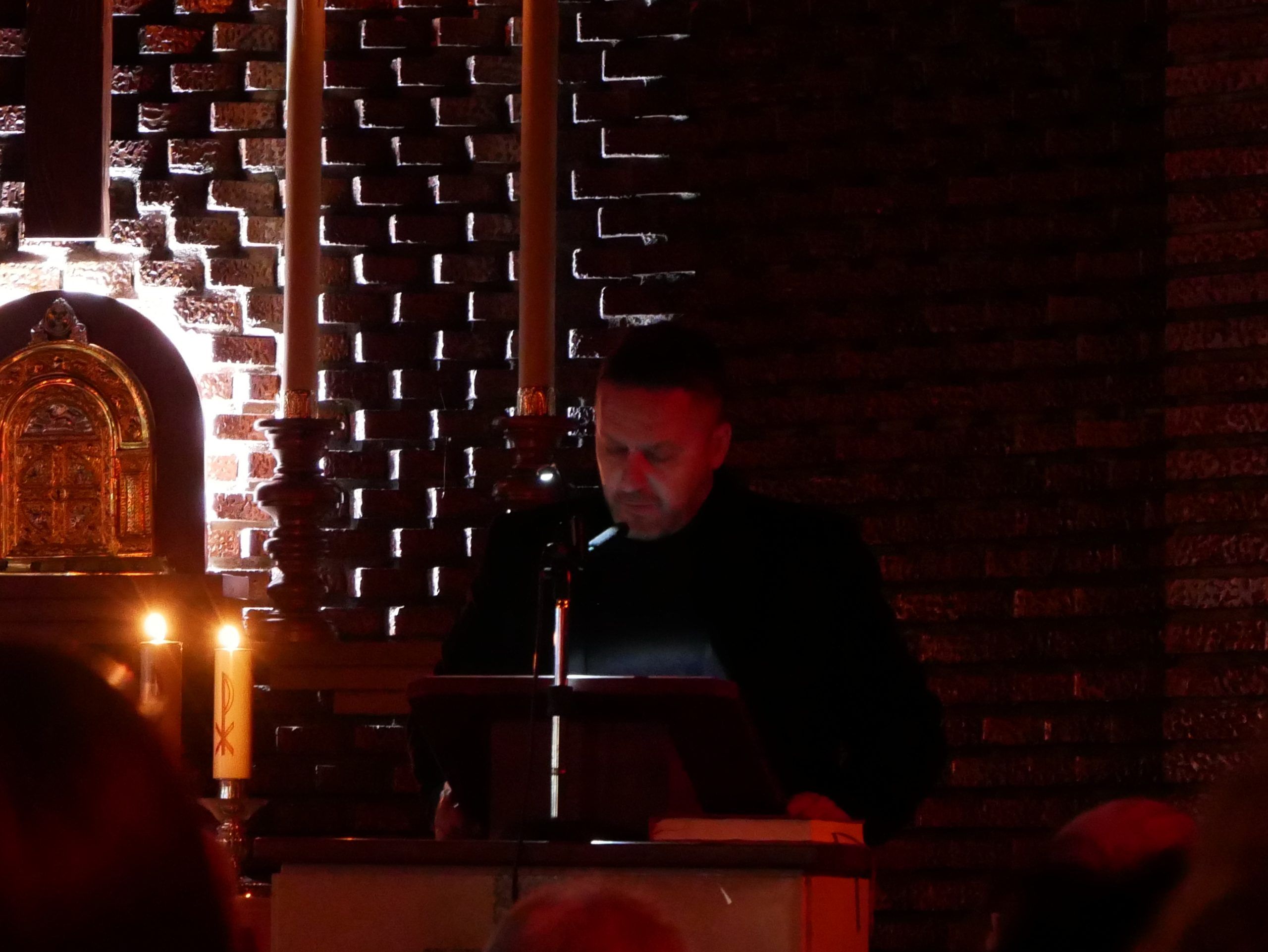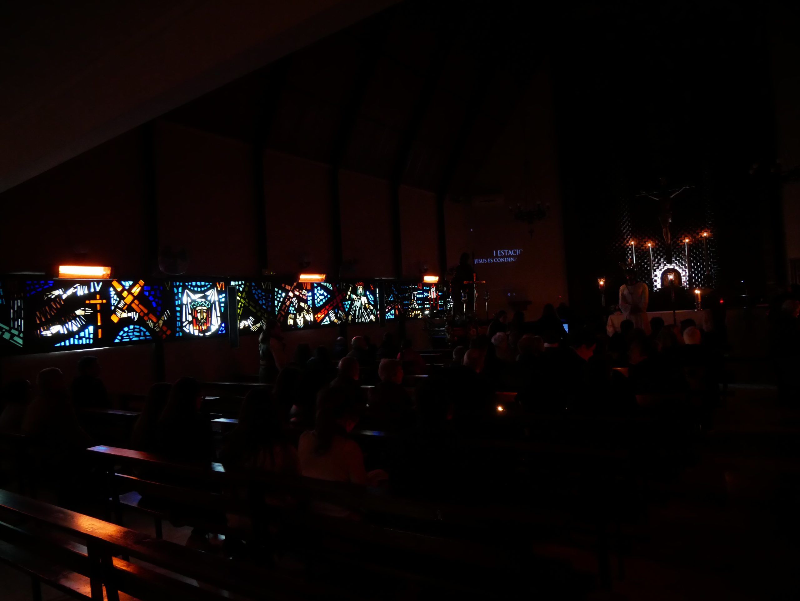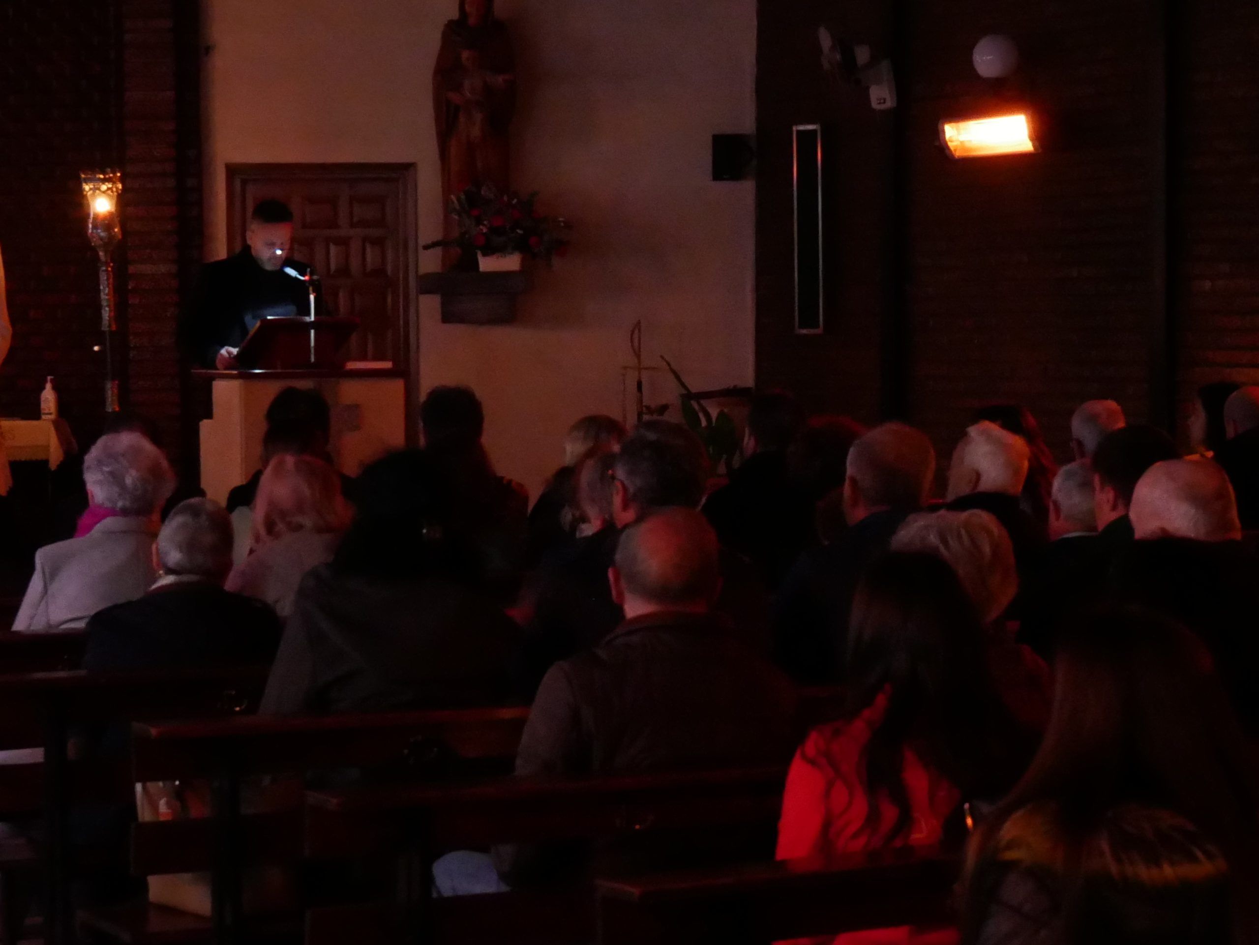 El templo, en penumbra, creó un ambiente de recogimiento y reflexión, invitando a los asistentes a vivir intensamente la experiencia espiritual.